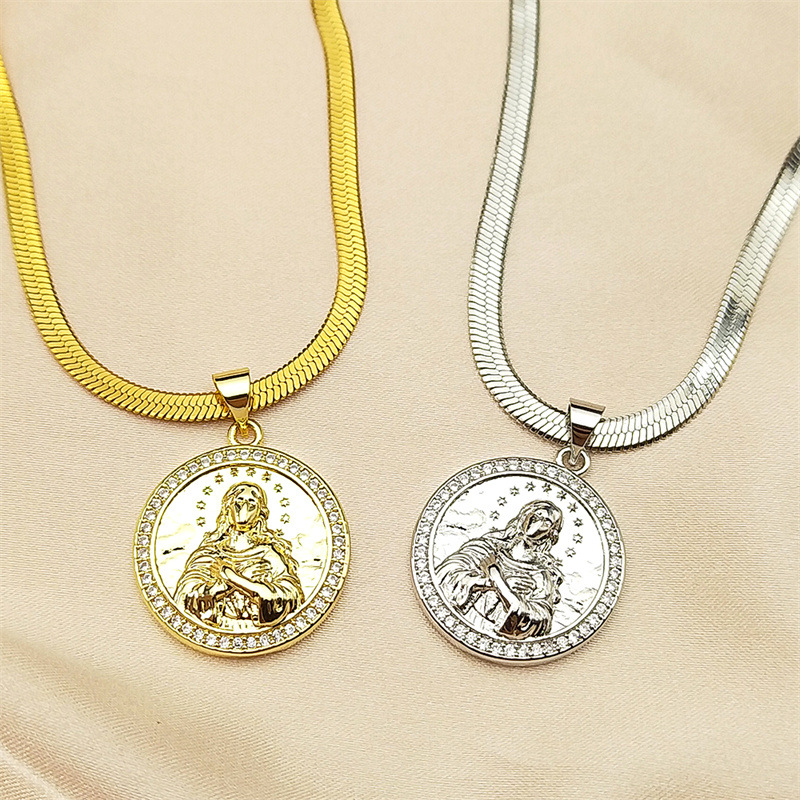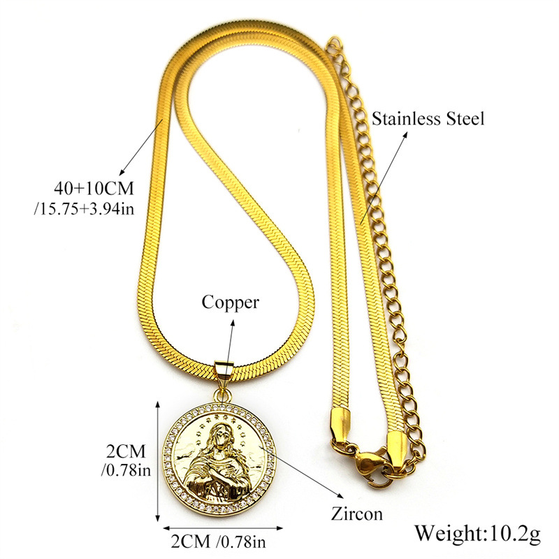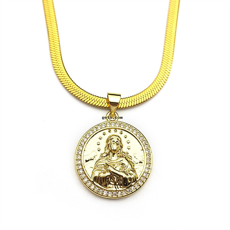Cubic Zircon Micro Pave Brass Necklace, Round, gold color plated