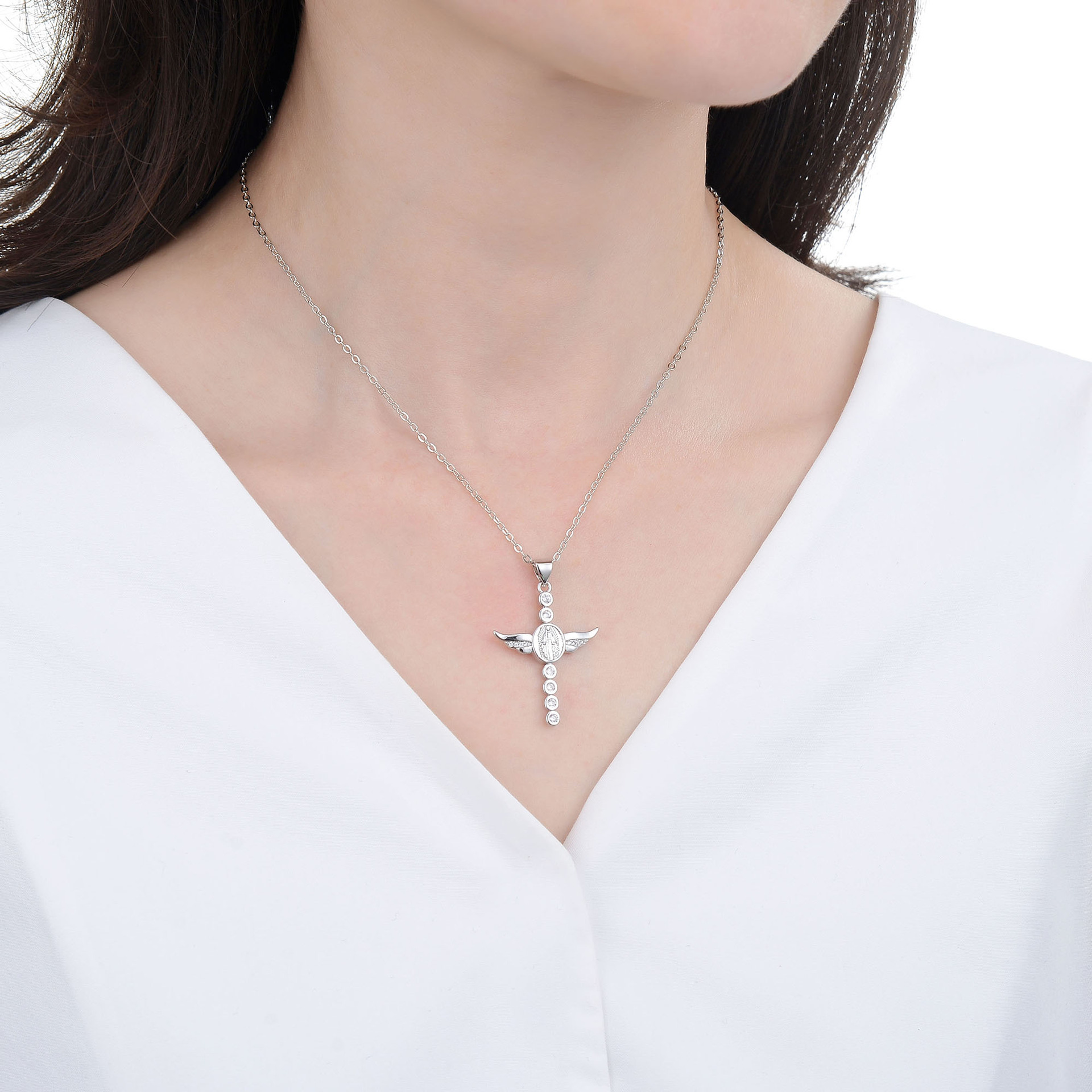 Cubic Zircon Micro Pave Brass Necklace, plated, micro pave cubic zirconia & for woman, silver color, Sold By PC