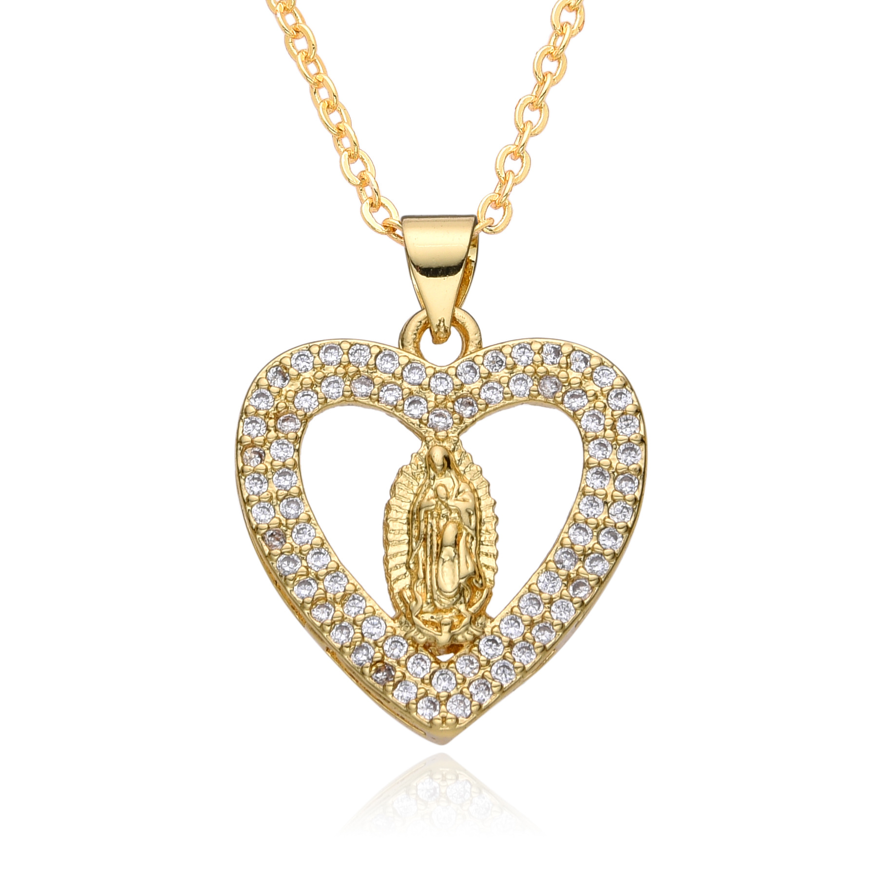 Cubic Zircon Micro Pave Brass Necklace, Heart, Unisex & different size for choice & micro pave cubic zirconia, golden, Sold By Strand