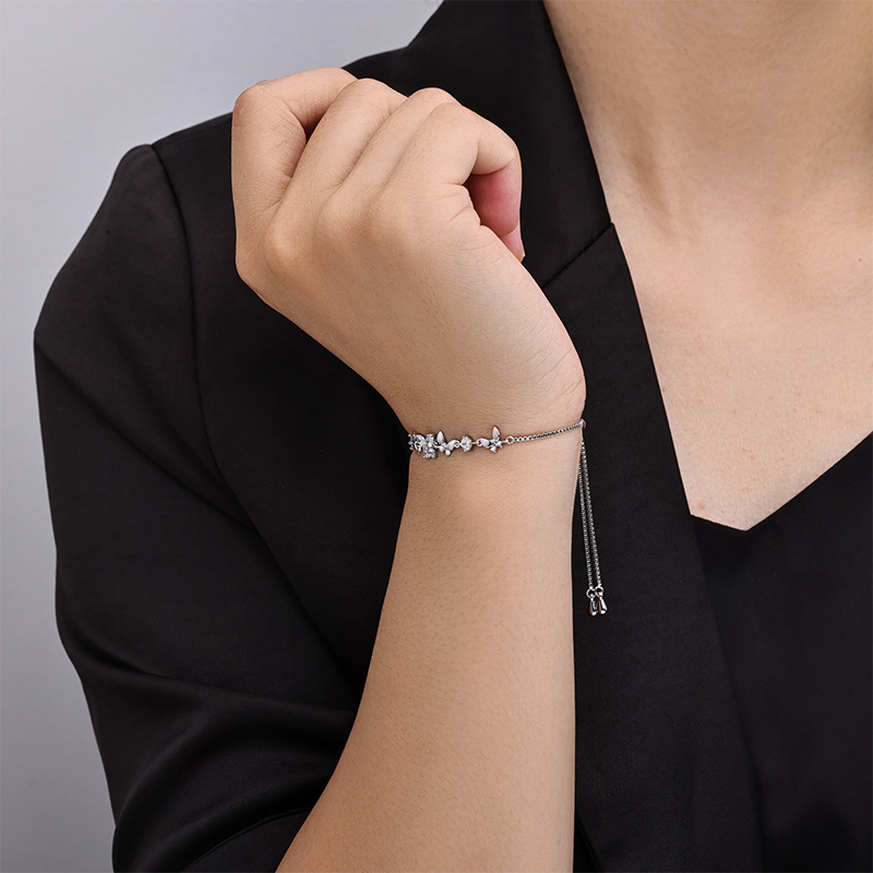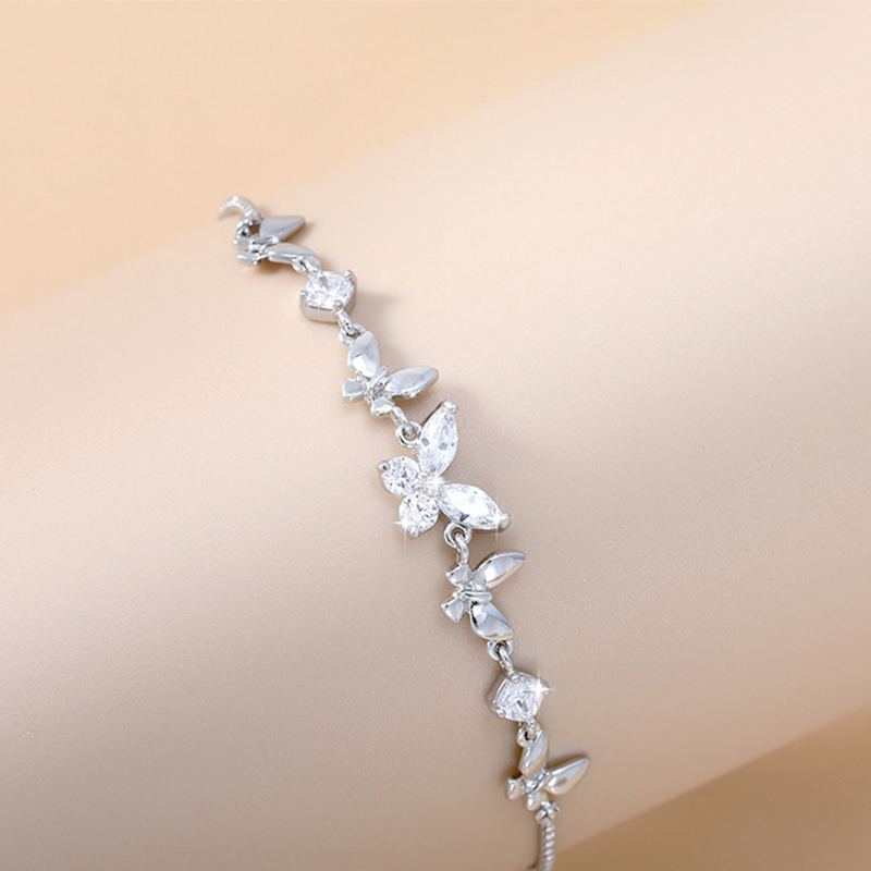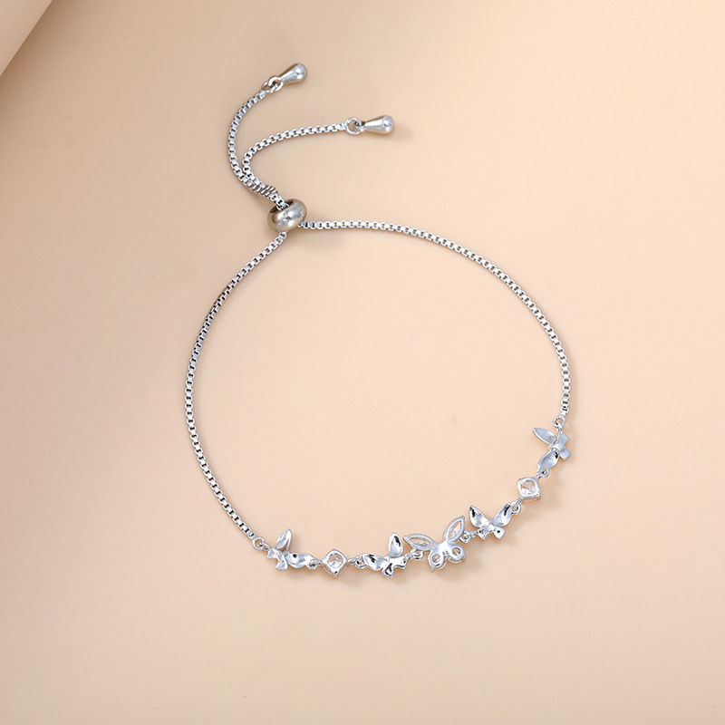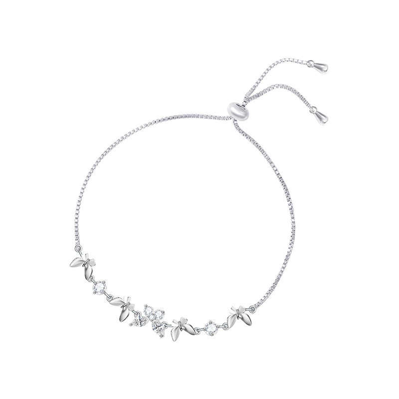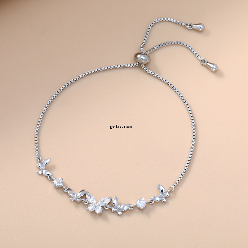 - Cubic Zirconia Micro Pave Brass Bracelet, with Nylon Cord, Butterfly