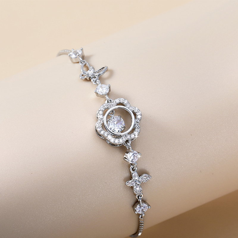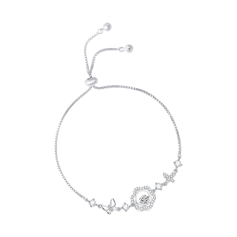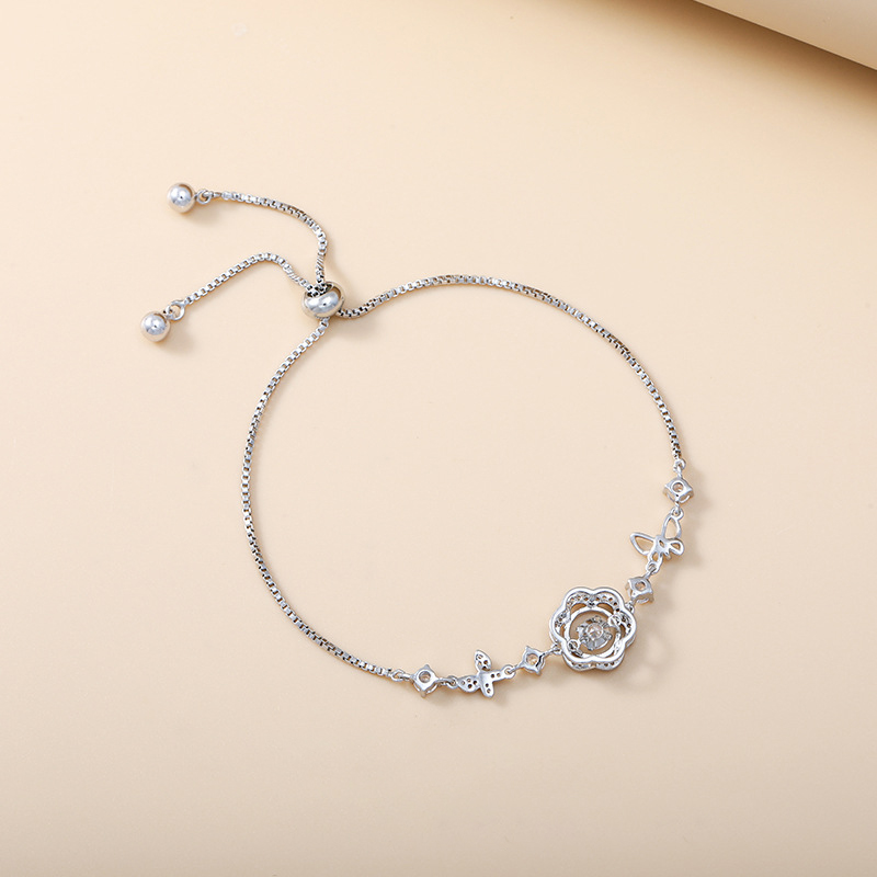Brass Bracelet, Flower, plated, adjustable & box chain & micro pave cubic zirconia & for woman, silver color, Length:Approx 6-9 Inch, Sold By PC