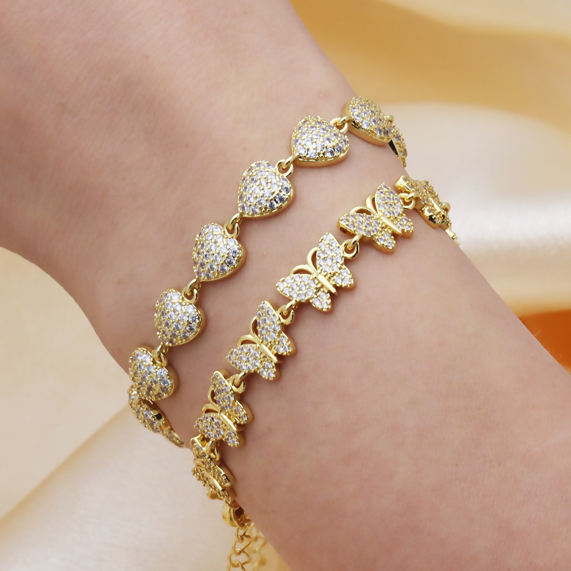 Cubic Zirconia Micro Pave Brass Bracelet, plated, micro pave cubic zirconia & for woman, gold, Sold By PC