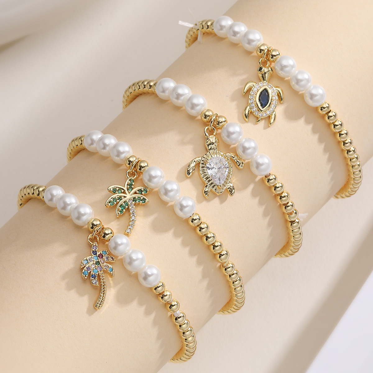 Cubic Zirconia Micro Pave Brass Bracelet, with Plastic Pearl, 18K gold plated, different styles for choice & micro pave cubic zirconia & for woman, Sold By PC