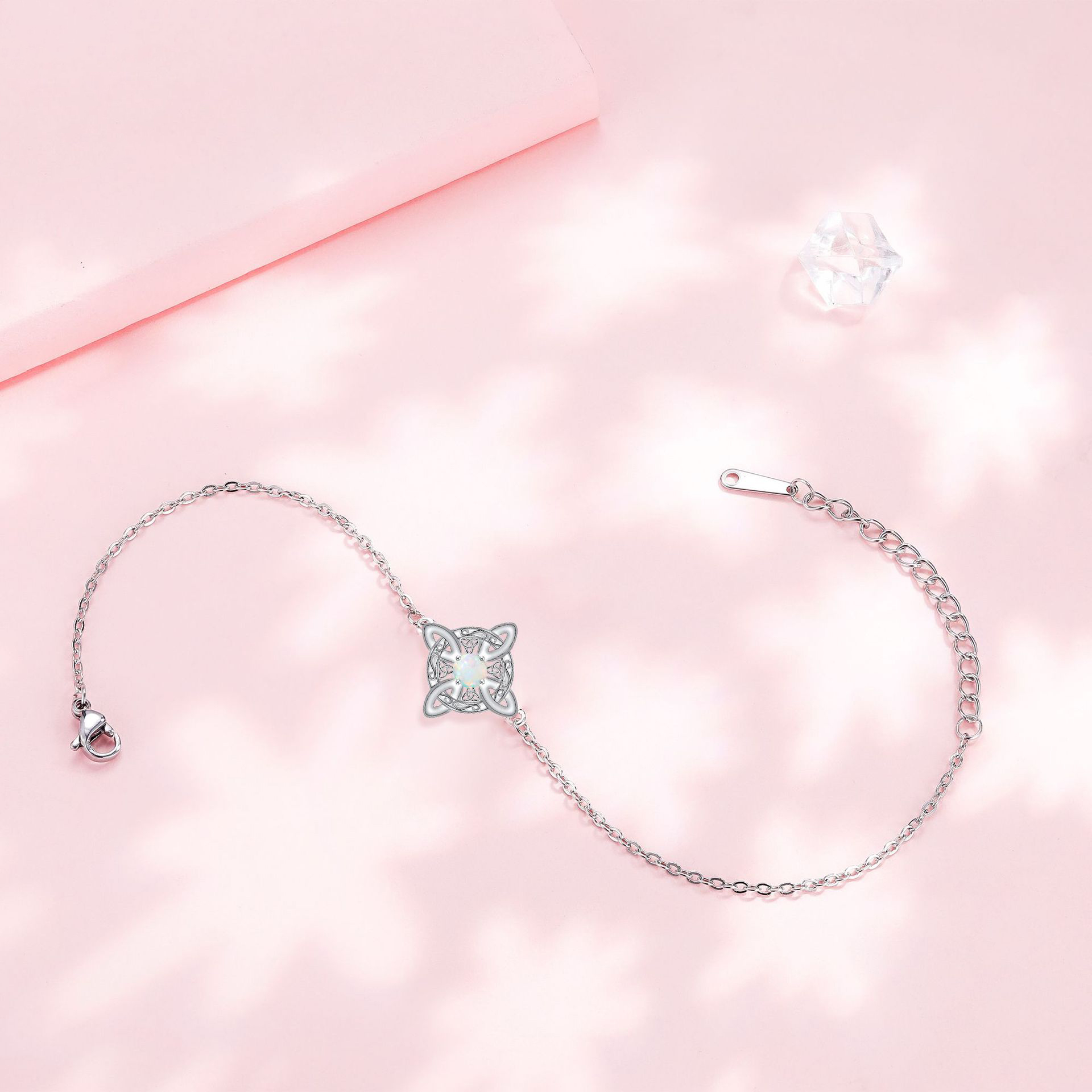 Cubic Zirconia Micro Pave Brass Bracelet, with 5cm extender chain, Rectangle
