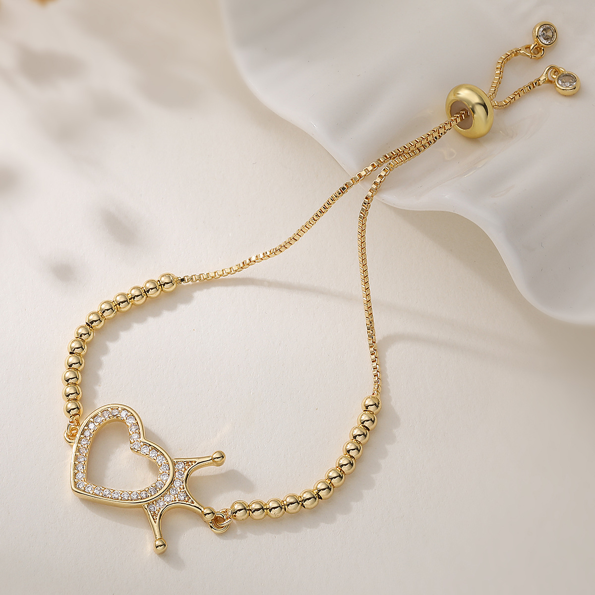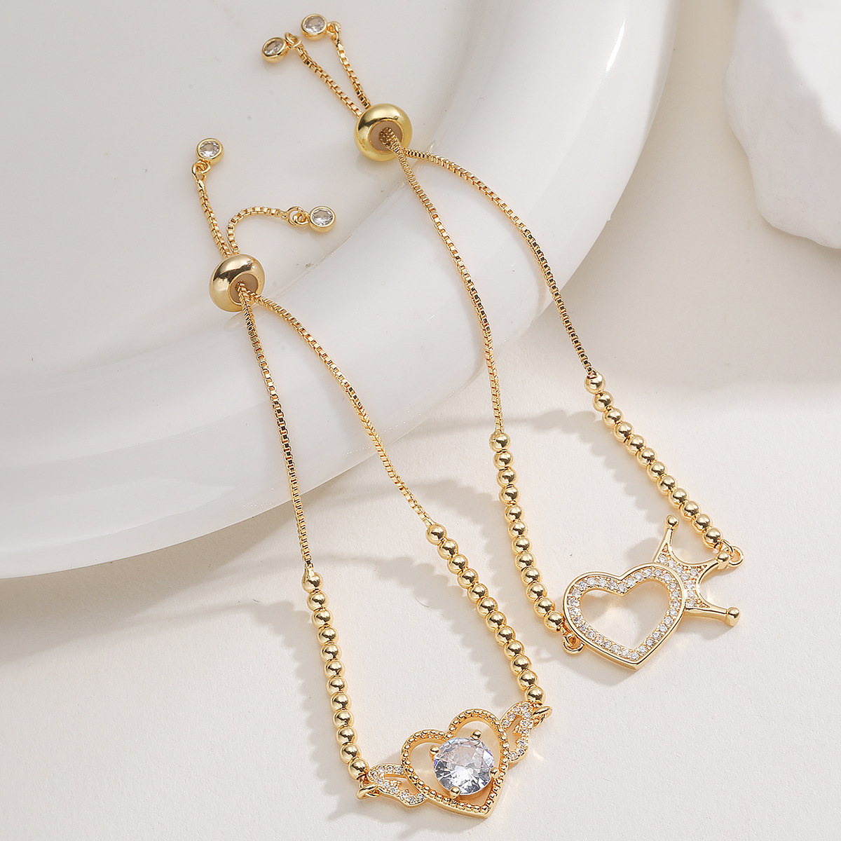 Cubic Zirconia Micro Pave Brass Bracelet, Heart, 18K gold plated, different styles for choice & micro pave cubic zirconia & for woman & hollow, Sold By PC