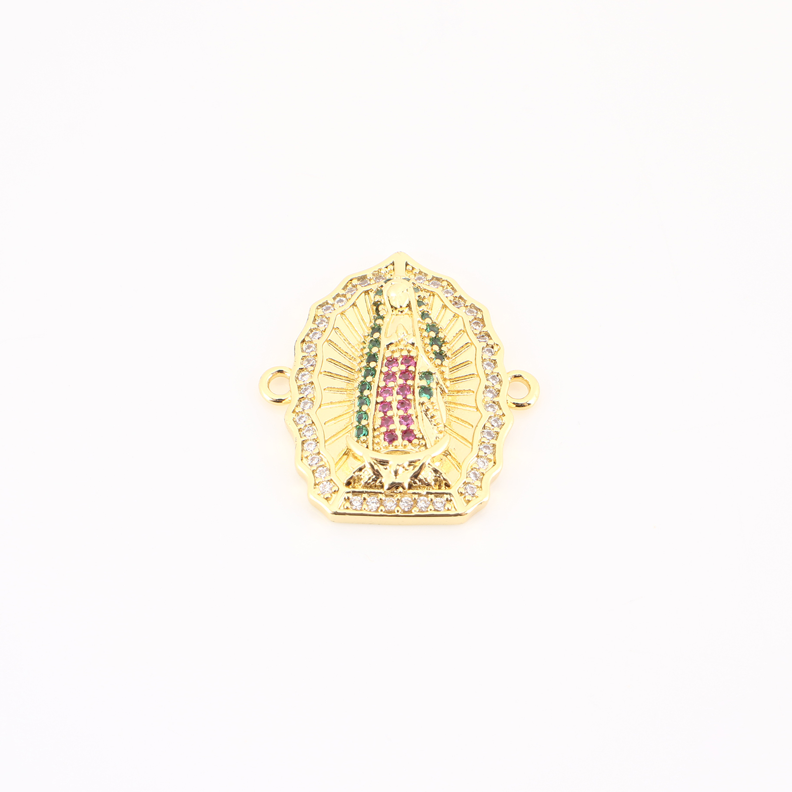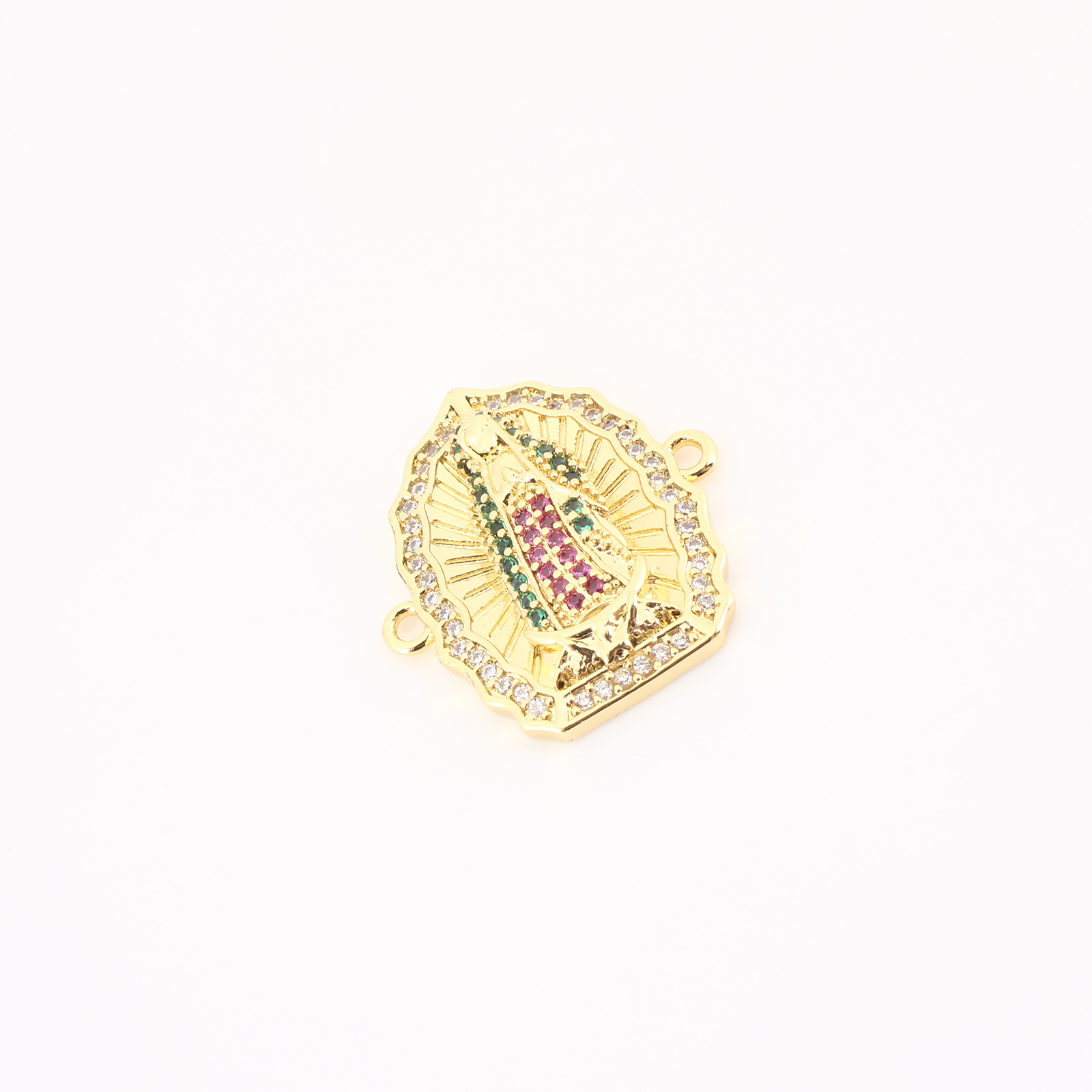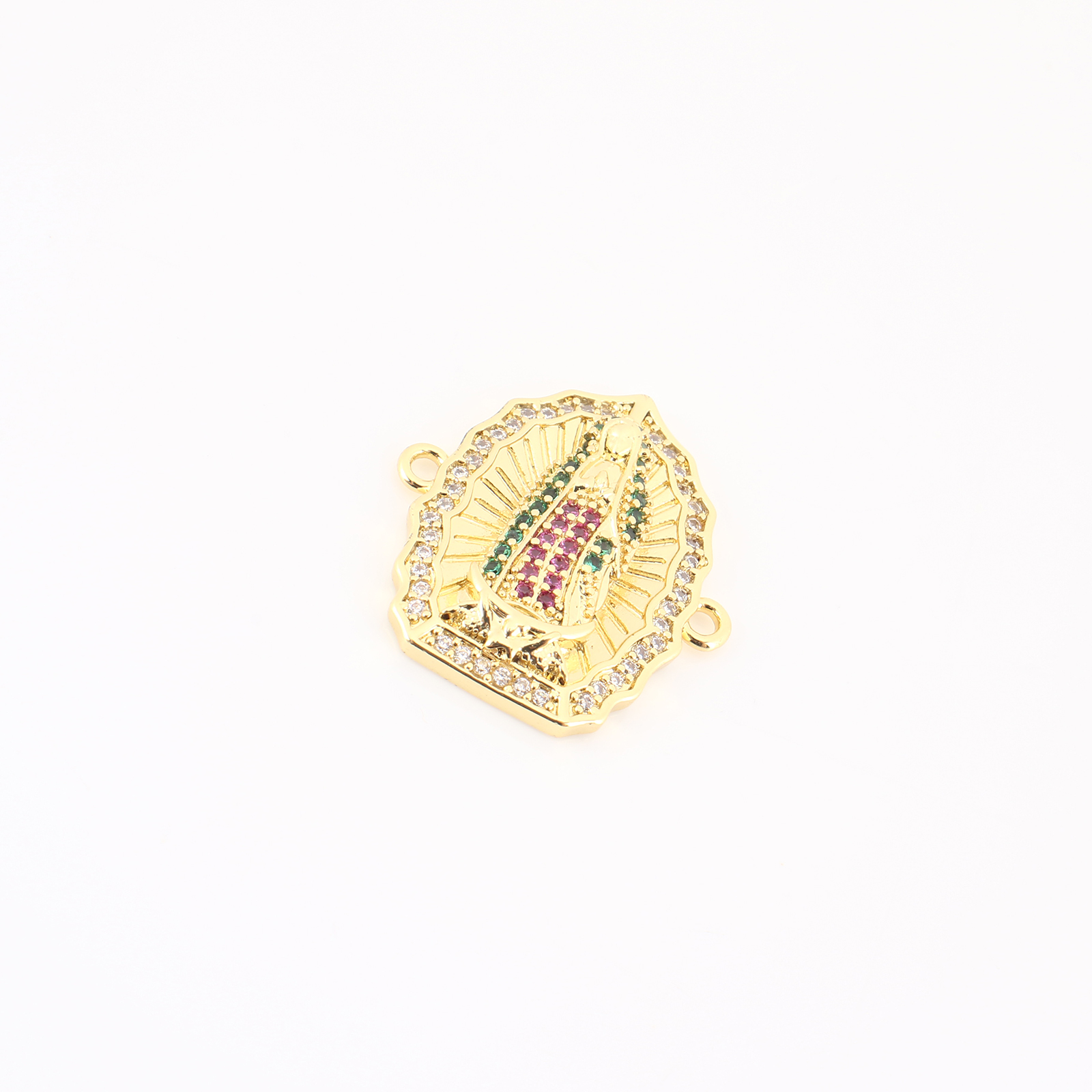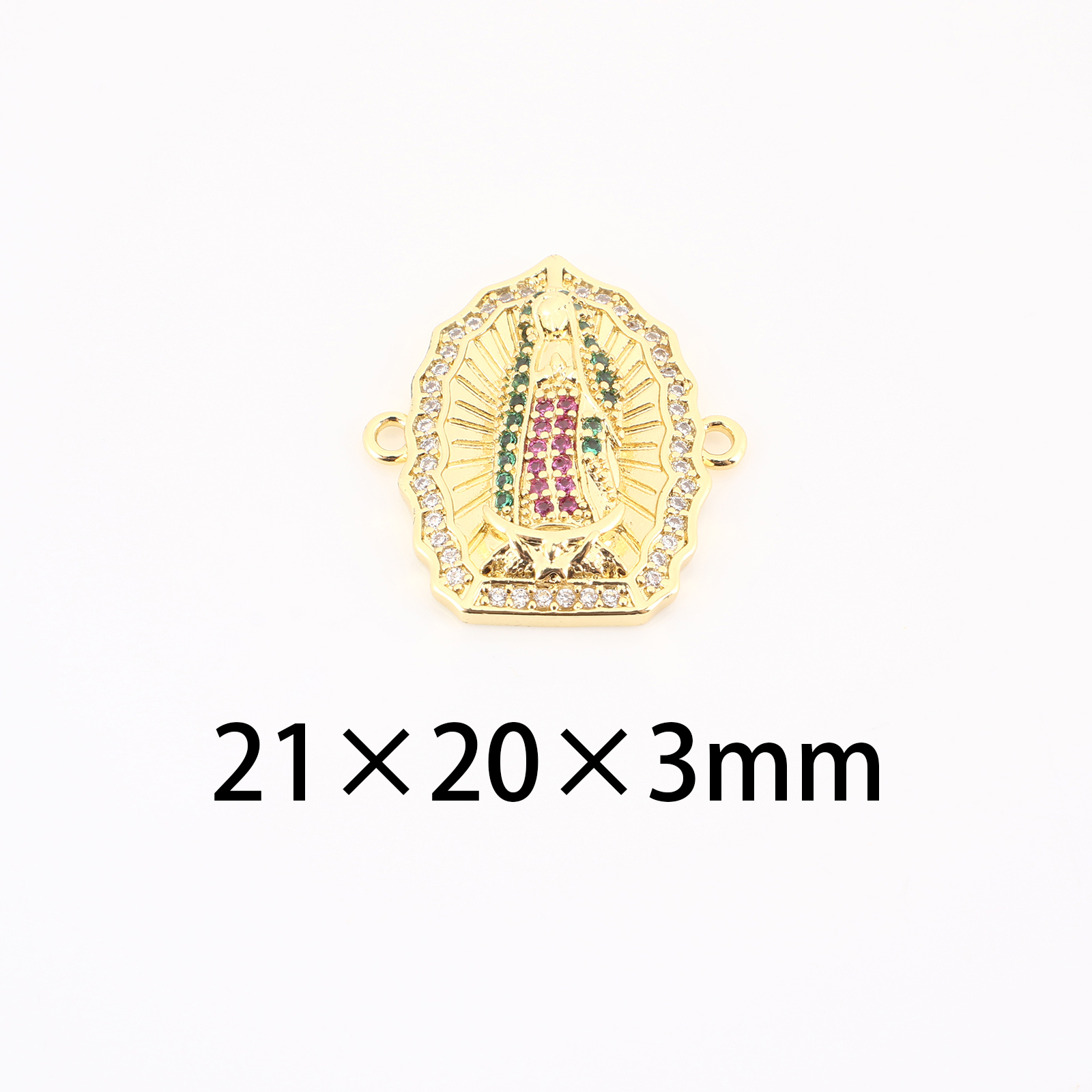 Cubic Zirconia Micro Pave Brass Connector, Girl, gold color plated, fashion jewelry & DIY & micro pave cubic zirconia & for woman, multi-colored, 11x11x2mm, Hole:Approx 0.5mm, 10PCs/Lot, Sold By Lot