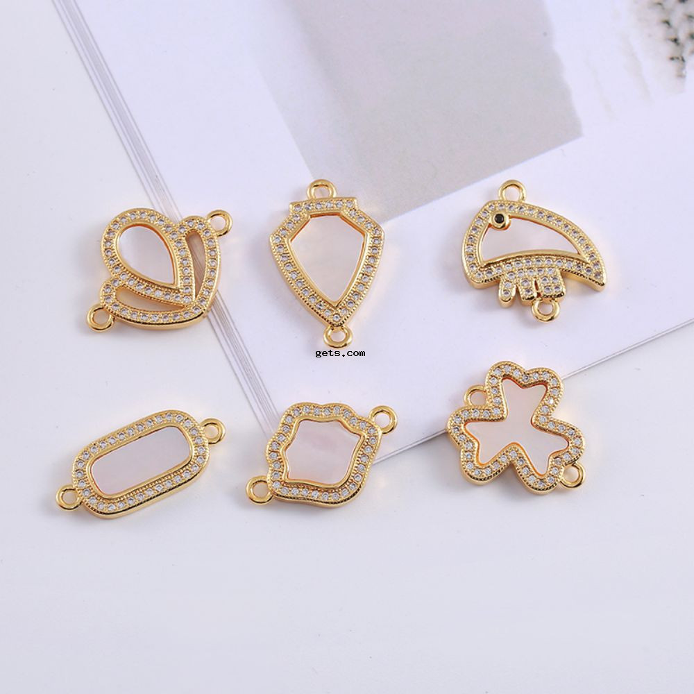 - Cubic Zirconia Micro Pave Brass Connector, gold color plated, micro pave cubic zirconia & hollow