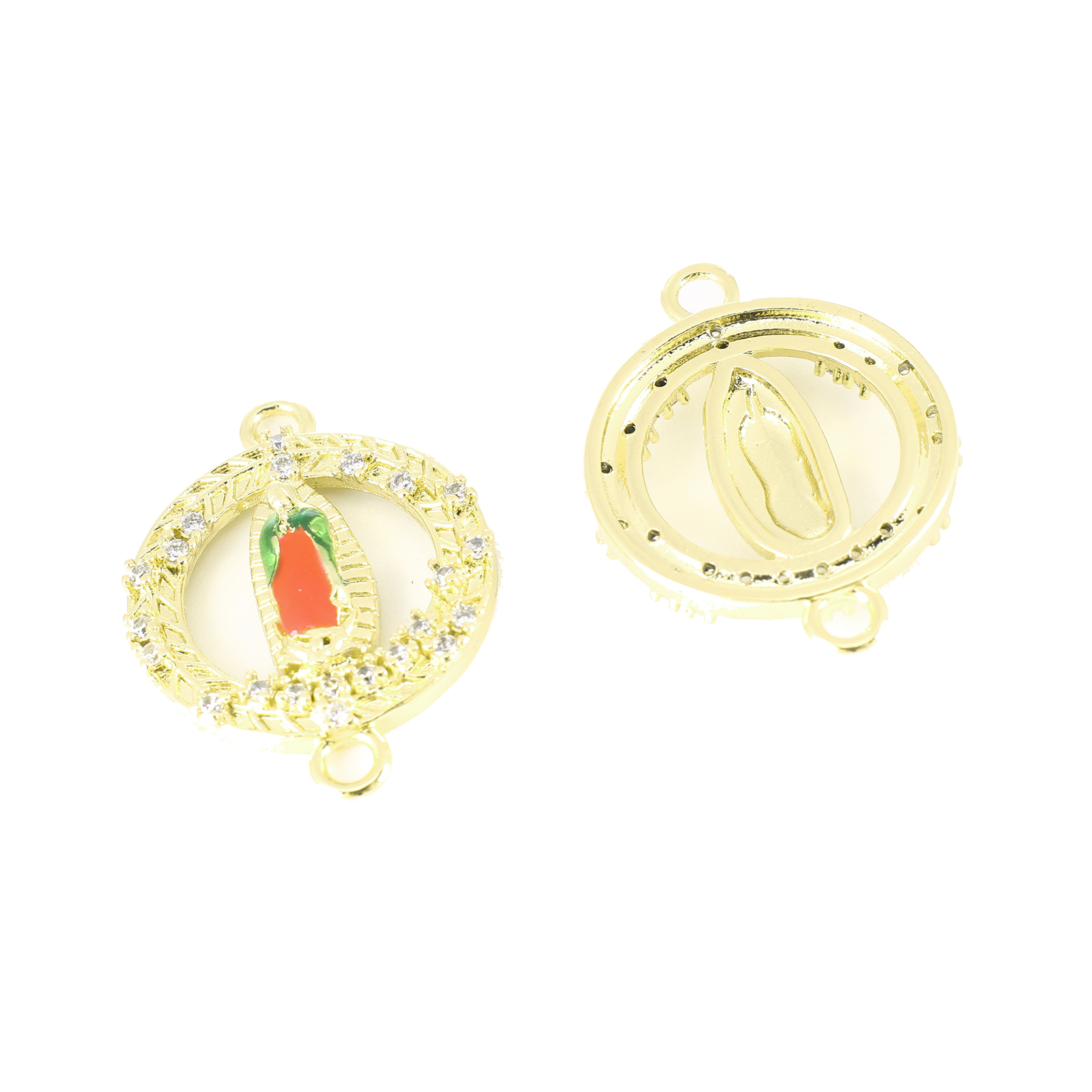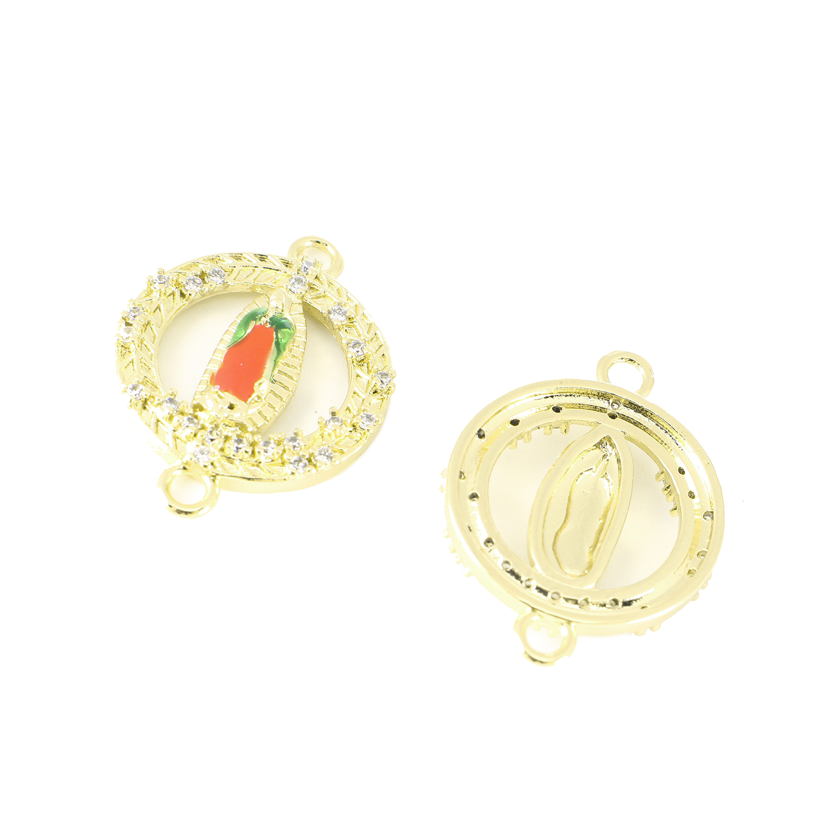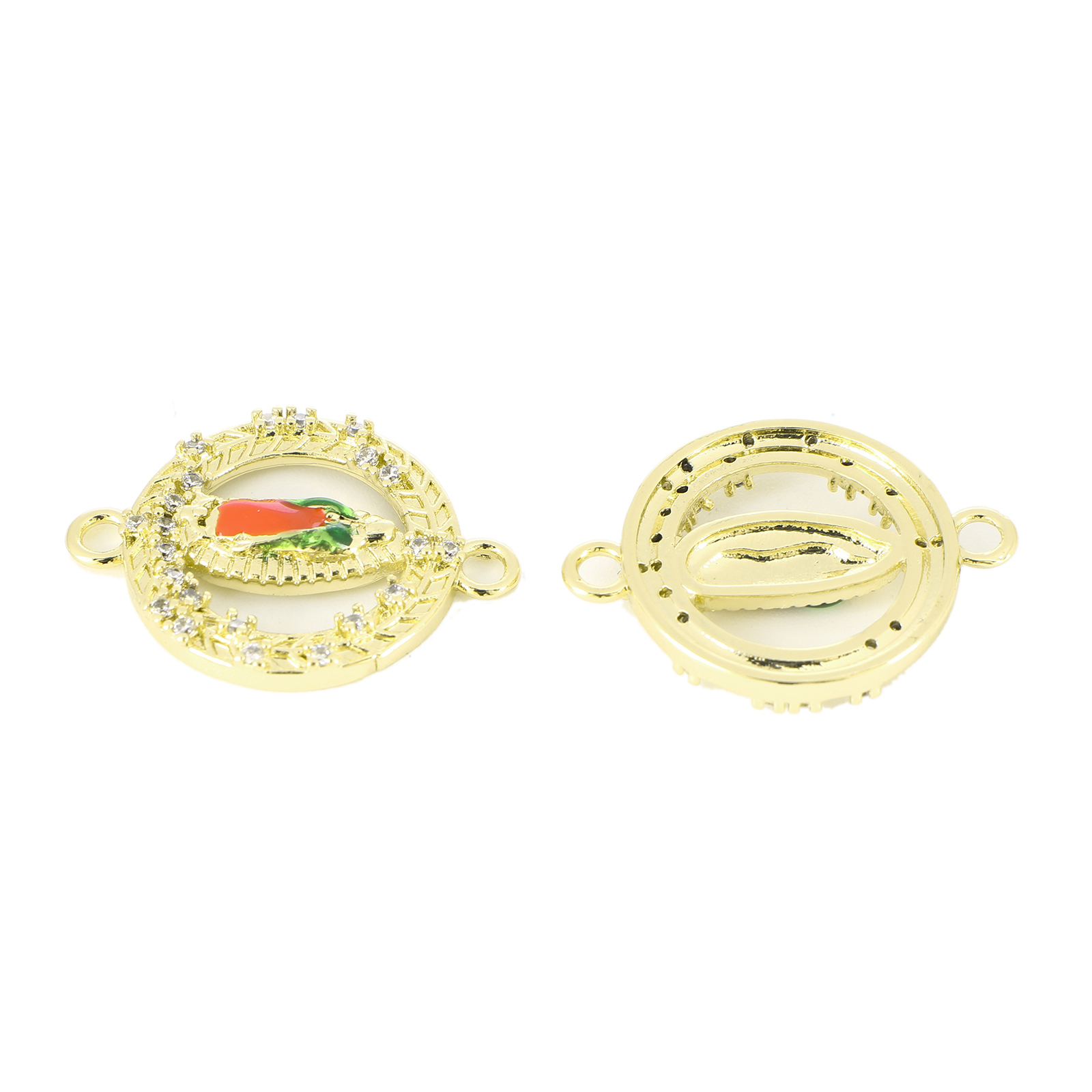 Cubic Zirconia Micro Pave Brass Connector, gold color plated, DIY & micro pave cubic zirconia & enamel & hollow, 26x19x3mm, Sold By PC