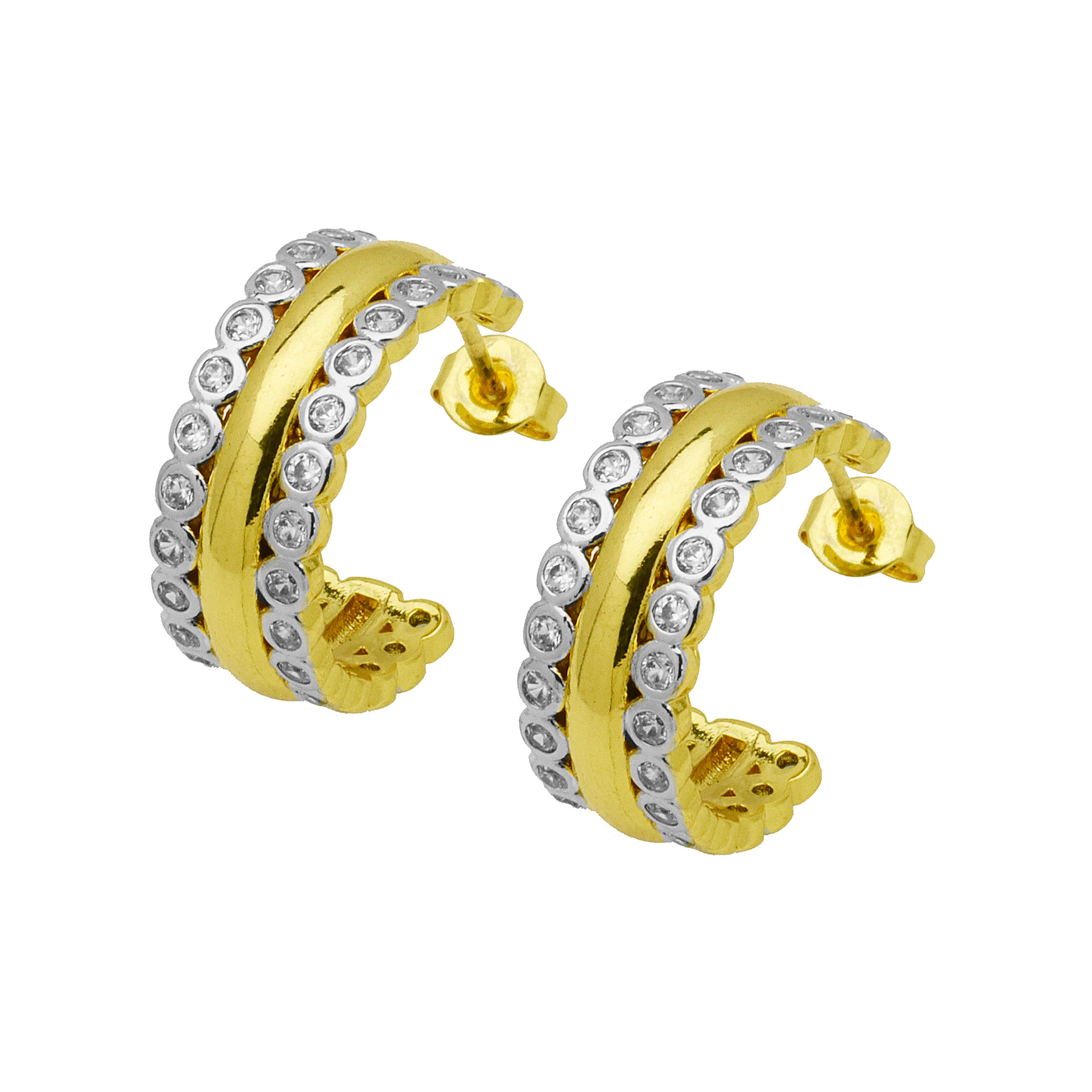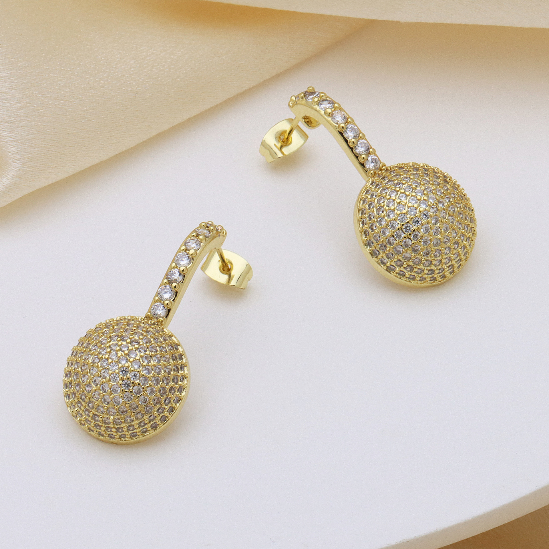Cubic Zirconia Micro Pave Brass Earring, Round, gold color plated