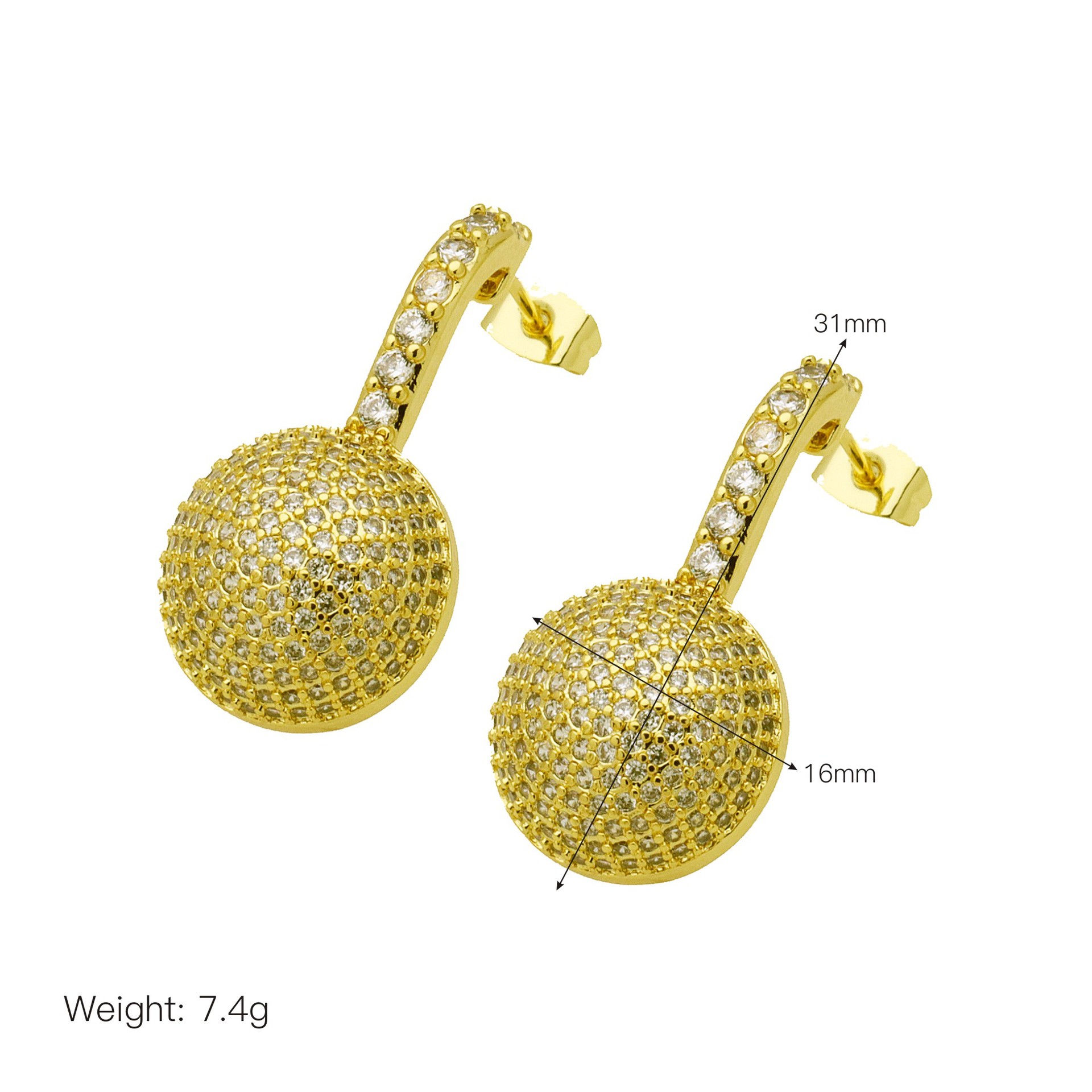 Cubic Zirconia Micro Pave Brass Earring, Round, gold color plated, fashion jewelry & micro pave cubic zirconia & for woman, more colors for choice, 7x7x16mm, 10Pairs/Lot, Sold By Lot