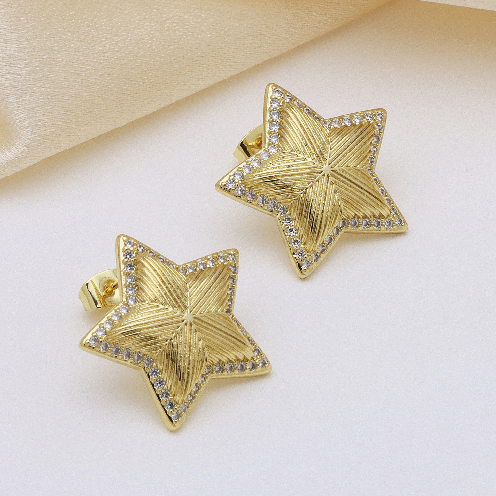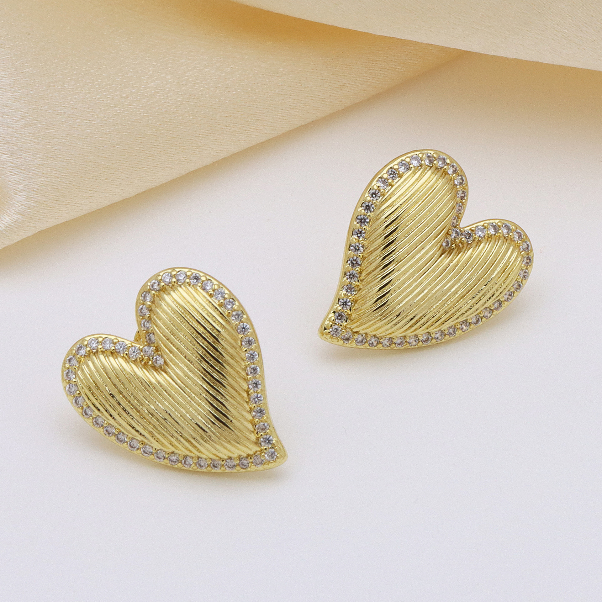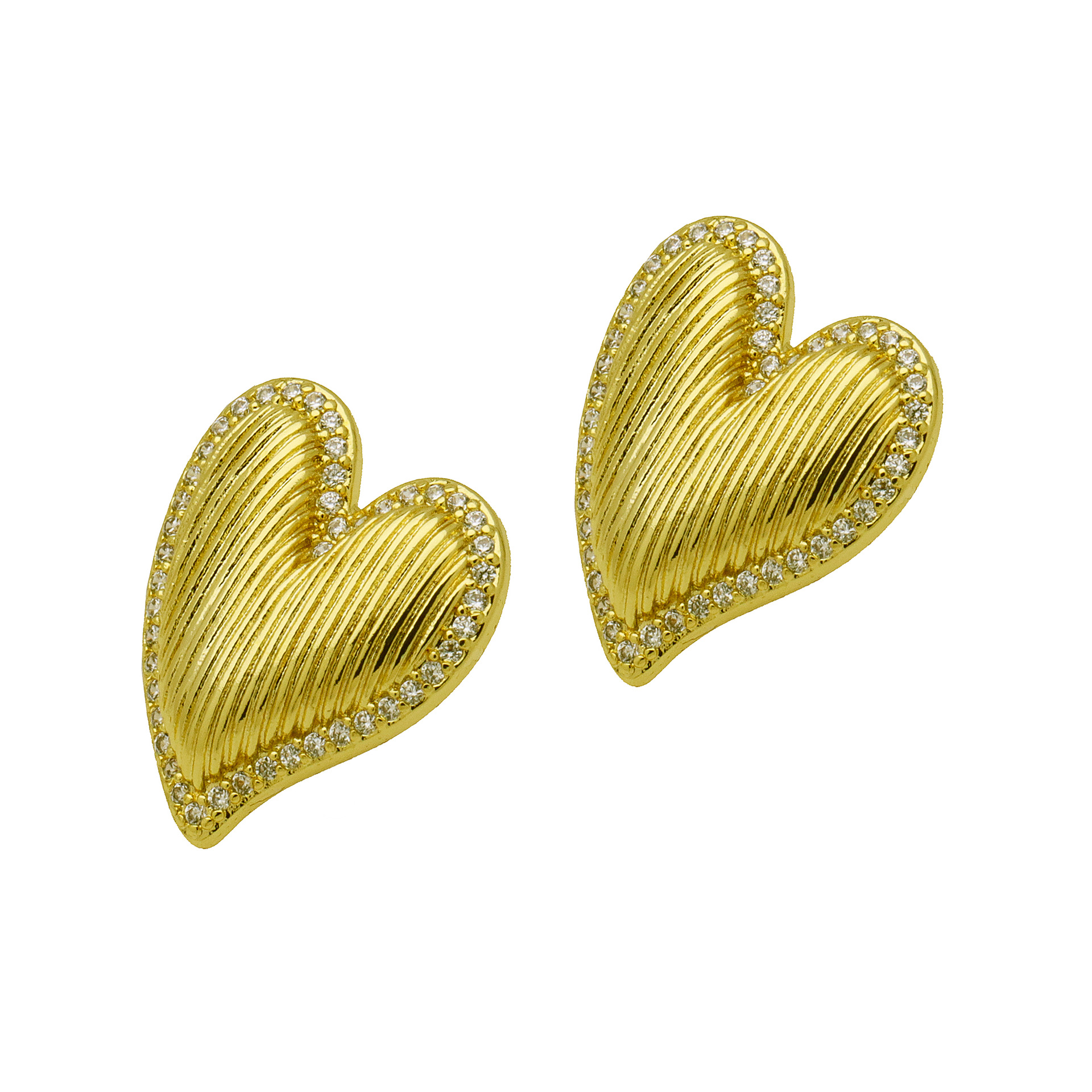Cubic Zirconia Micro Pave Brass Earring, petals, real gold plated