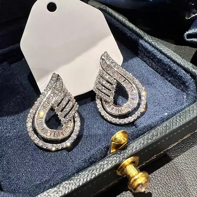 Cubic Zirconia Micro Pave Brass Earring, Teardrop, plated, micro pave cubic zirconia & for woman & hollow, Sold By Pair