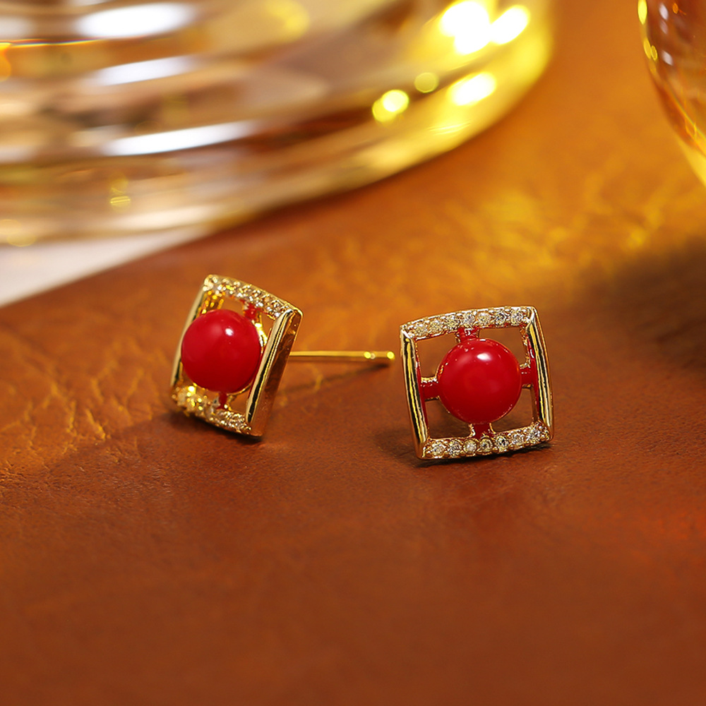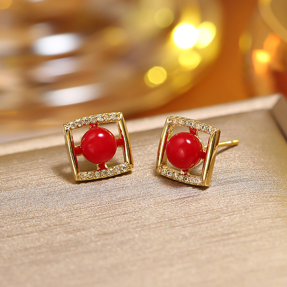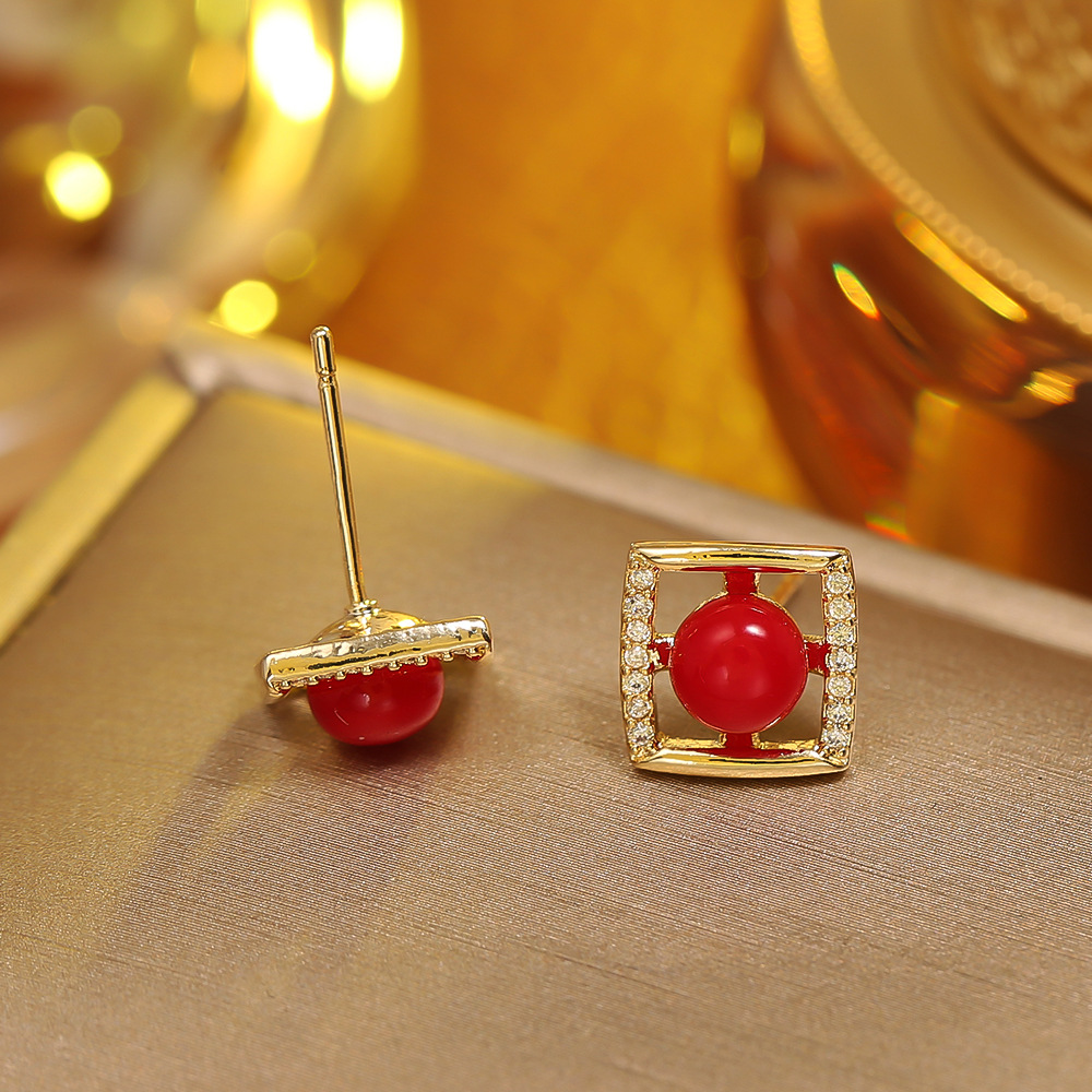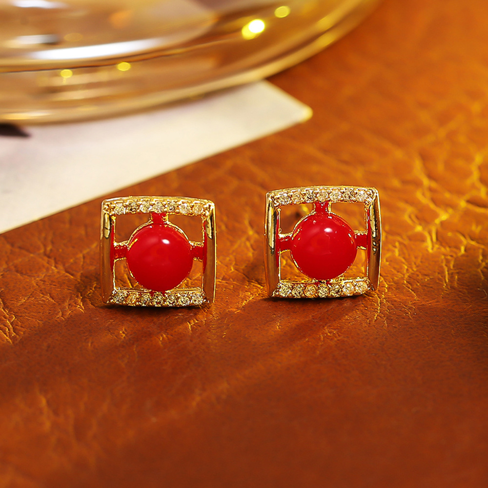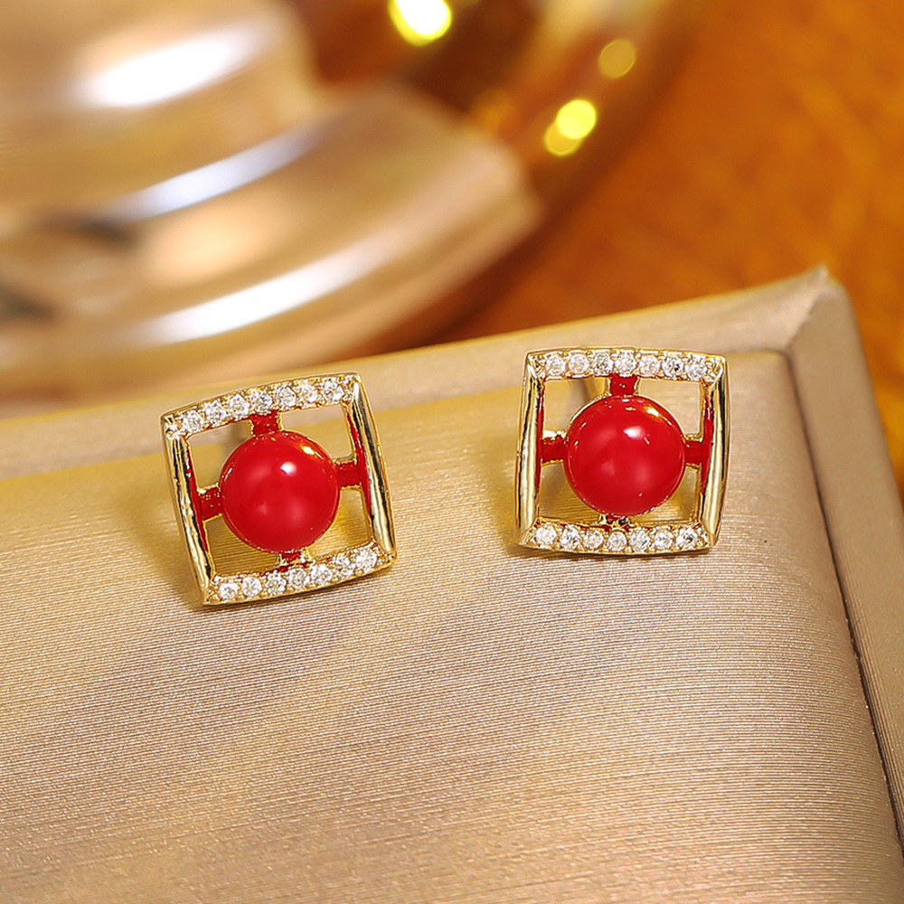 Cubic Zirconia Micro Pave Brass Earring, Square, real gold plated, micro pave cubic zirconia & for woman & enamel & hollow, nickel, lead & cadmium free, Sold By Pair