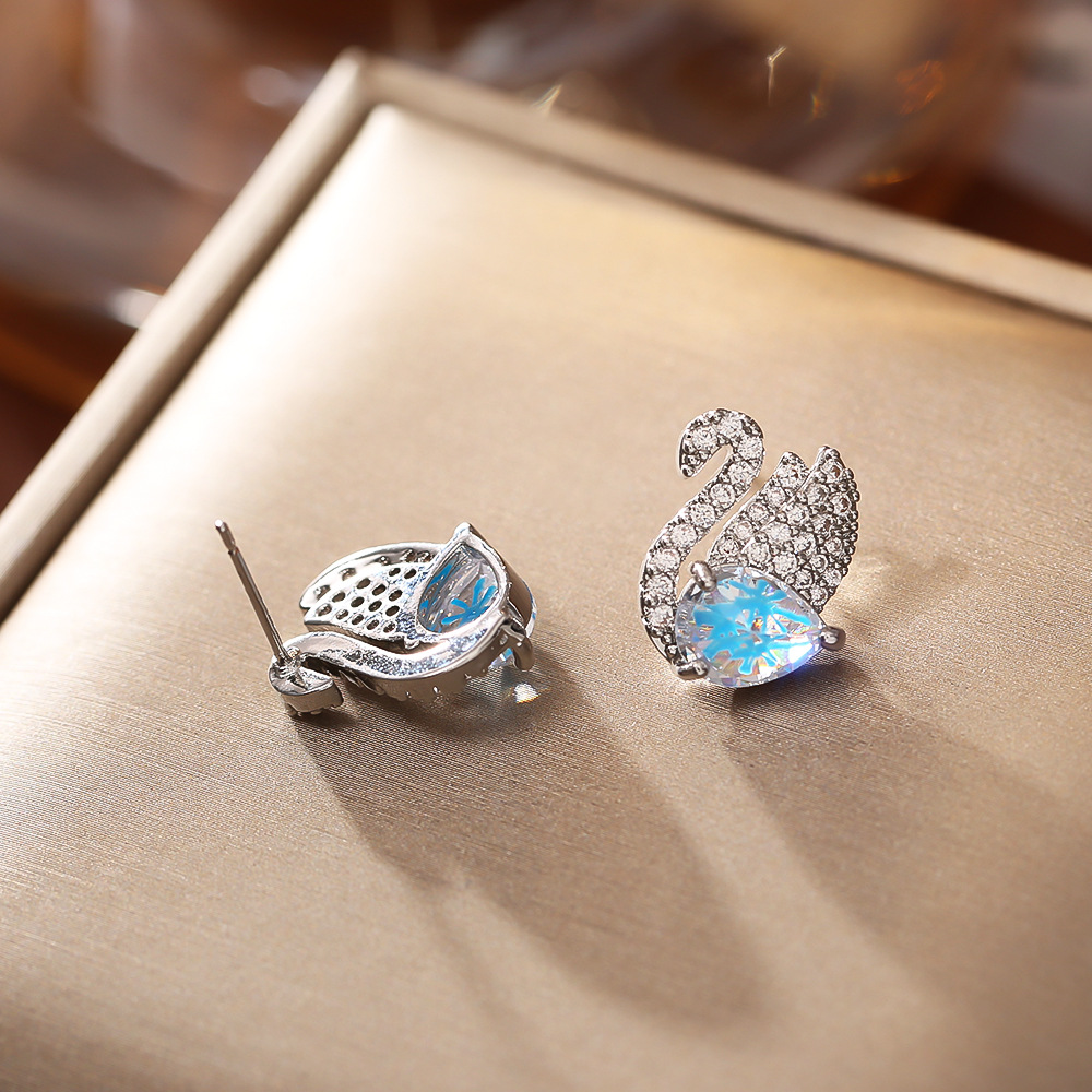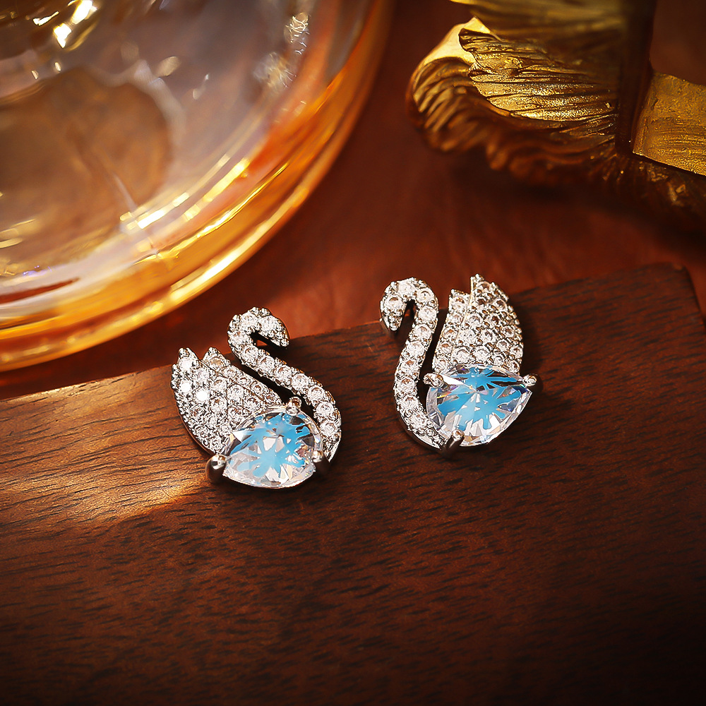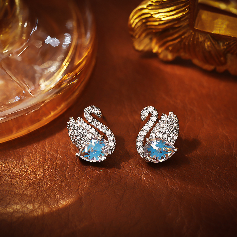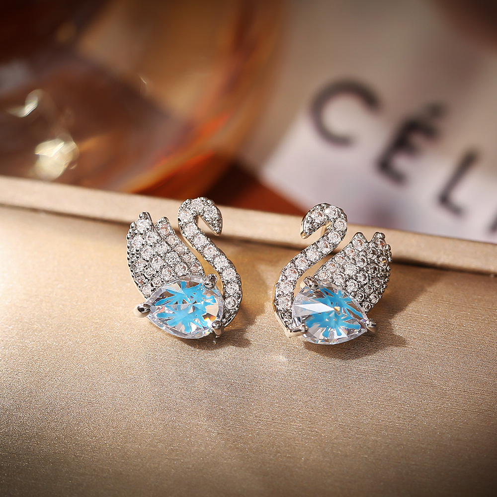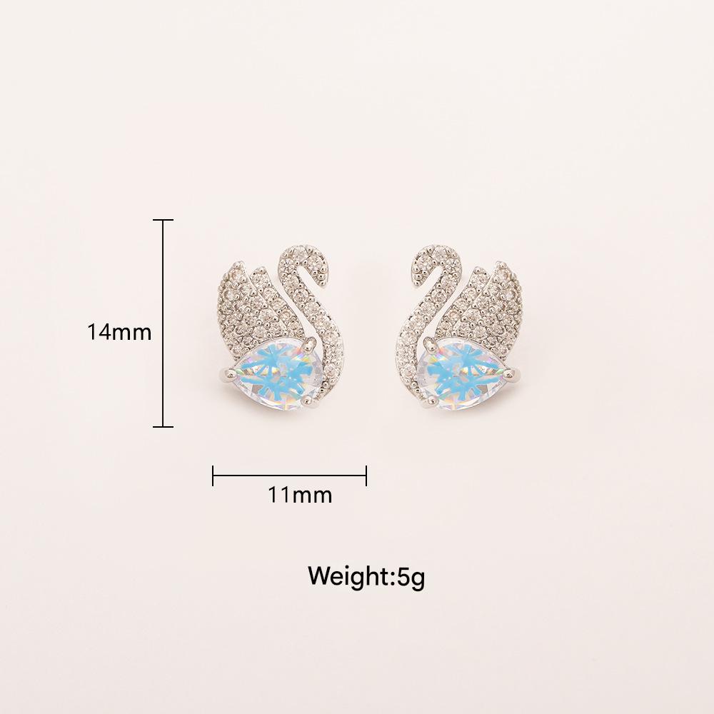 Cubic Zirconia Micro Pave Brass Earring, Swan, plated, micro pave cubic zirconia & for woman & with rhinestone, silver color, Sold By Pair