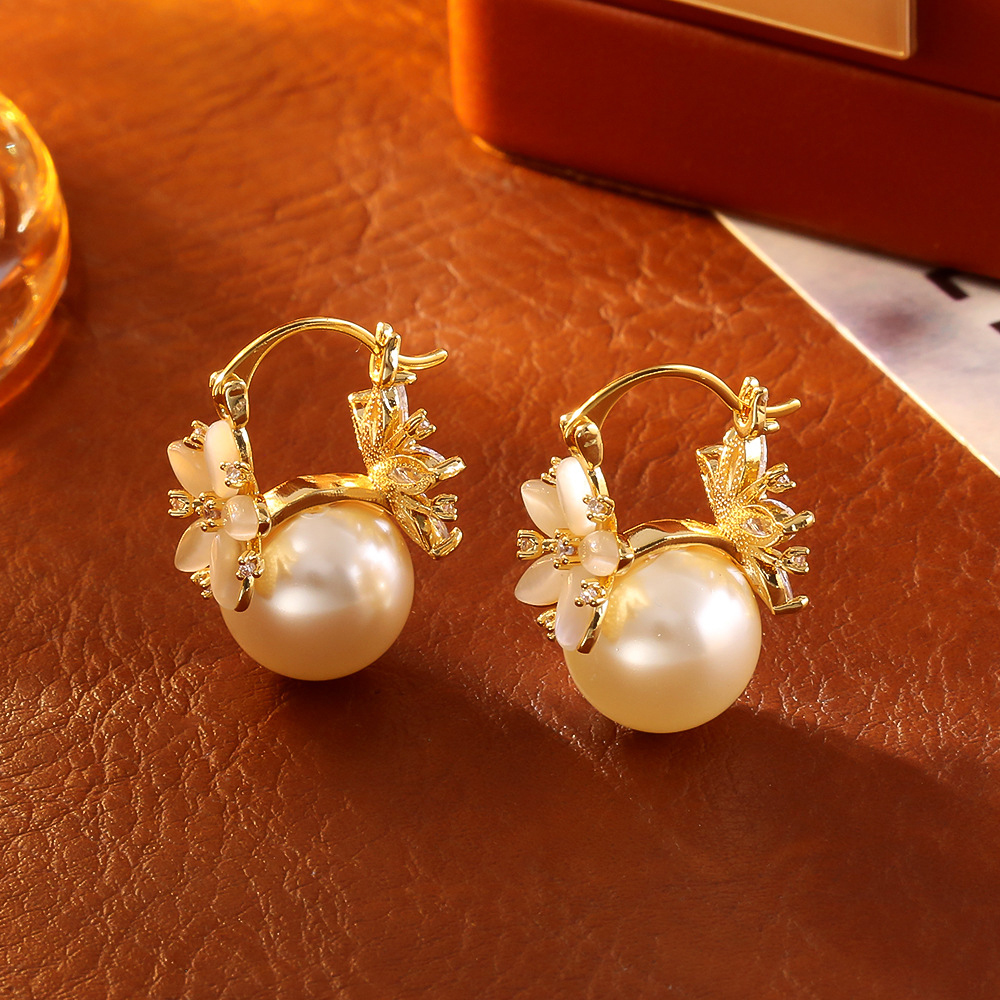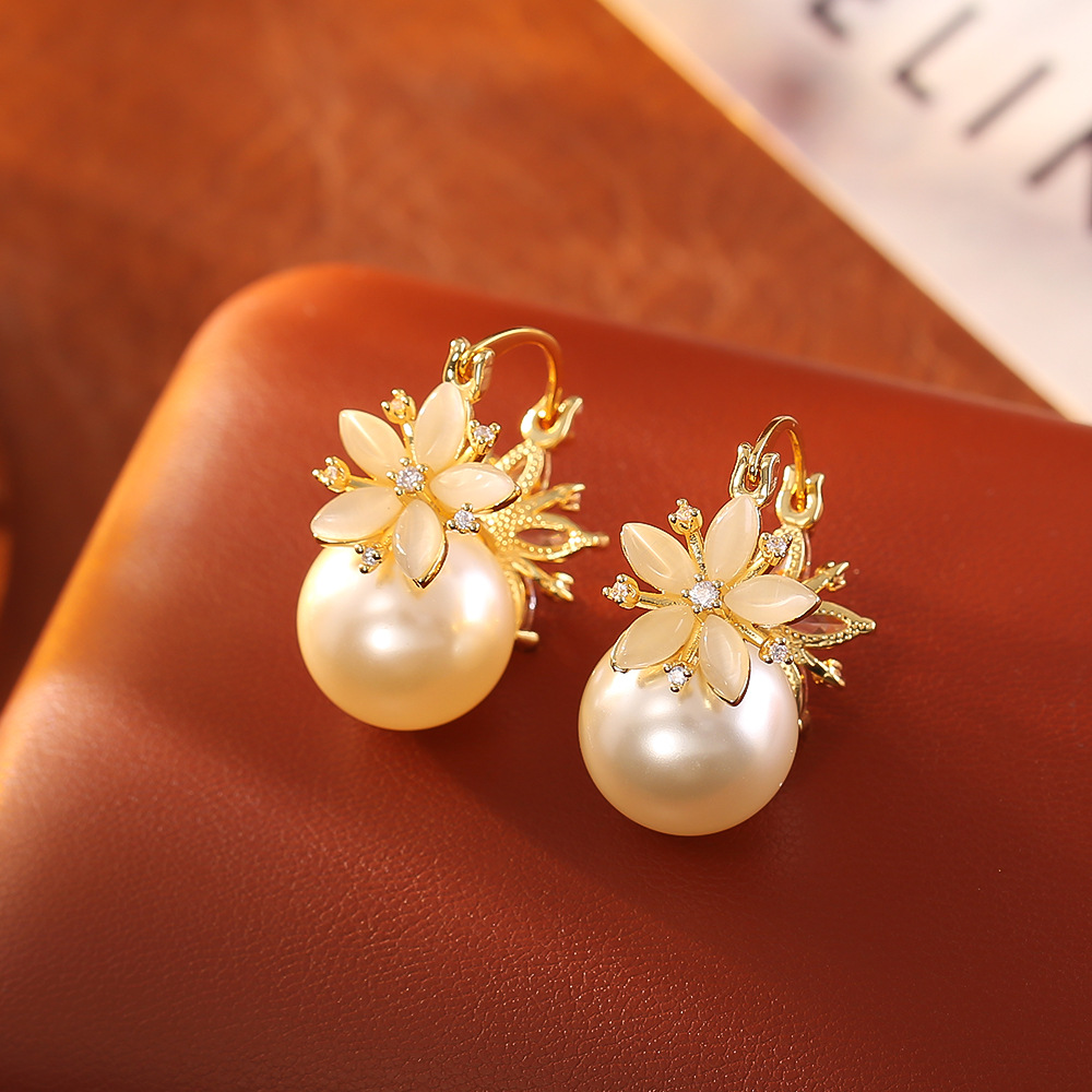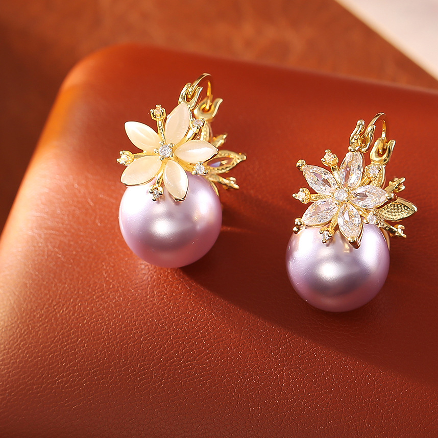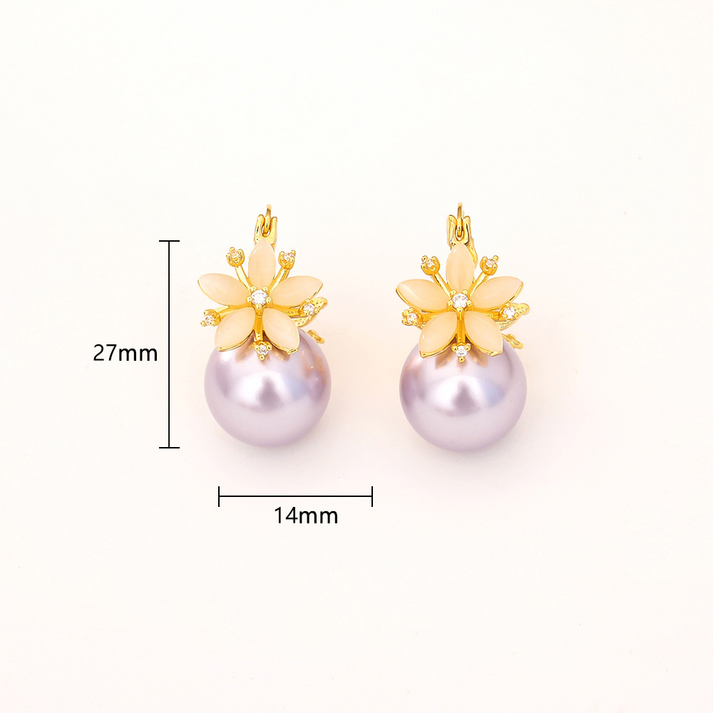 Cubic Zirconia Micro Pave Brass Earring, with Cats Eye & Plastic Pearl, 18K gold plated, fashion jewelry & micro pave cubic zirconia & for woman, more colors for choice, Sold By Pair