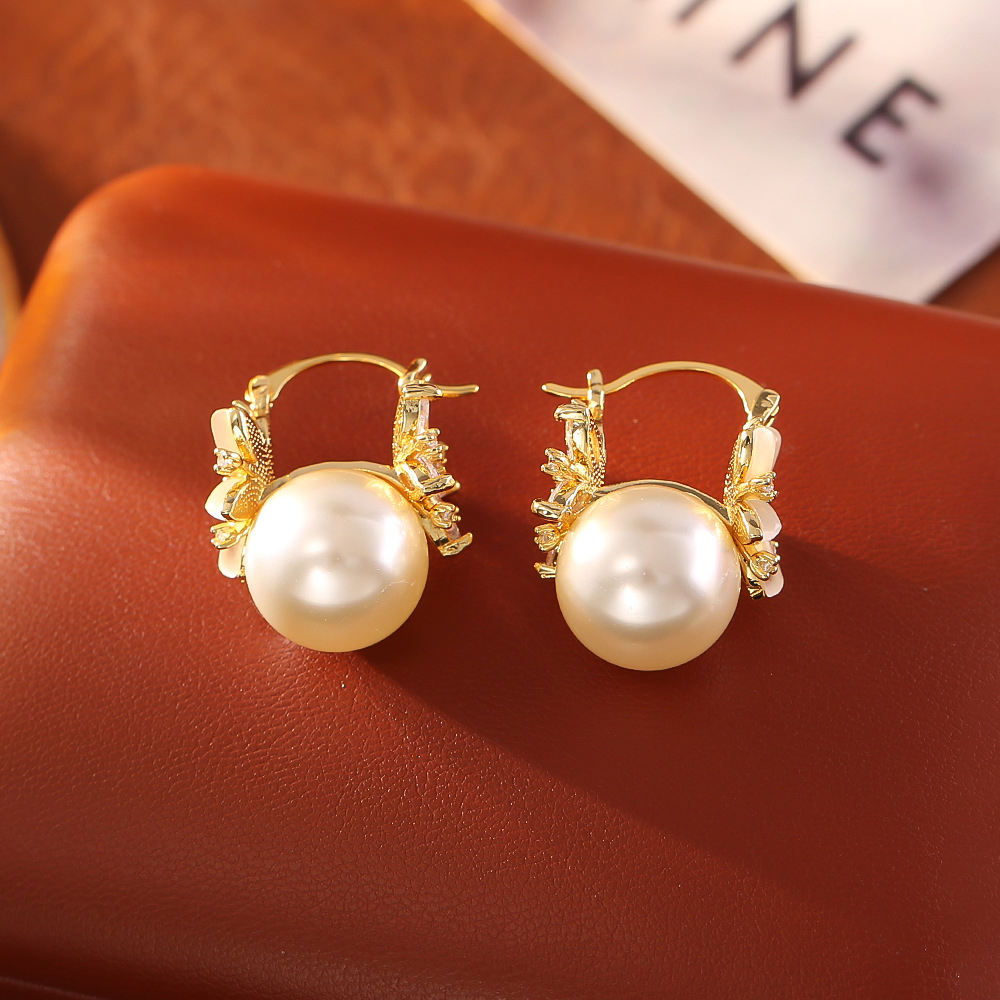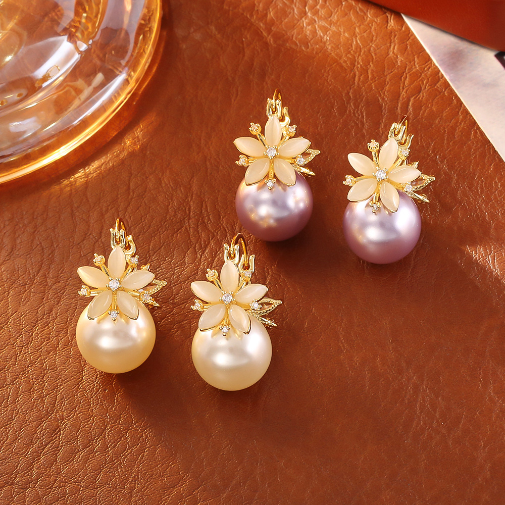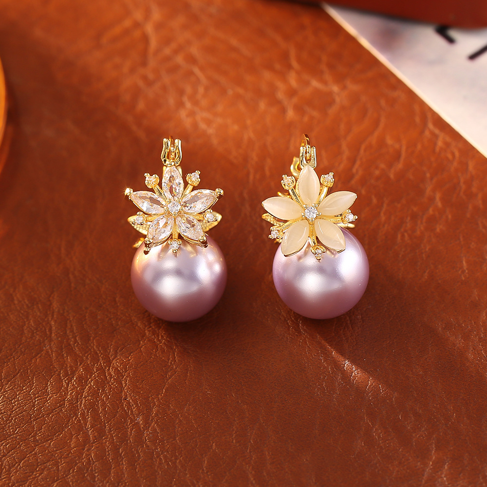 Cubic Zirconia Micro Pave Brass Earring, with Cats Eye & Plastic Pearl, 18K gold plated, fashion jewelry & micro pave cubic zirconia & for woman, more colors for choice, Sold By Pair