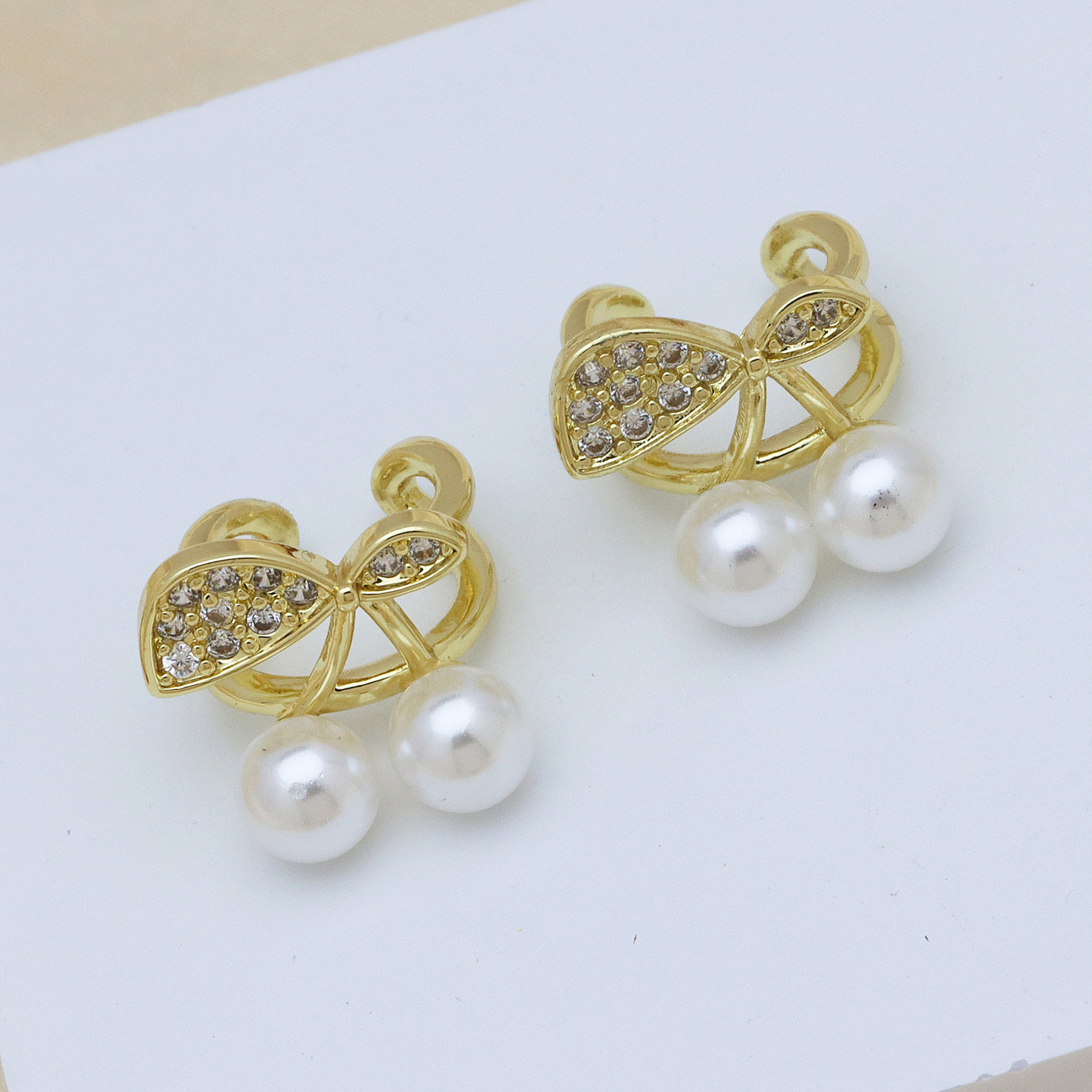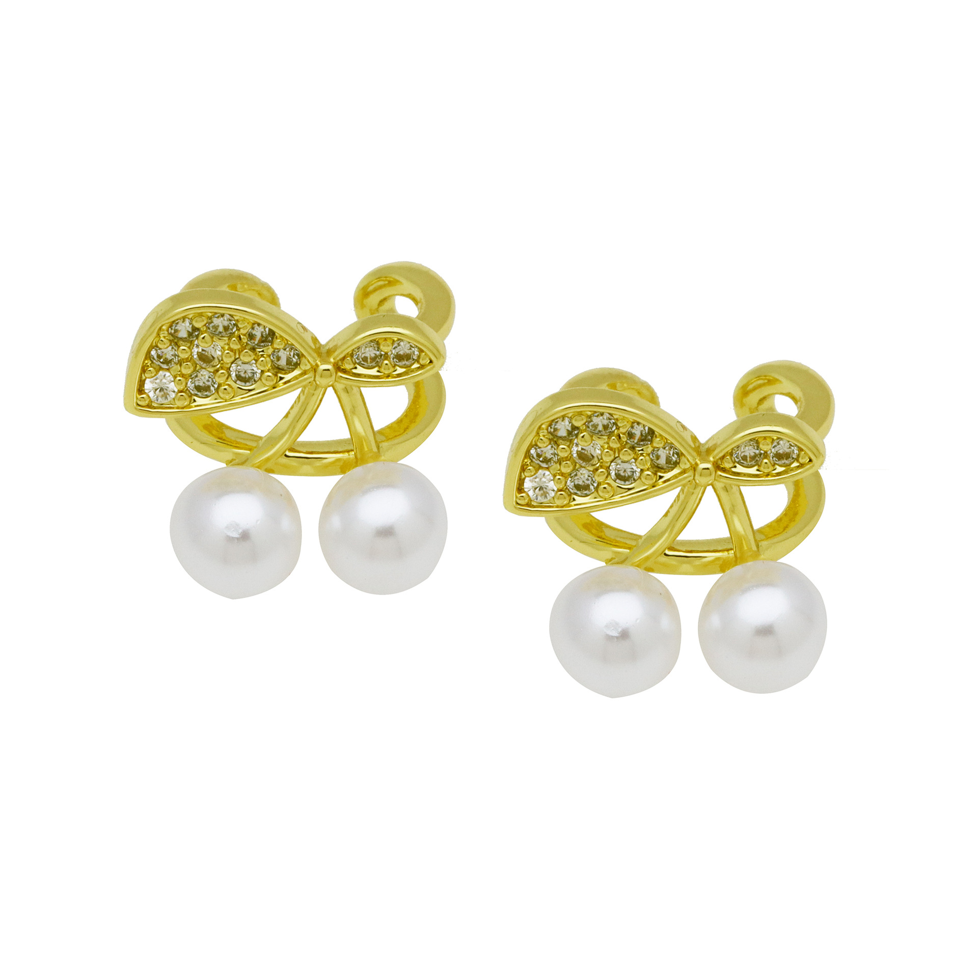 - Cubic Zirconia Micro Pave Brass Earring, with Shell, polished