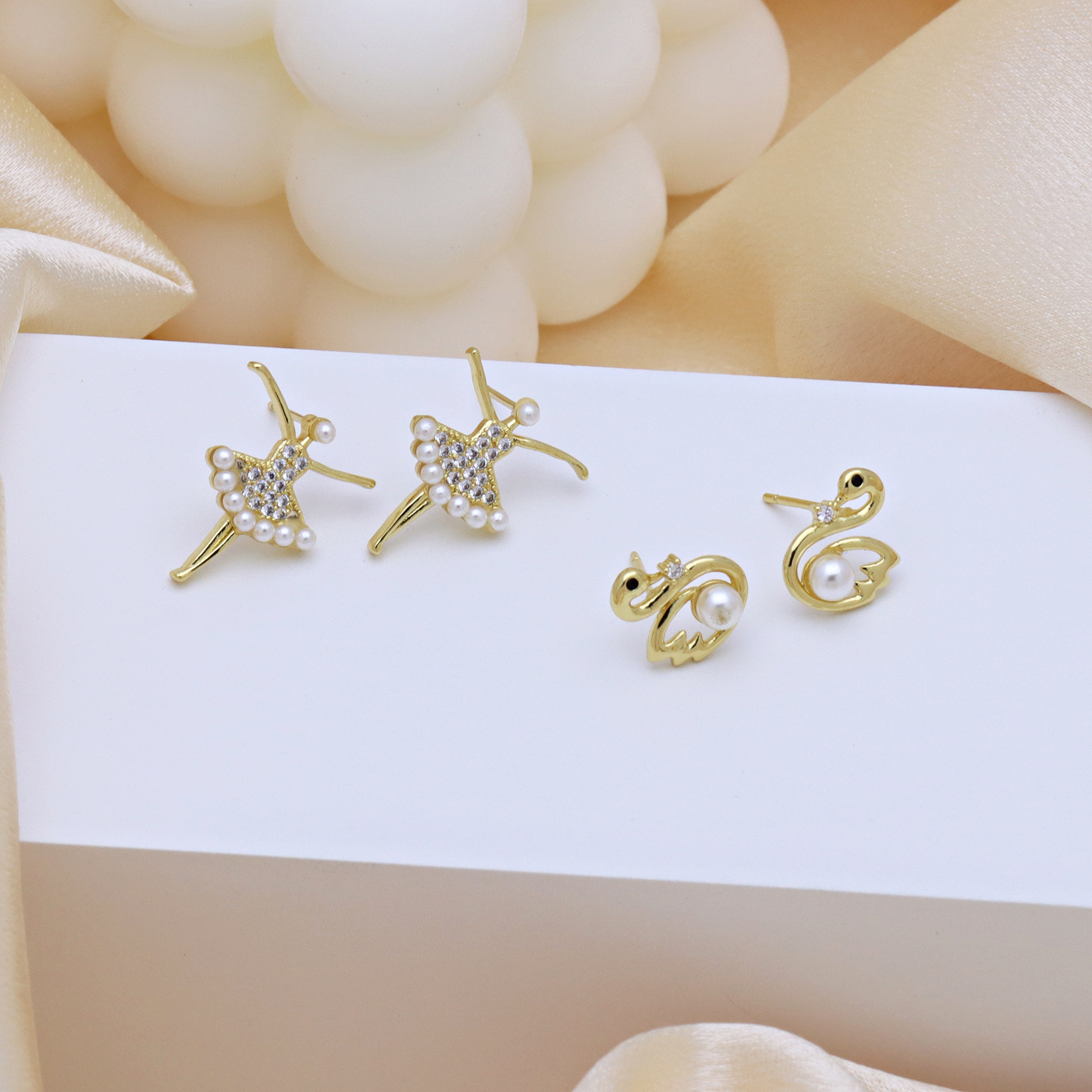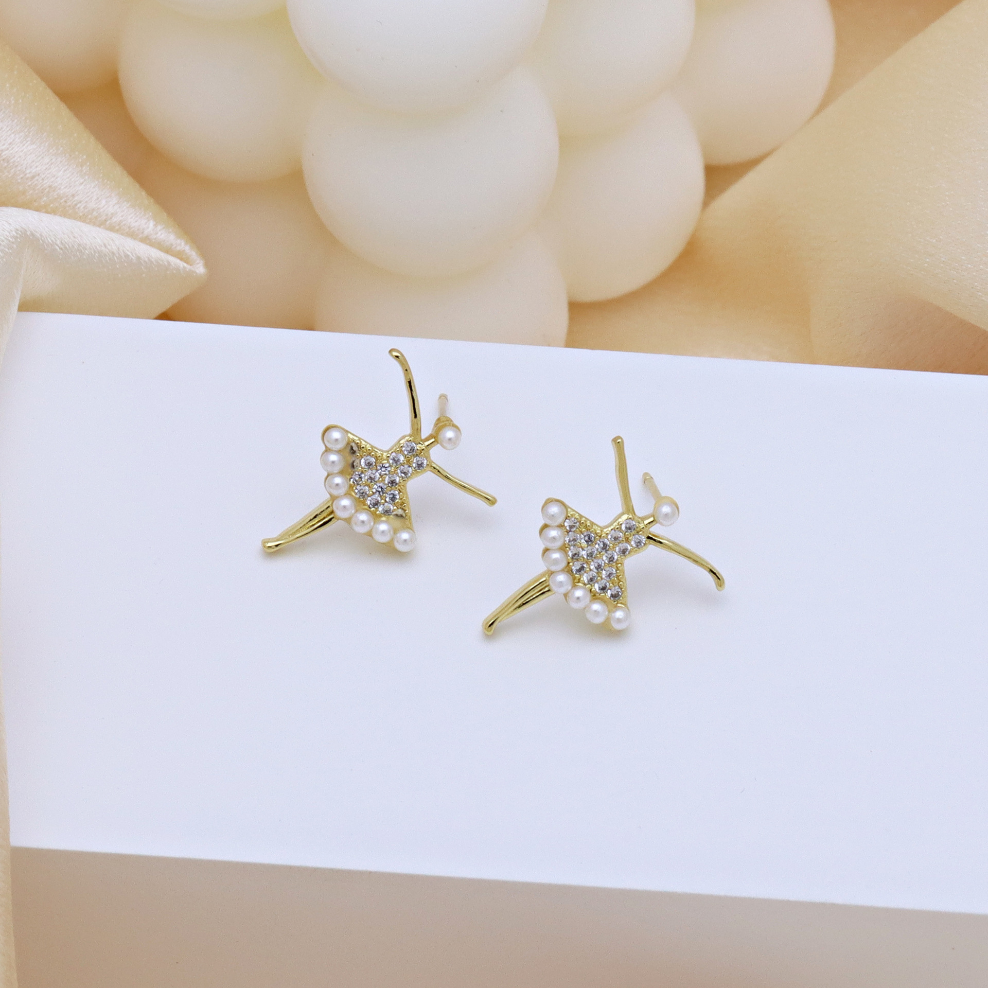 Cubic Zirconia Micro Pave Brass Earring, with Plastic Pearl, gold color plated, different styles for choice & micro pave cubic zirconia & for woman, more colors for choice, Sold By Pair