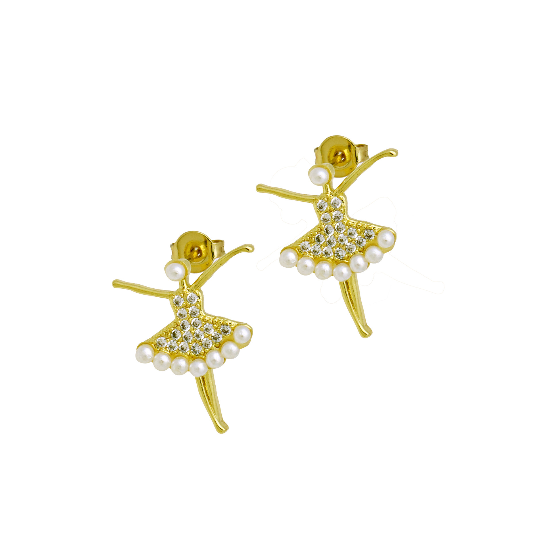 Cubic Zirconia Micro Pave Brass Earring, with Plastic Pearl, real gold plated