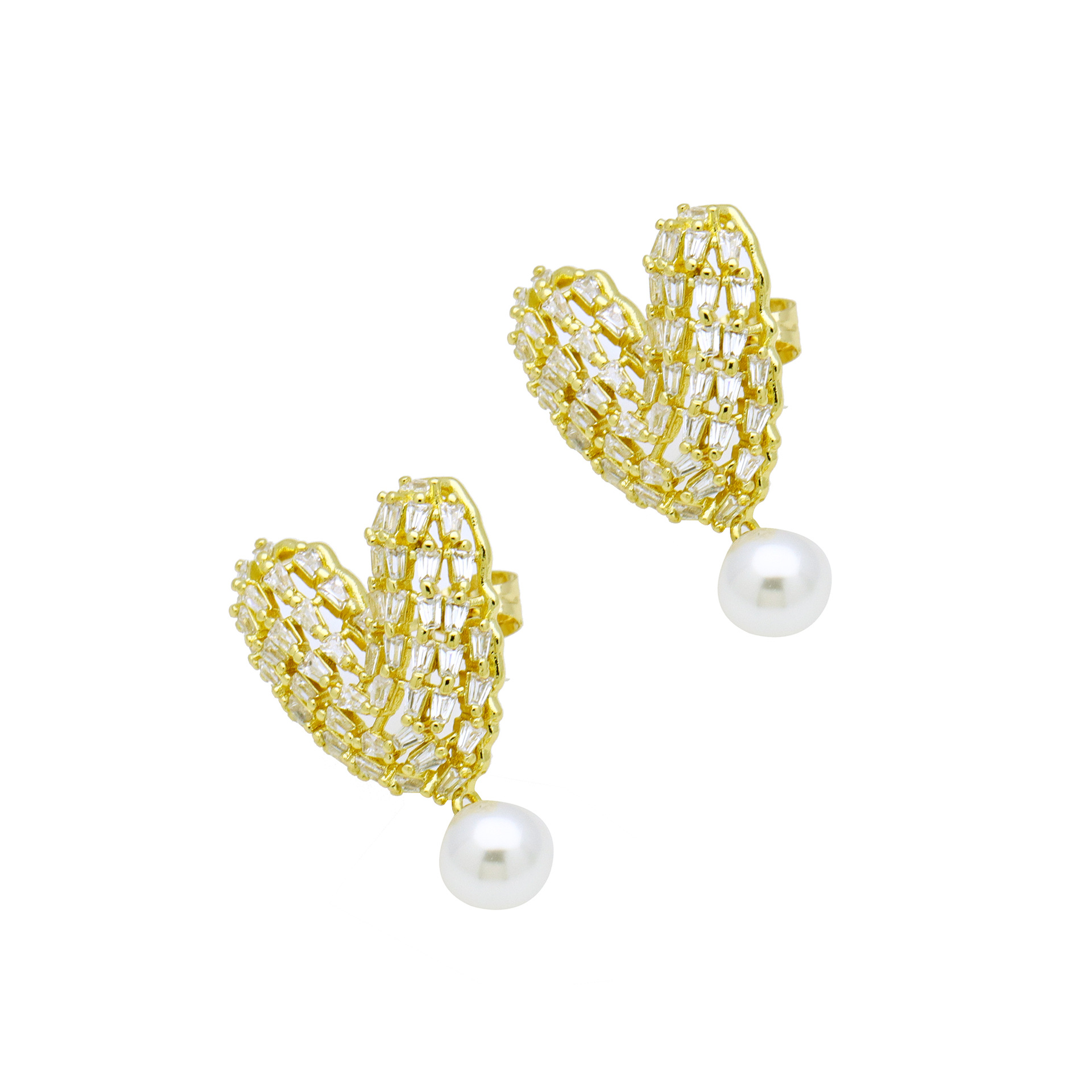 Cubic Zirconia Micro Pave Brass Earring, with Plastic Pearl, gold color plated, different styles for choice & for woman & with cubic zirconia, more colors for choice, Sold By Pair