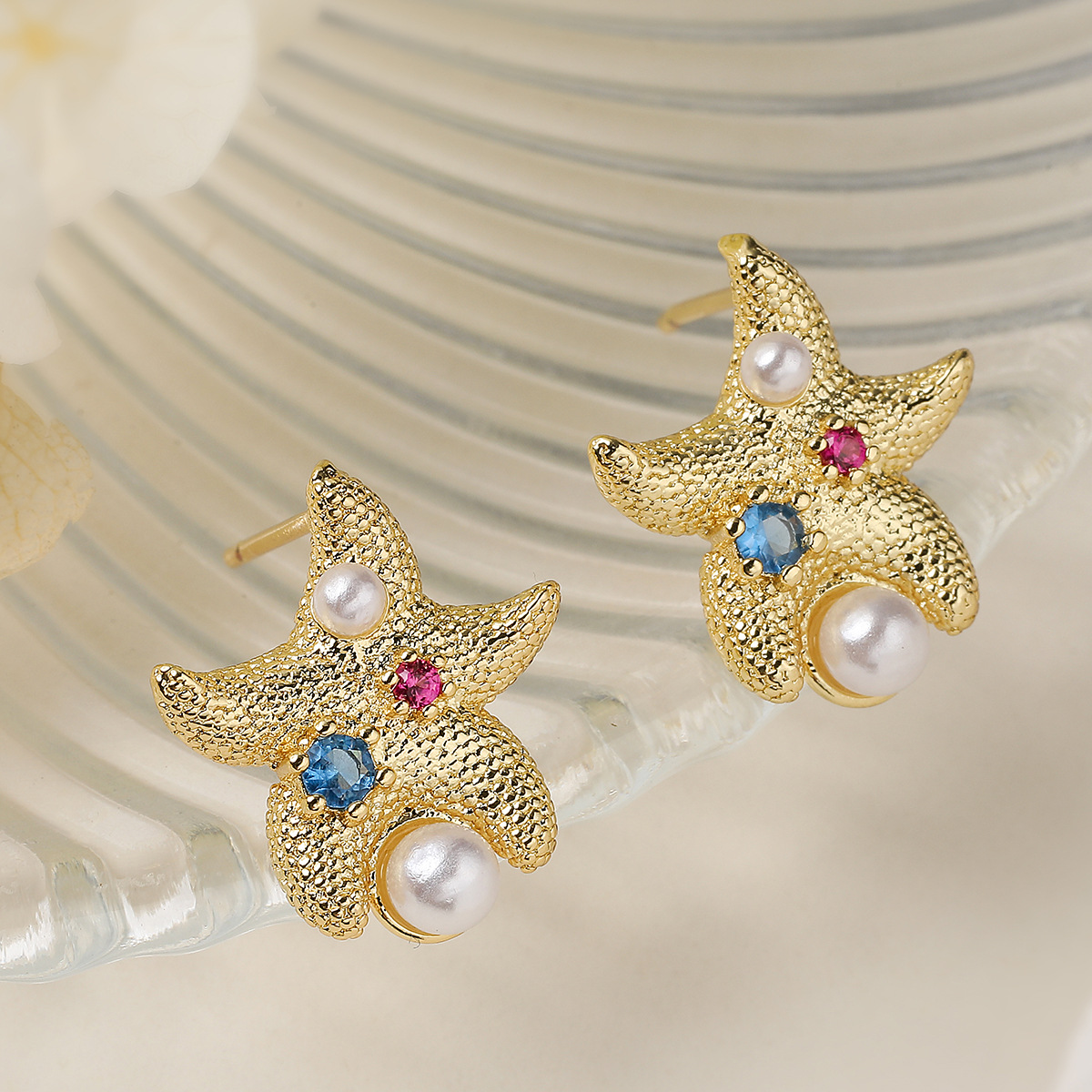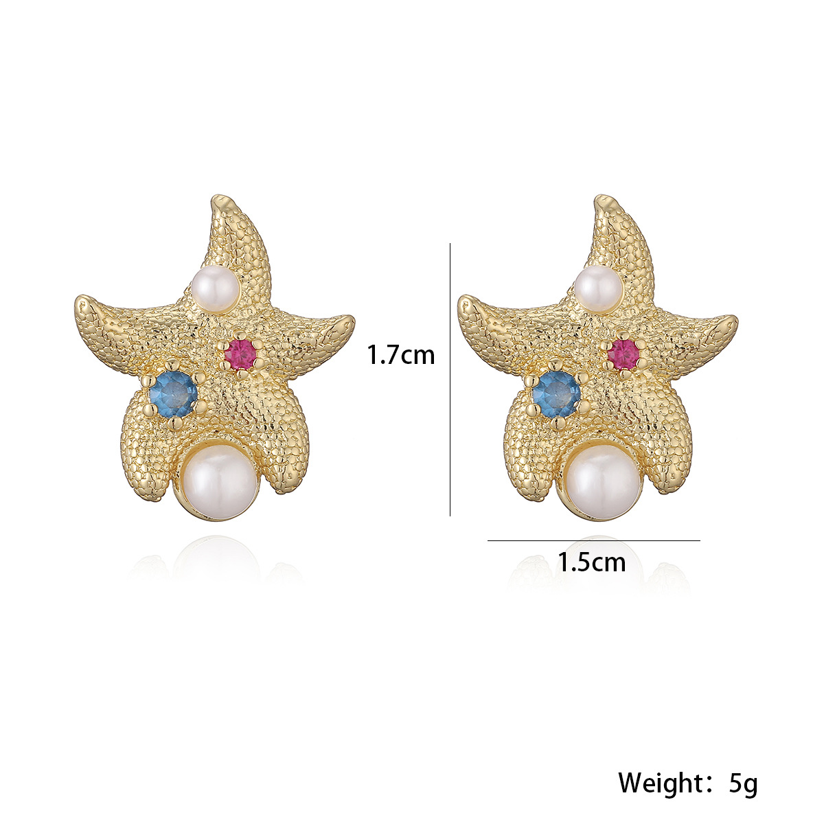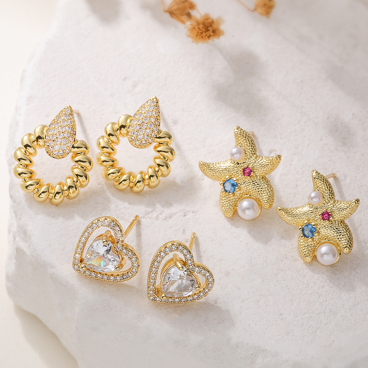Cubic Zirconia Micro Pave Brass Earring, Star, gold color plated