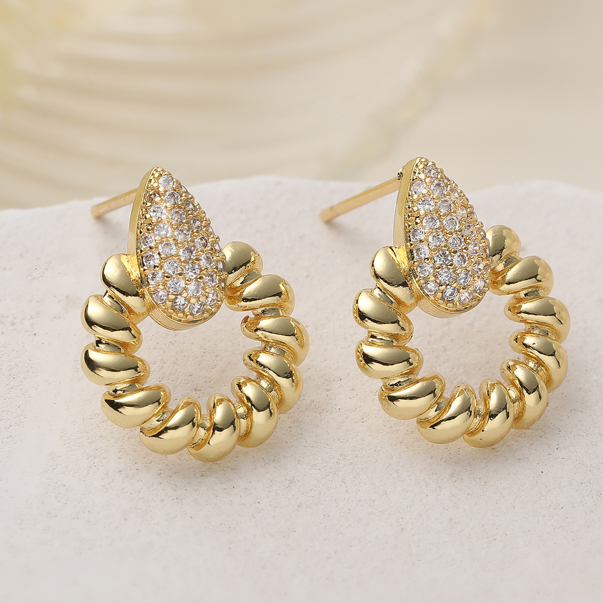 Cubic Zirconia Micro Pave Brass Earring, gold color plated, micro pave cubic zirconia & for woman
