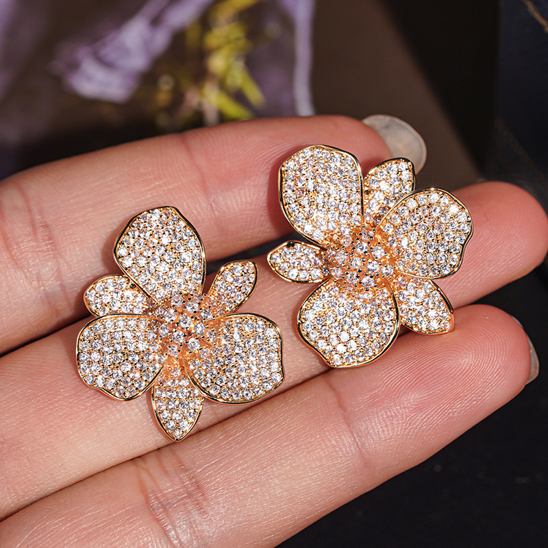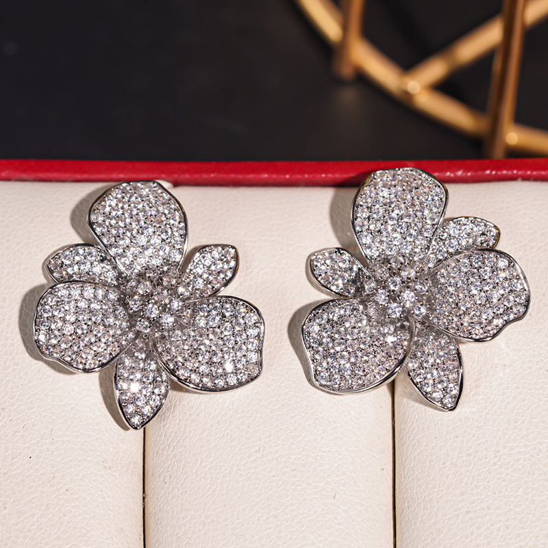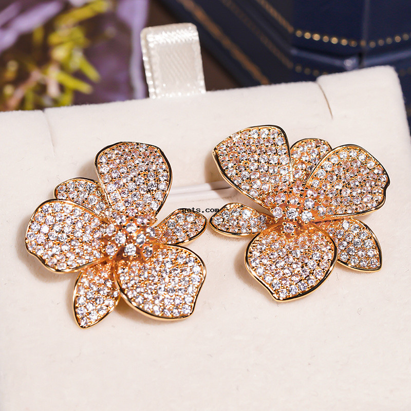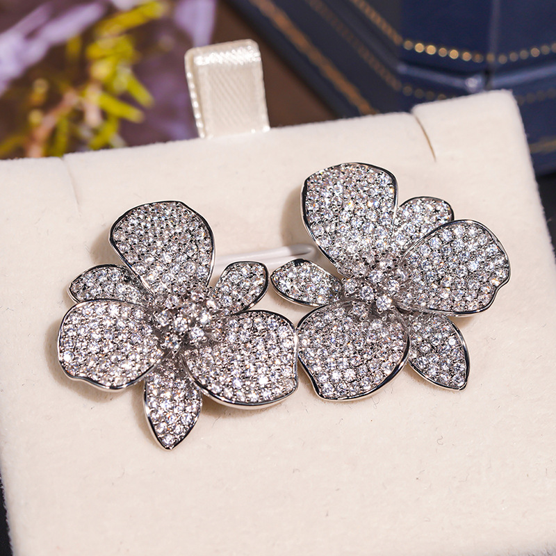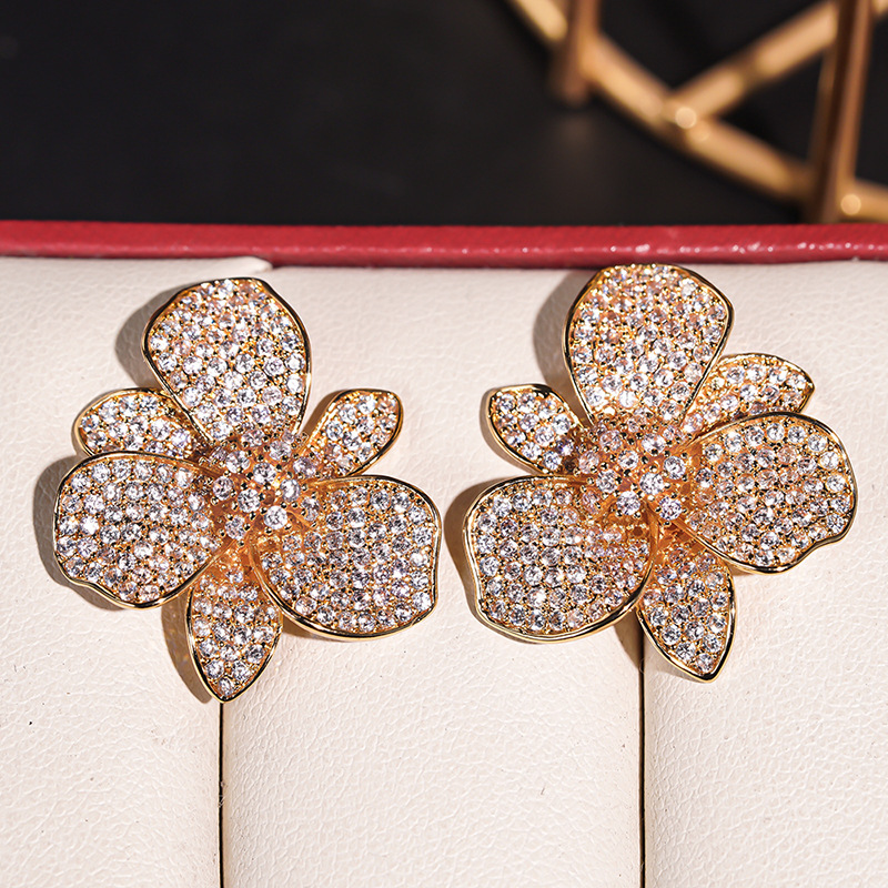 Cubic Zirconia Micro Pave Brass Earring, Lily, plated, fashion jewelry & micro pave cubic zirconia & for woman, Sold By Pair