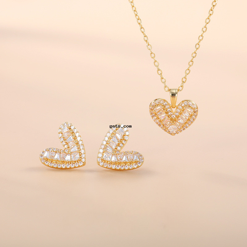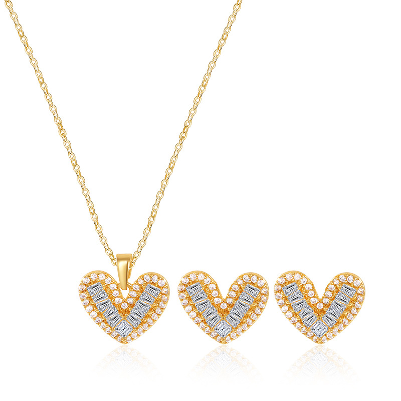 - Brass Jewelry Set, Stud Earring & necklace, Heart