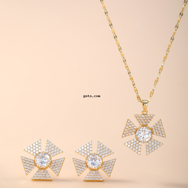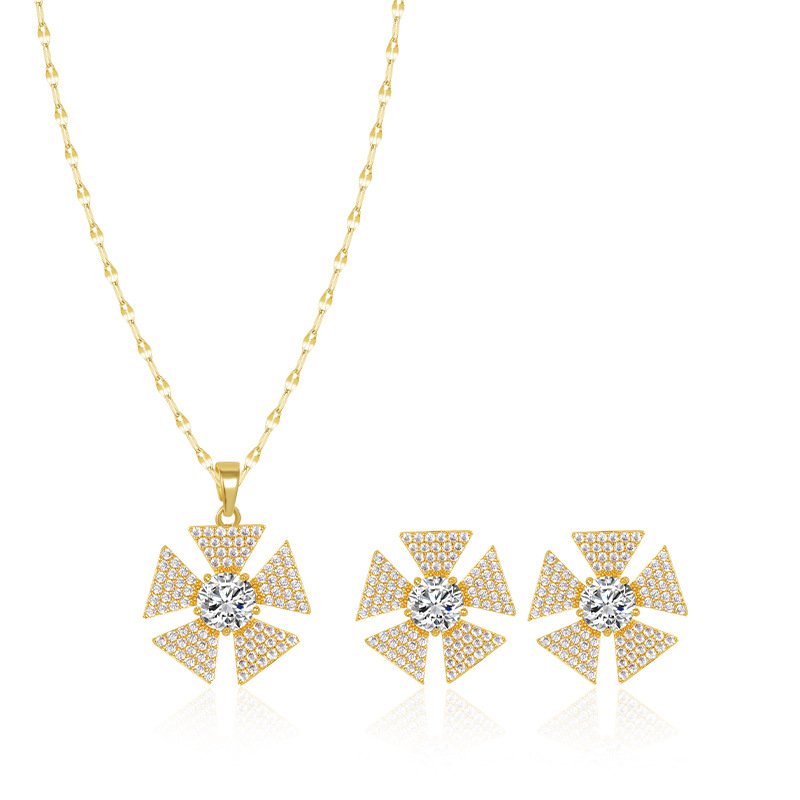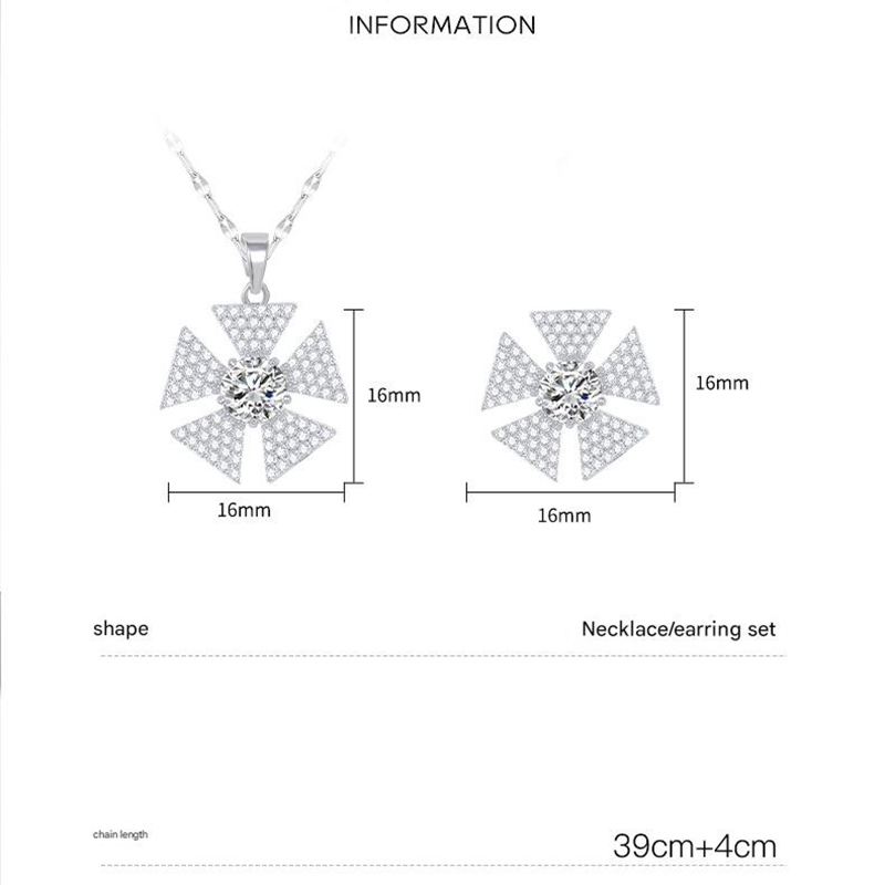 Brass Jewelry Set, Stud Earring & necklace, Pinwheel, plated, 2 pieces & micro pave cubic zirconia & for woman, more colors for choice, Sold By Set