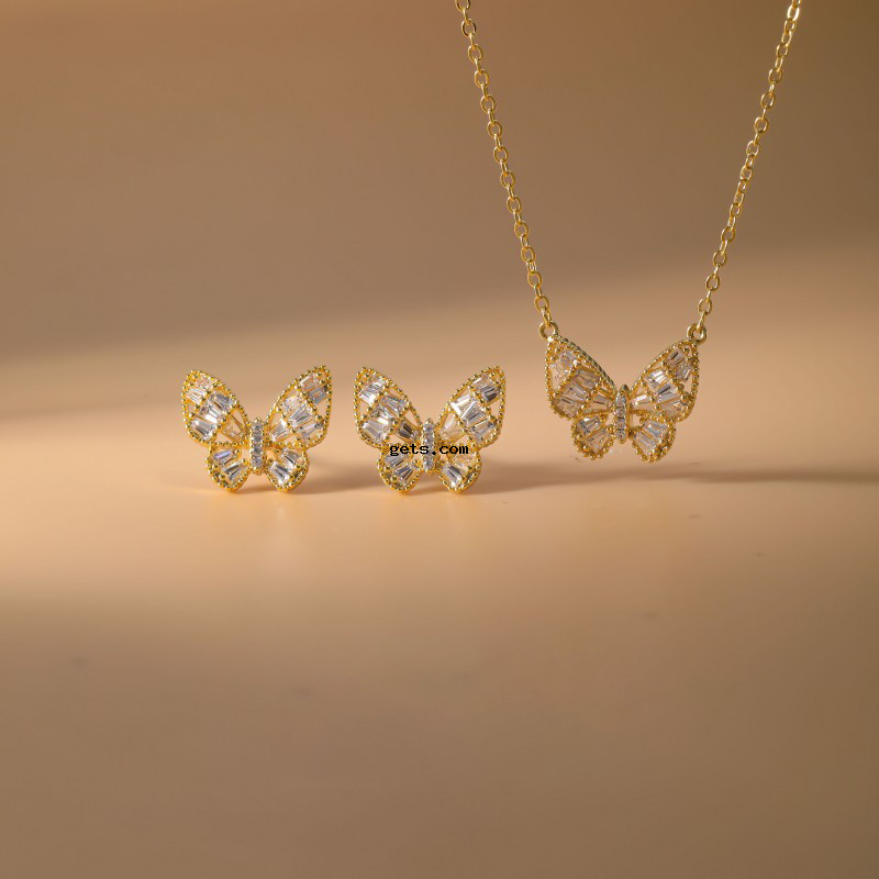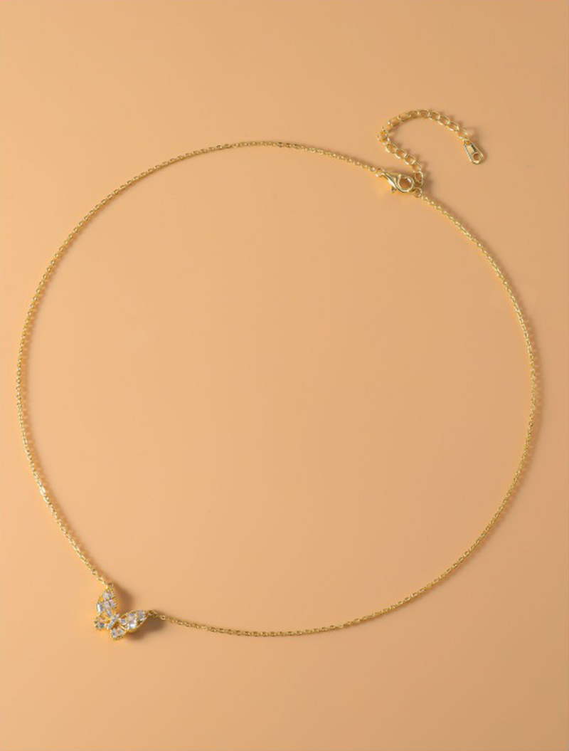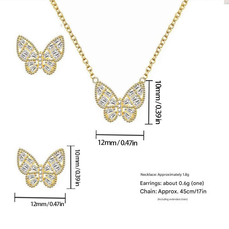 Brass Jewelry Set, Stud Earring & necklace, Butterfly, plated, 2 pieces & micro pave cubic zirconia & for woman, more colors for choice, Sold By Set