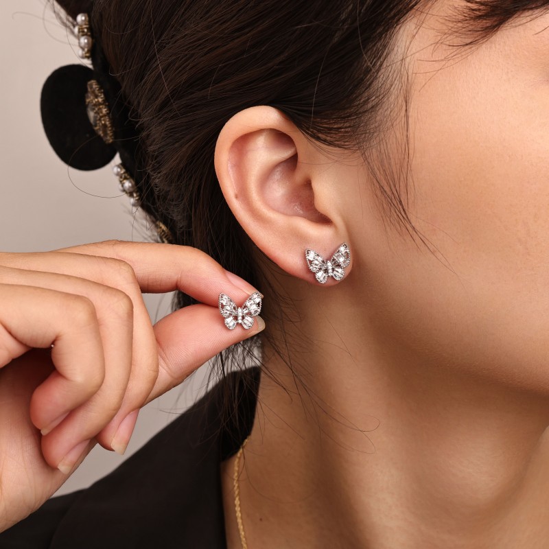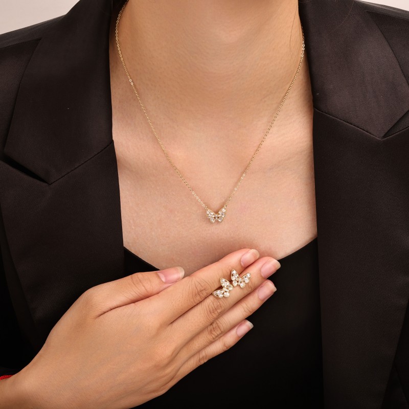 Cubic Zirconia Micro Pave Brass Jewelry Sets, finger ring & earring, Butterfly