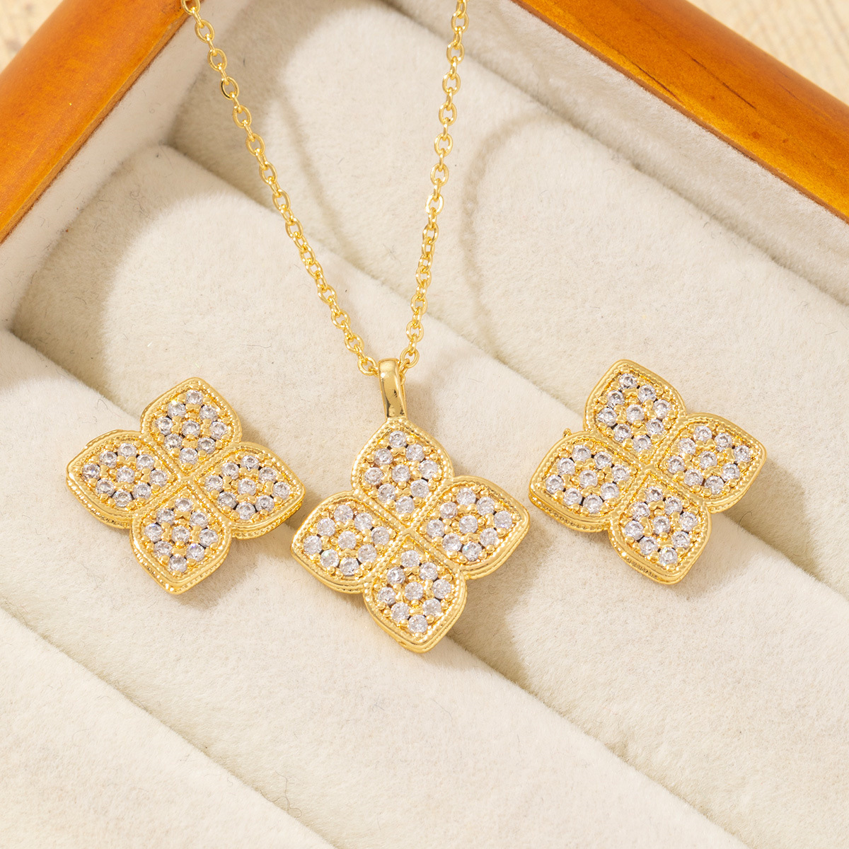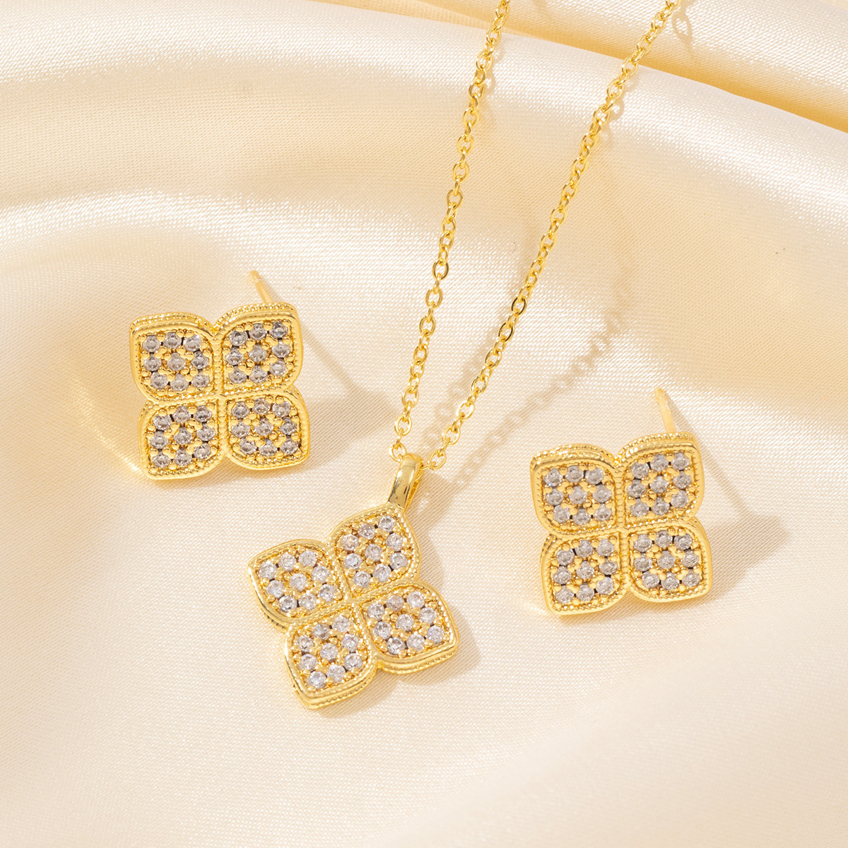 - Brass Jewelry Set, Stud Earring & necklace, plated