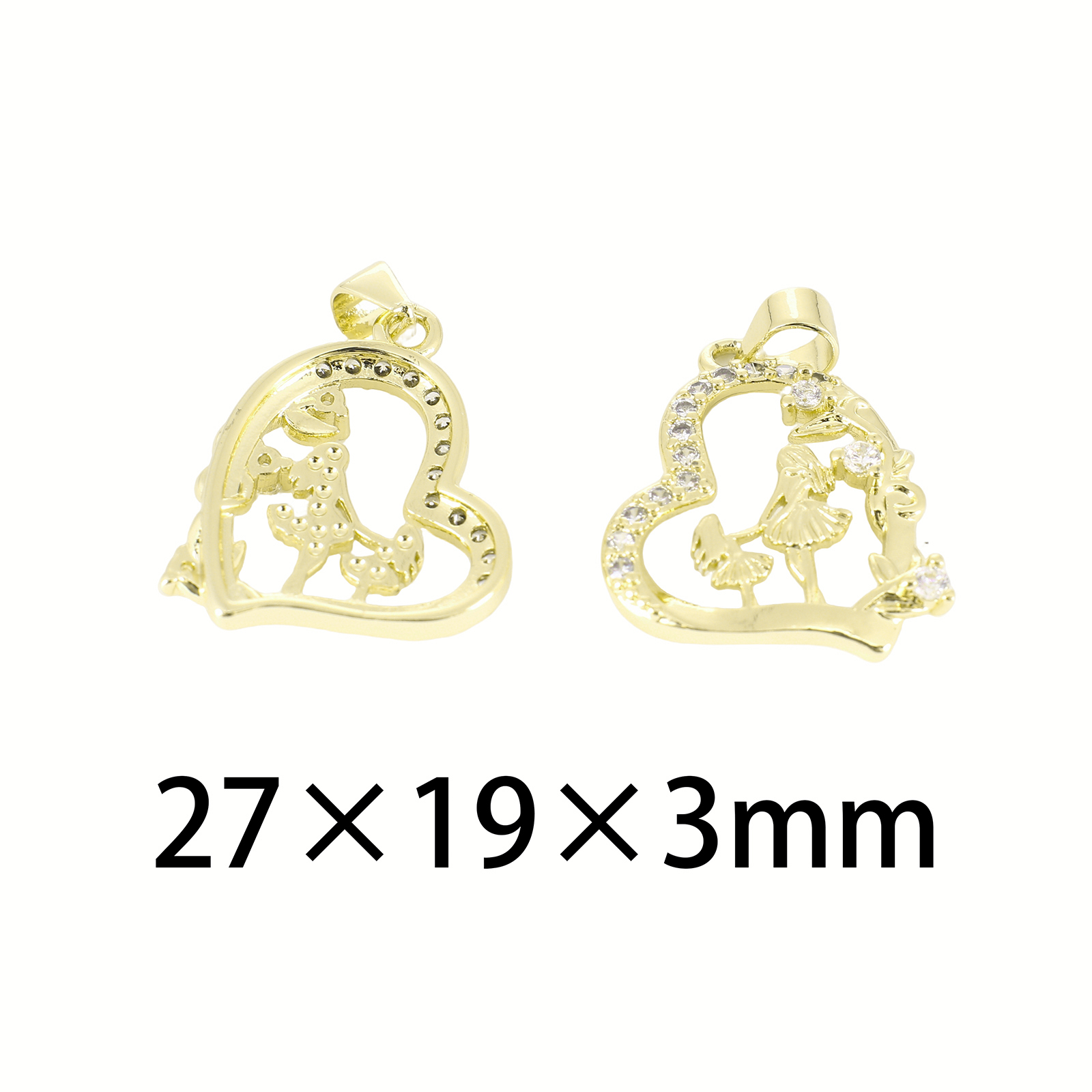 Cubic Zirconia Micro Pave Brass Pendant, Heart, gold color plated, DIY & micro pave cubic zirconia & hollow, 27x19x3mm, Sold By PC