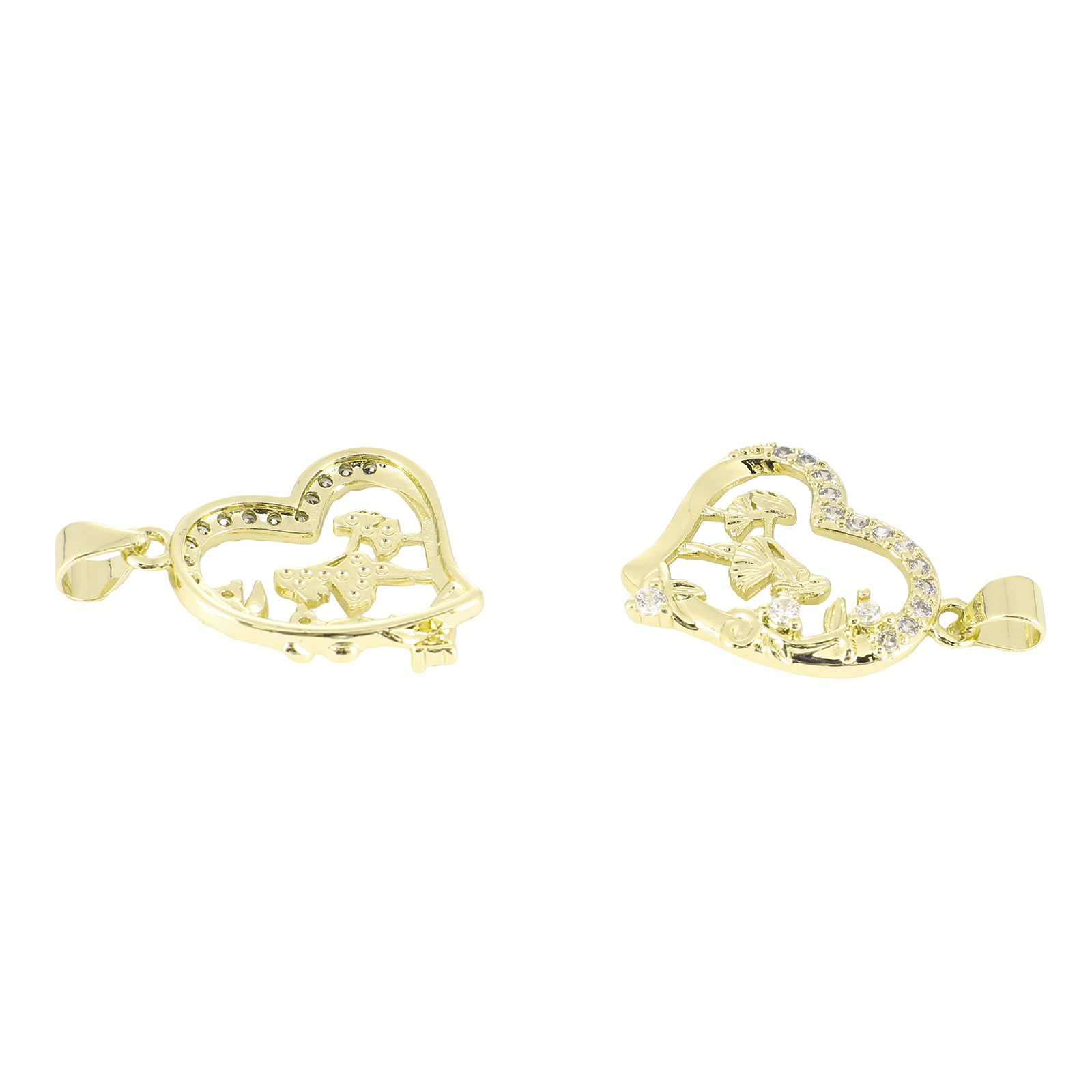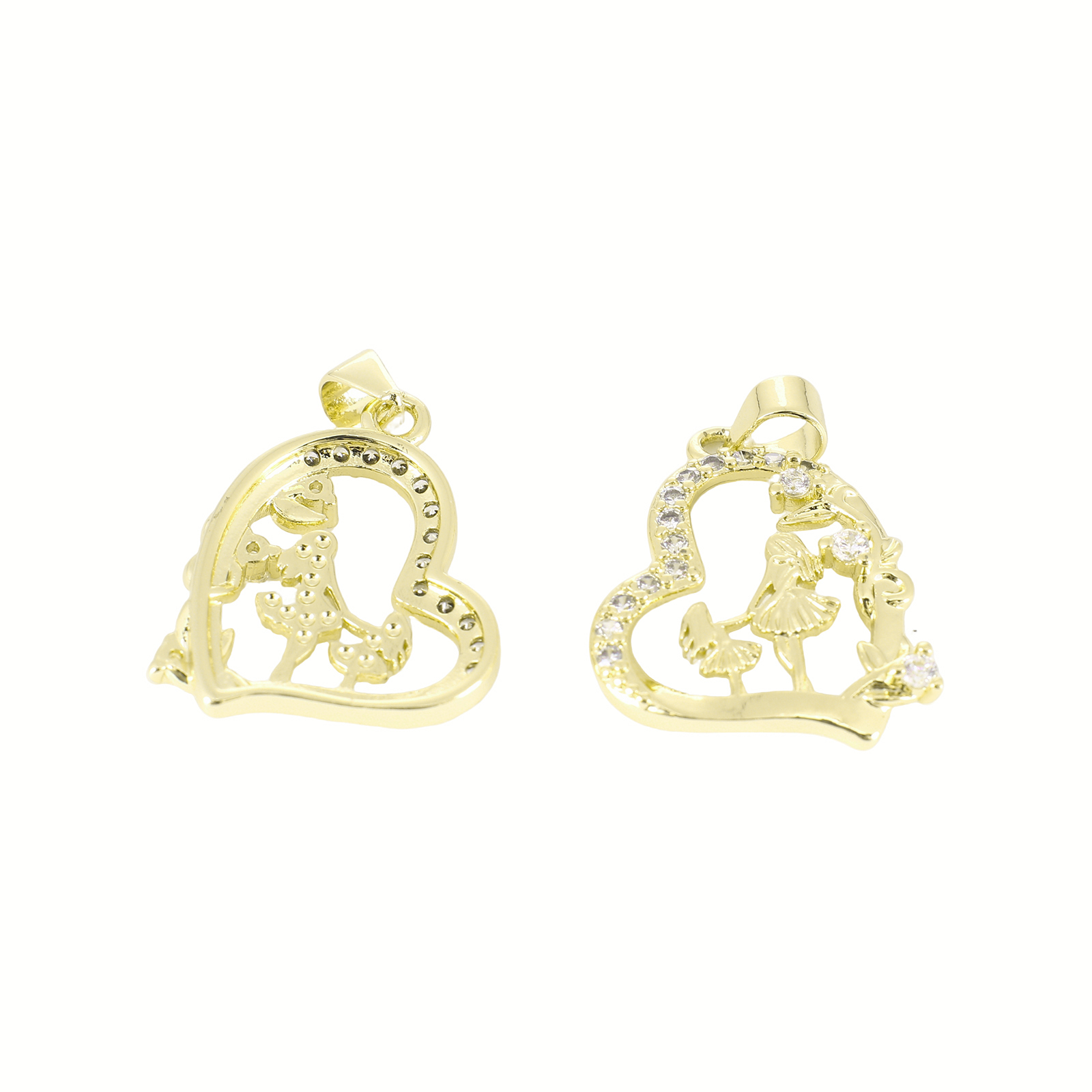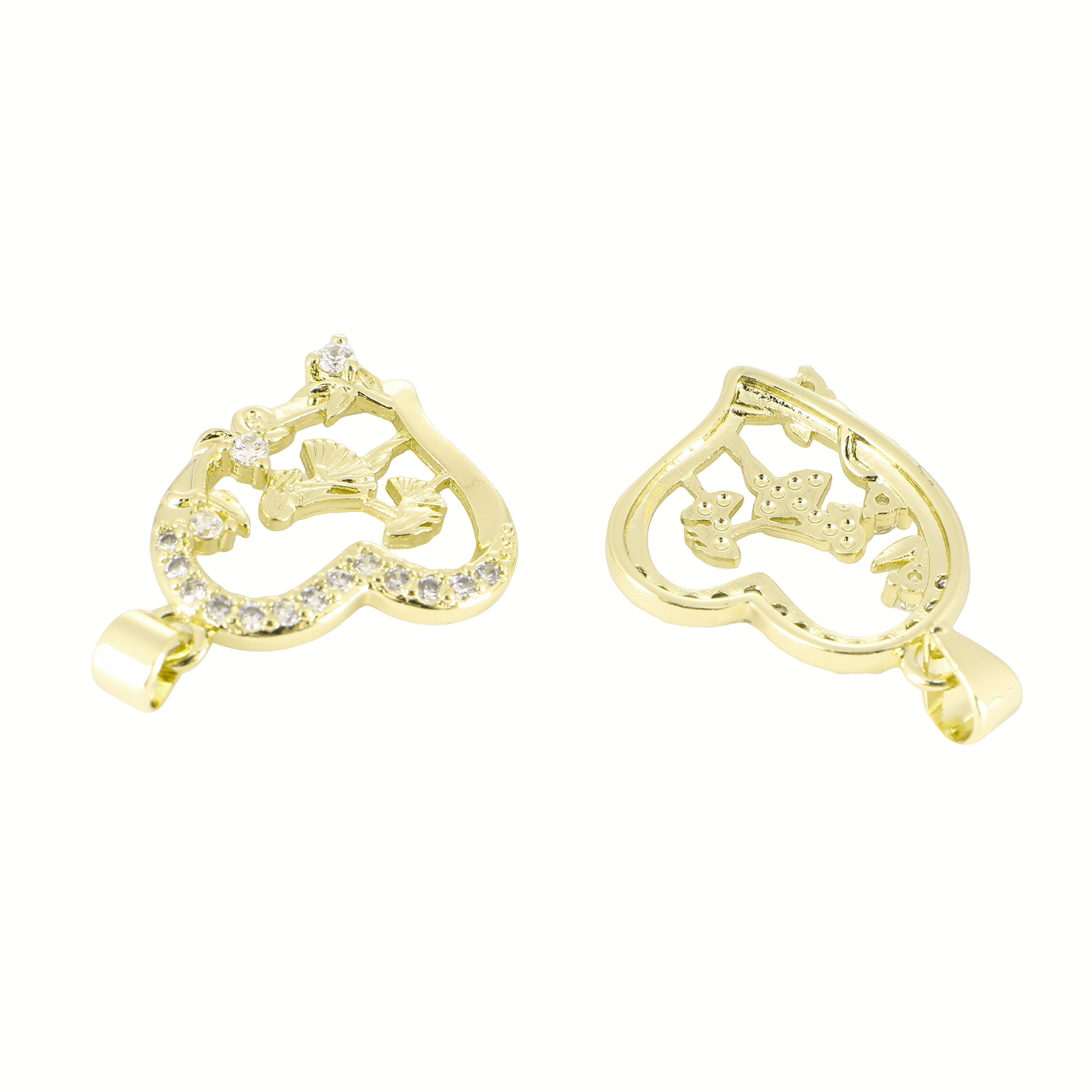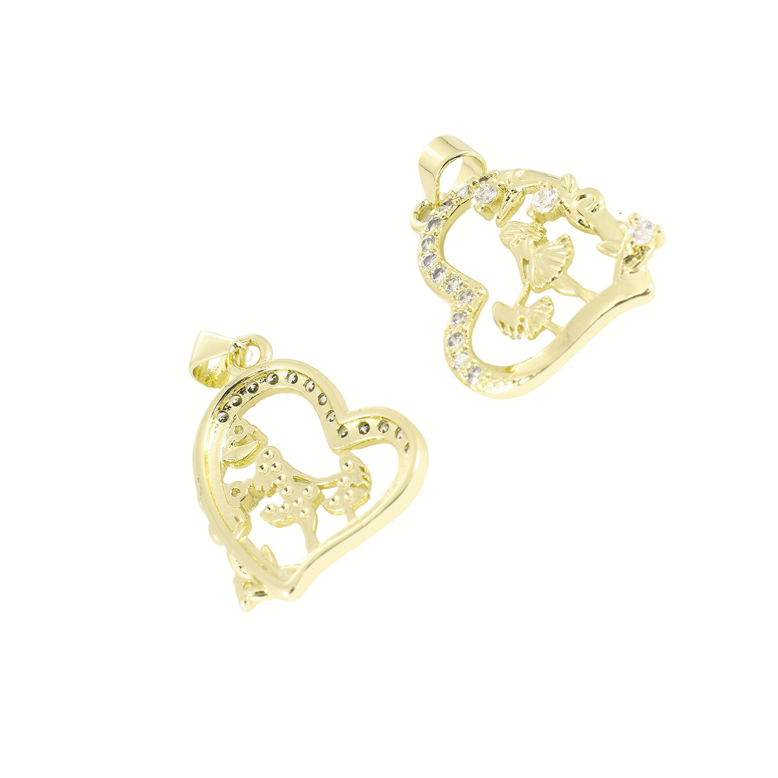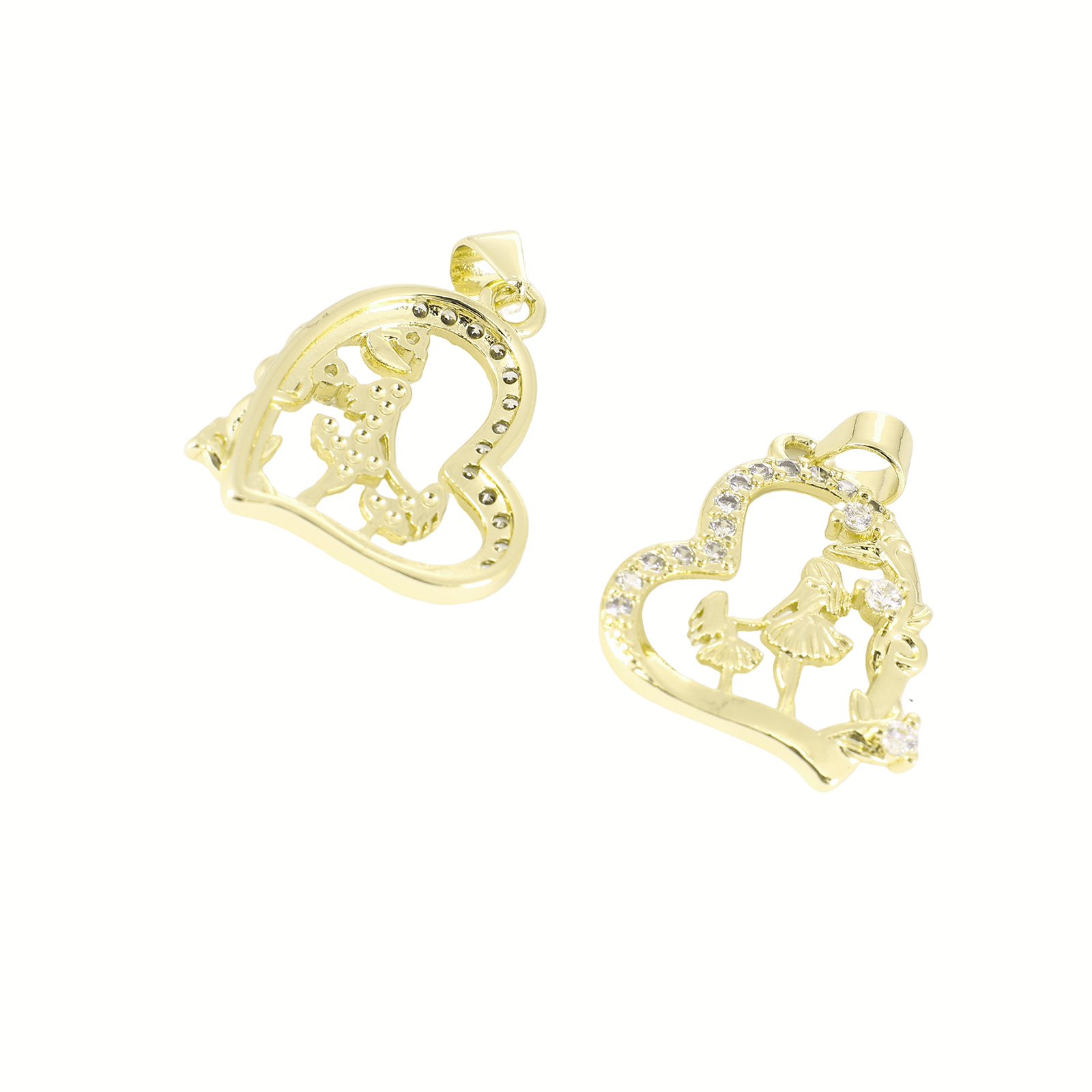 Cubic Zirconia Micro Pave Brass Pendant, Heart, gold color plated