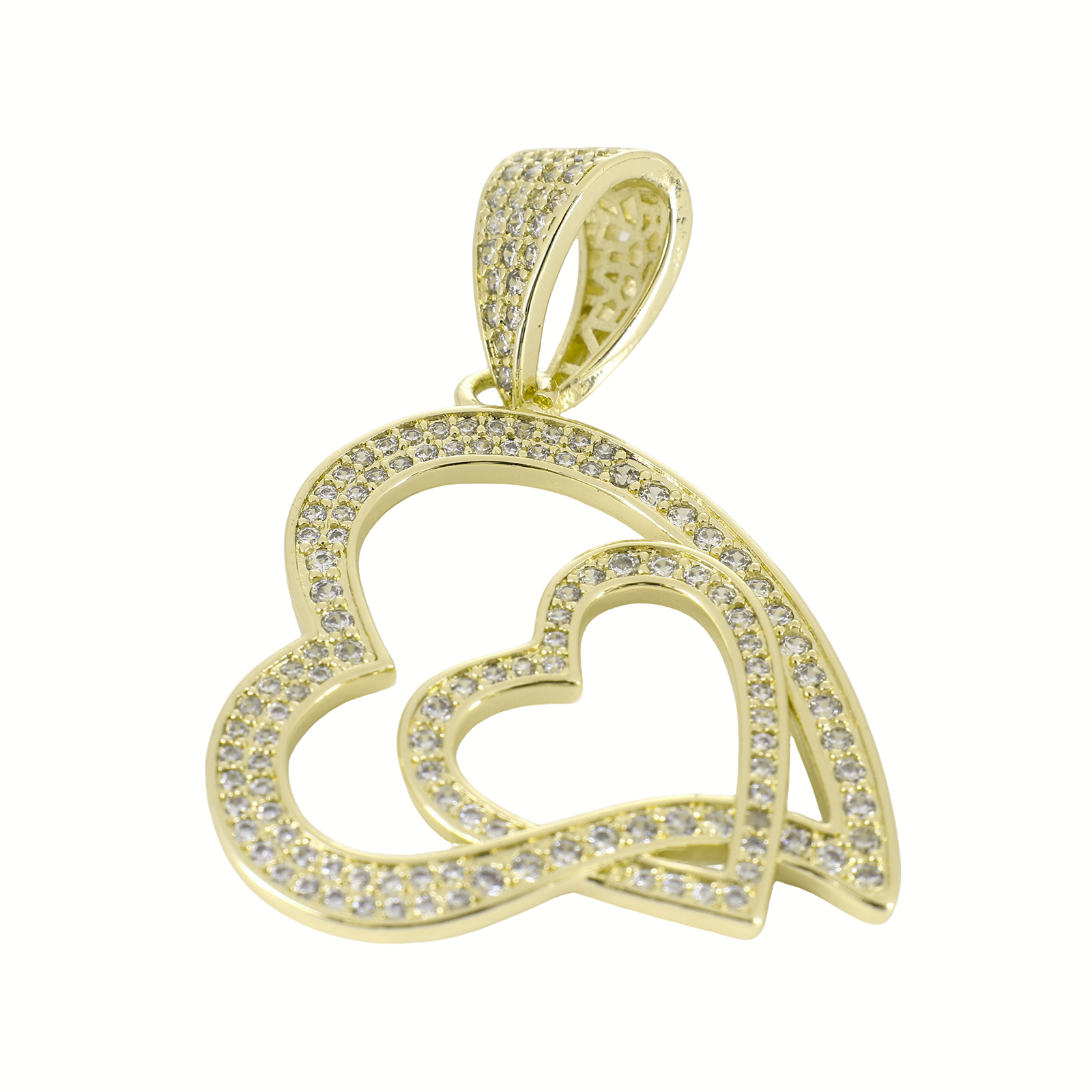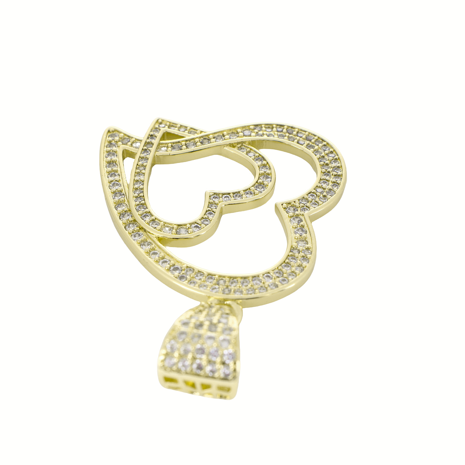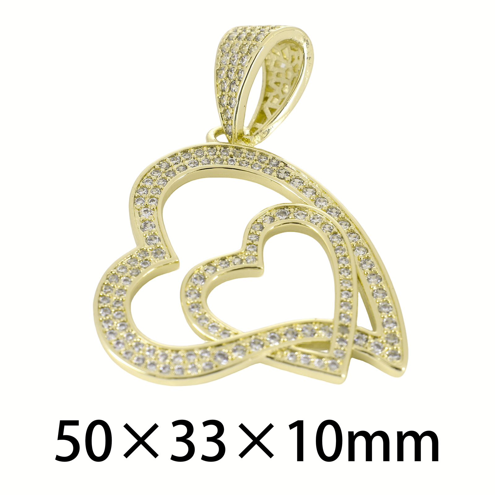 Cubic Zirconia Micro Pave Brass Pendant, Heart, gold color plated, DIY & micro pave cubic zirconia & hollow, 50x33x10mm, Sold By PC