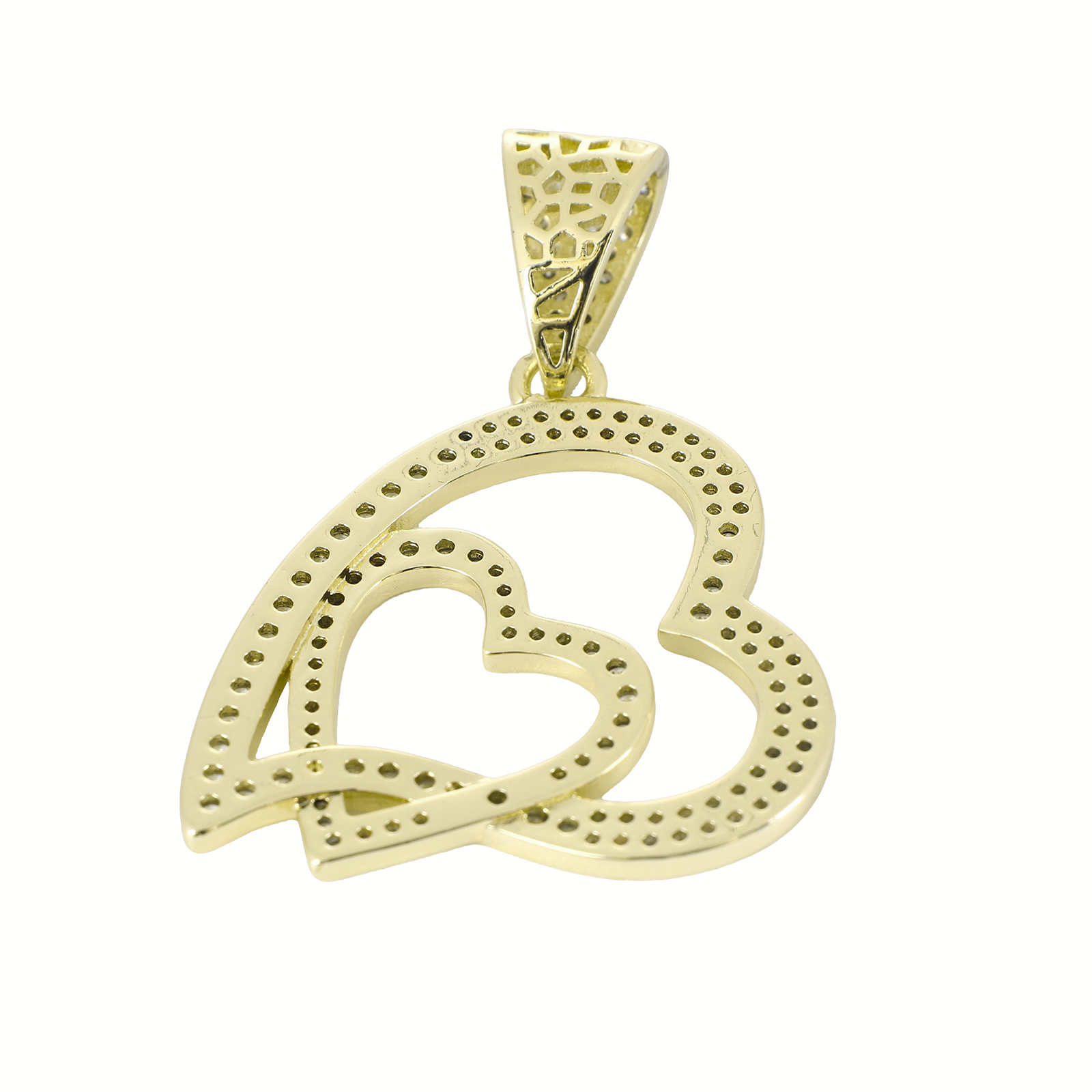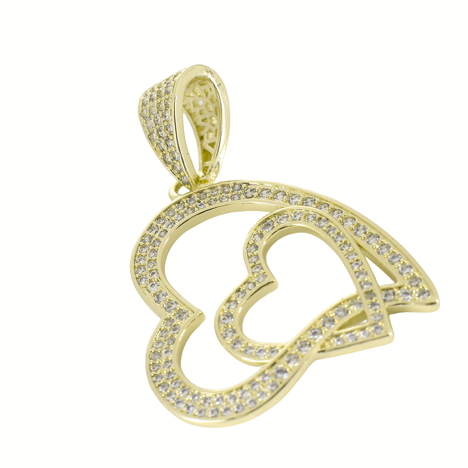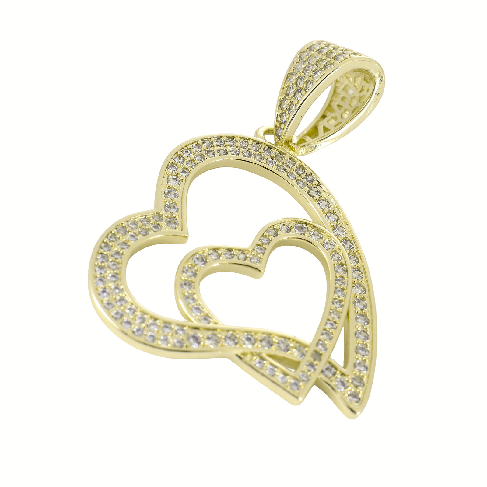 Cubic Zirconia Micro Pave Brass Pendant, Heart, gold color plated, DIY & micro pave cubic zirconia & hollow, 50x33x10mm, Sold By PC