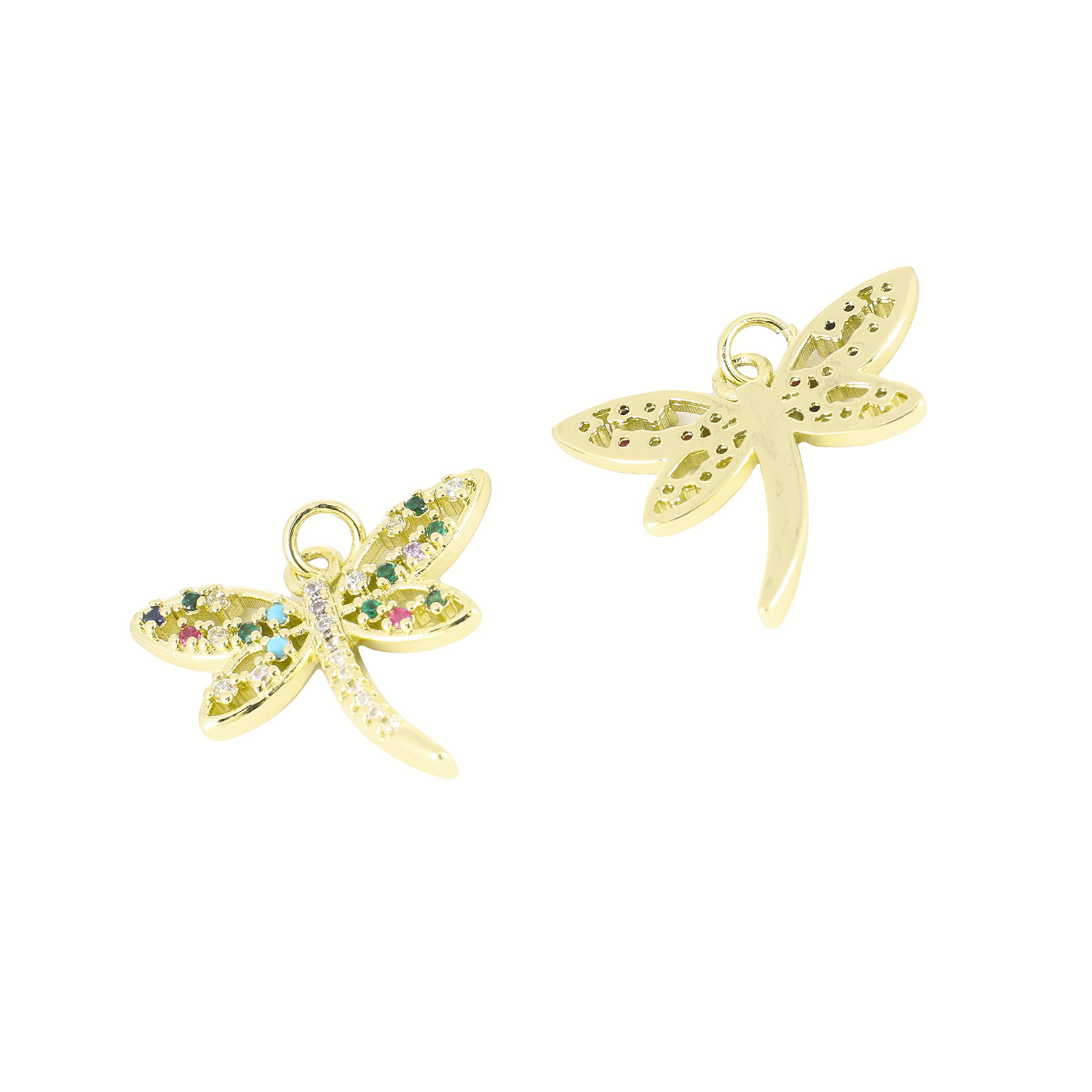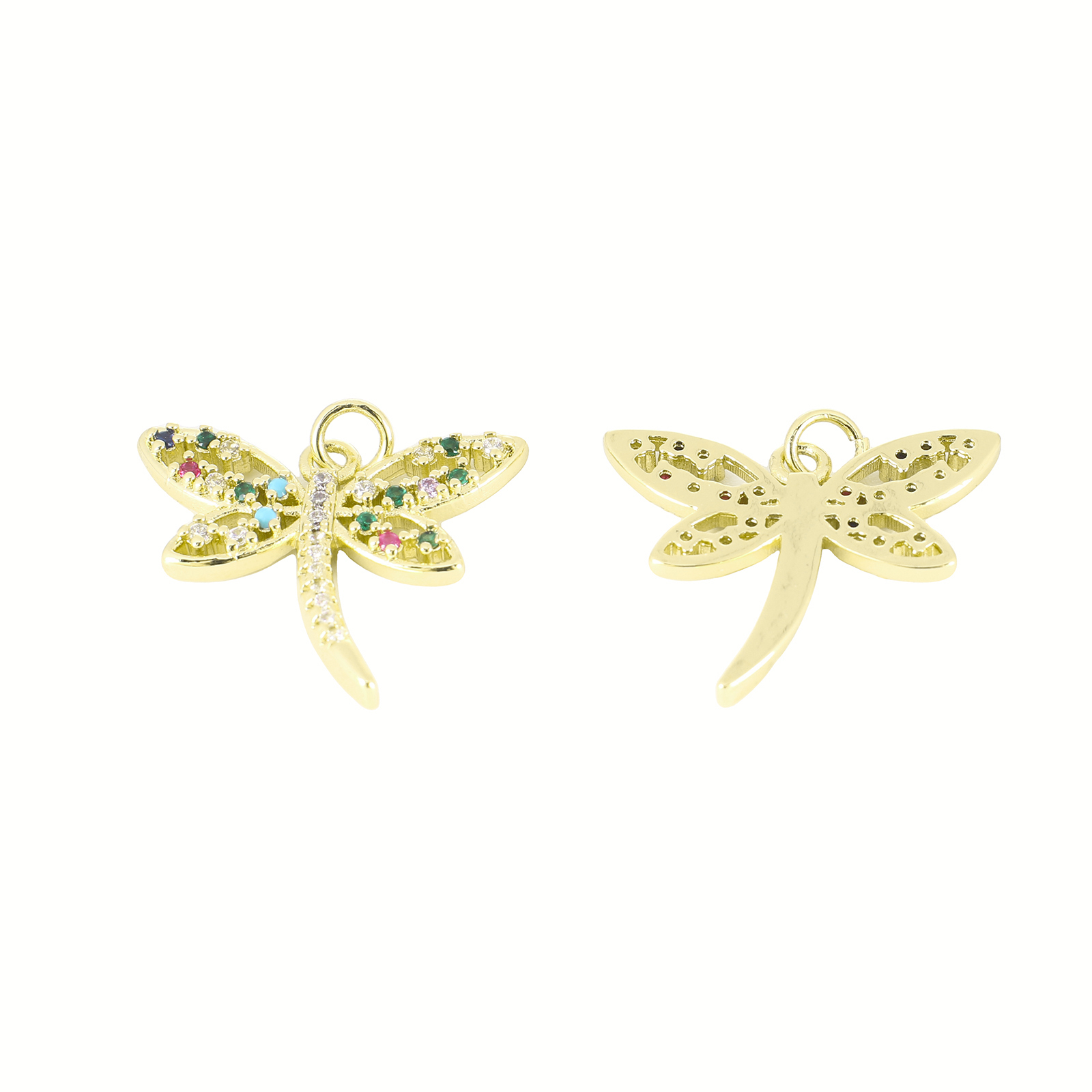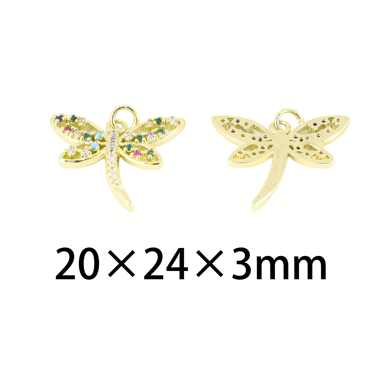 Cubic Zirconia Micro Pave Brass Pendant, Dragonfly, gold color plated, DIY & micro pave cubic zirconia, 20x24x3mm, Sold By PC