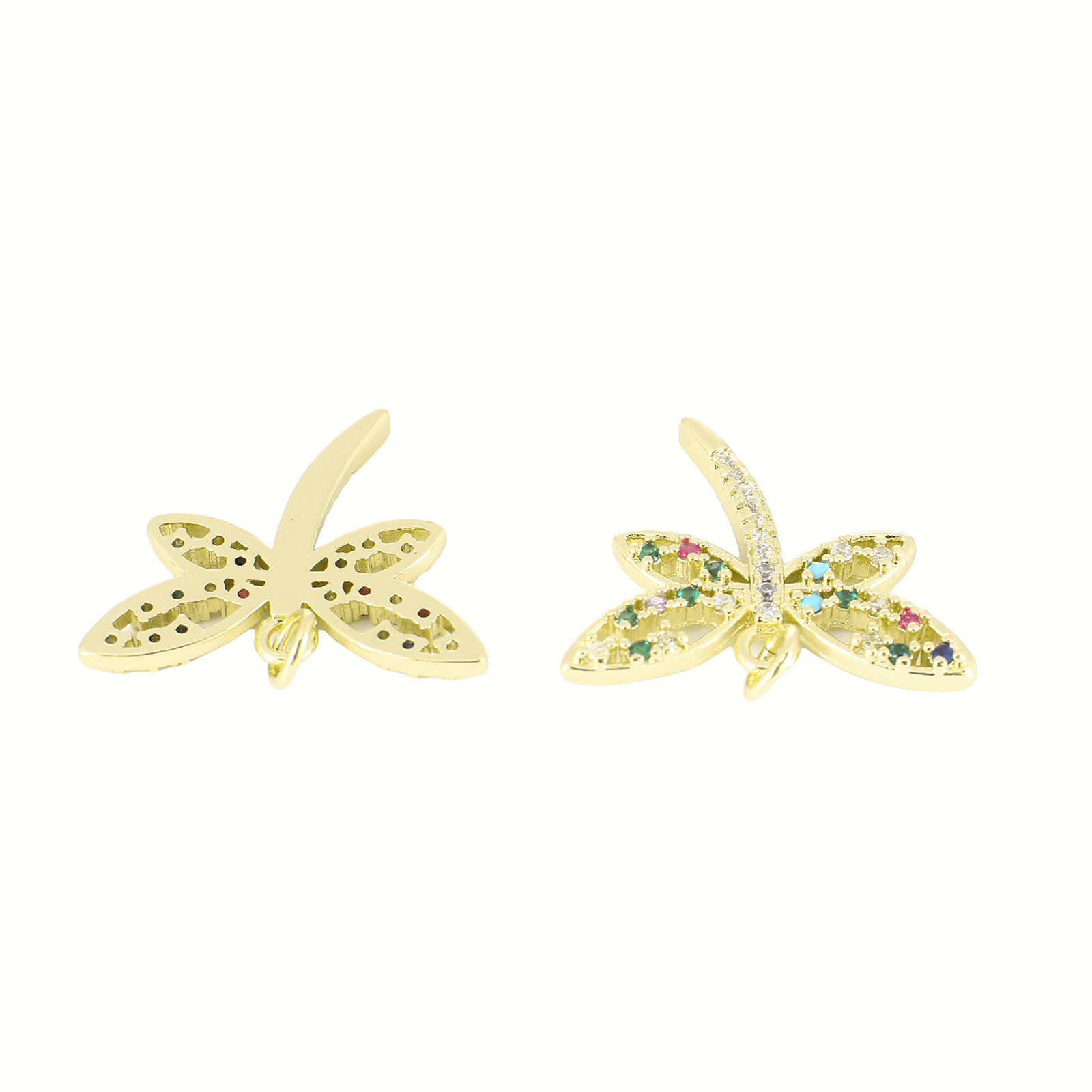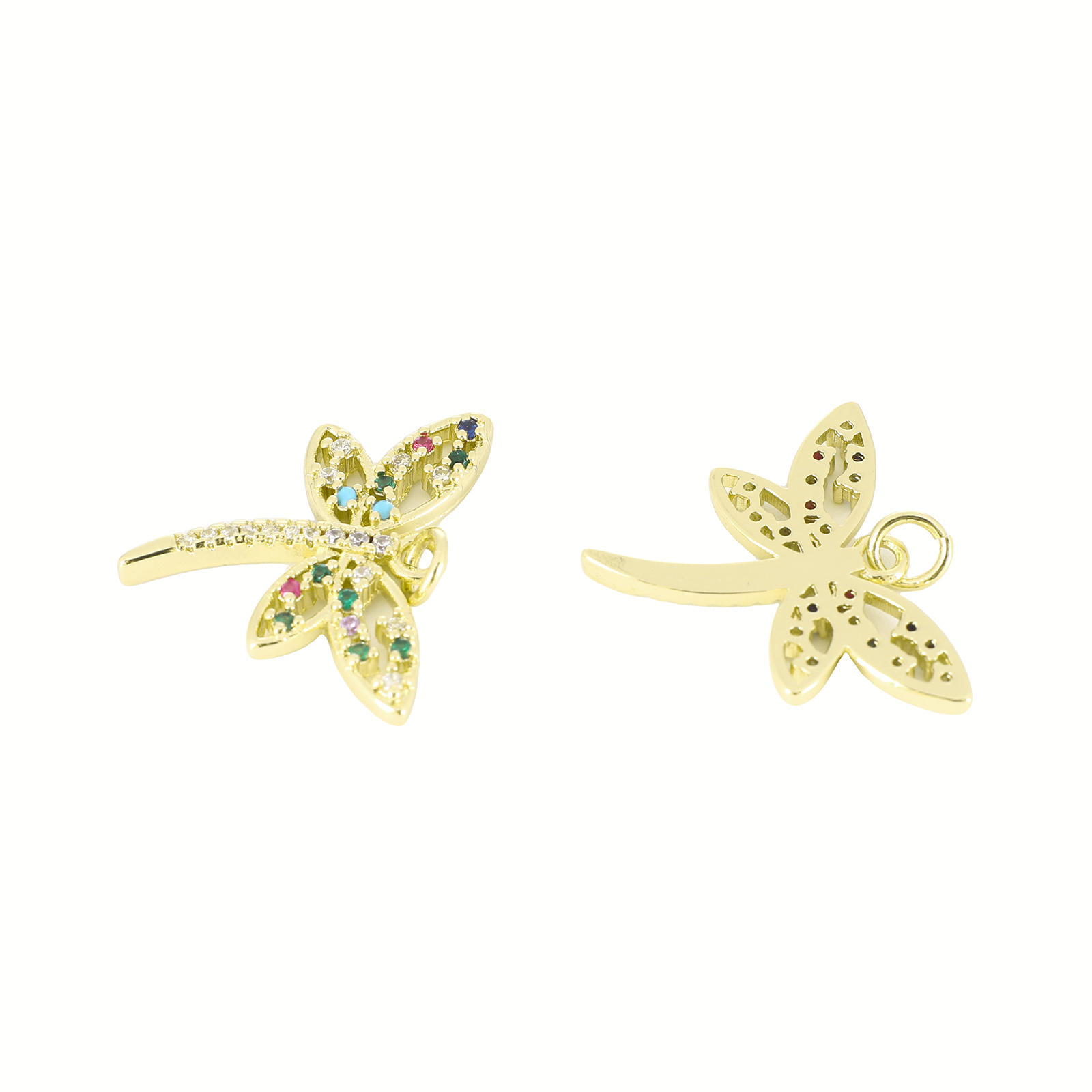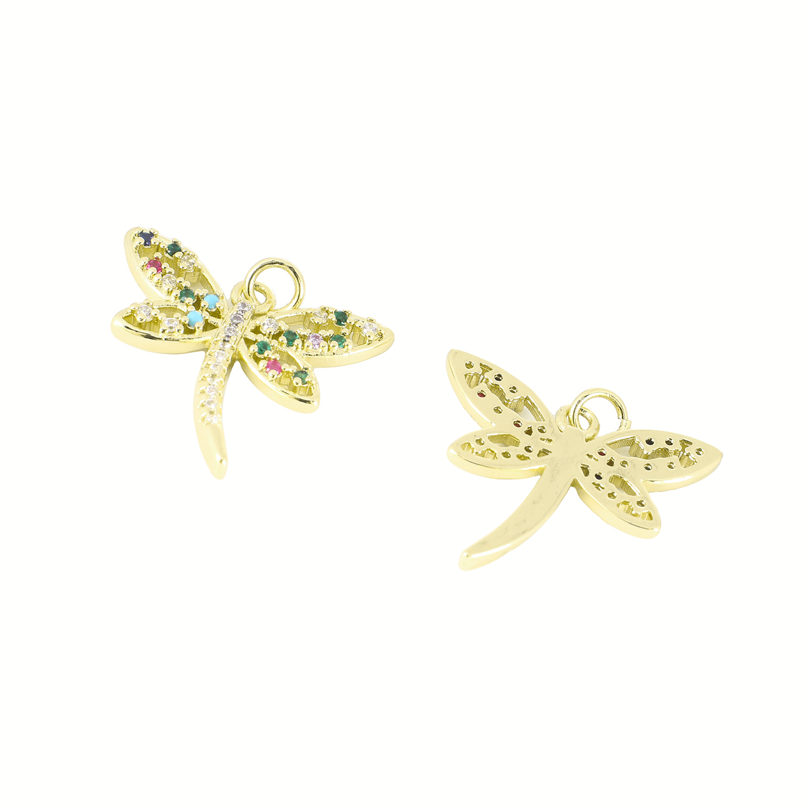 Cubic Zirconia Micro Pave Brass Pendant, Dragonfly, gold color plated, DIY & micro pave cubic zirconia, 20x24x3mm, Sold By PC