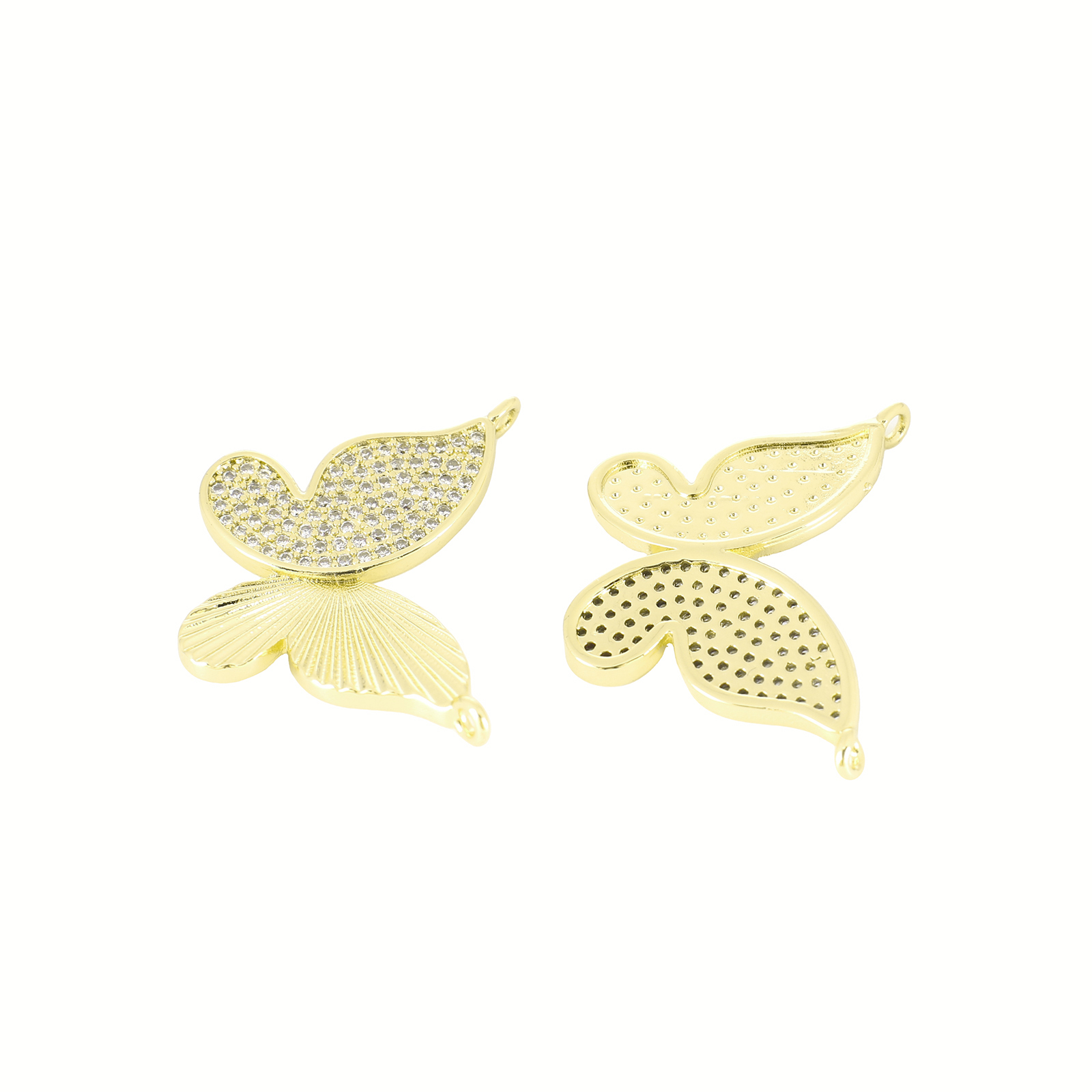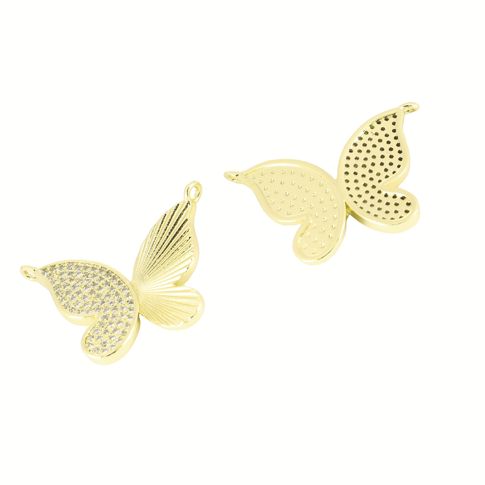 Cubic Zirconia Micro Pave Brass Pendant, Butterfly, gold color plated, DIY & micro pave cubic zirconia, 20x30x3mm, Sold By PC