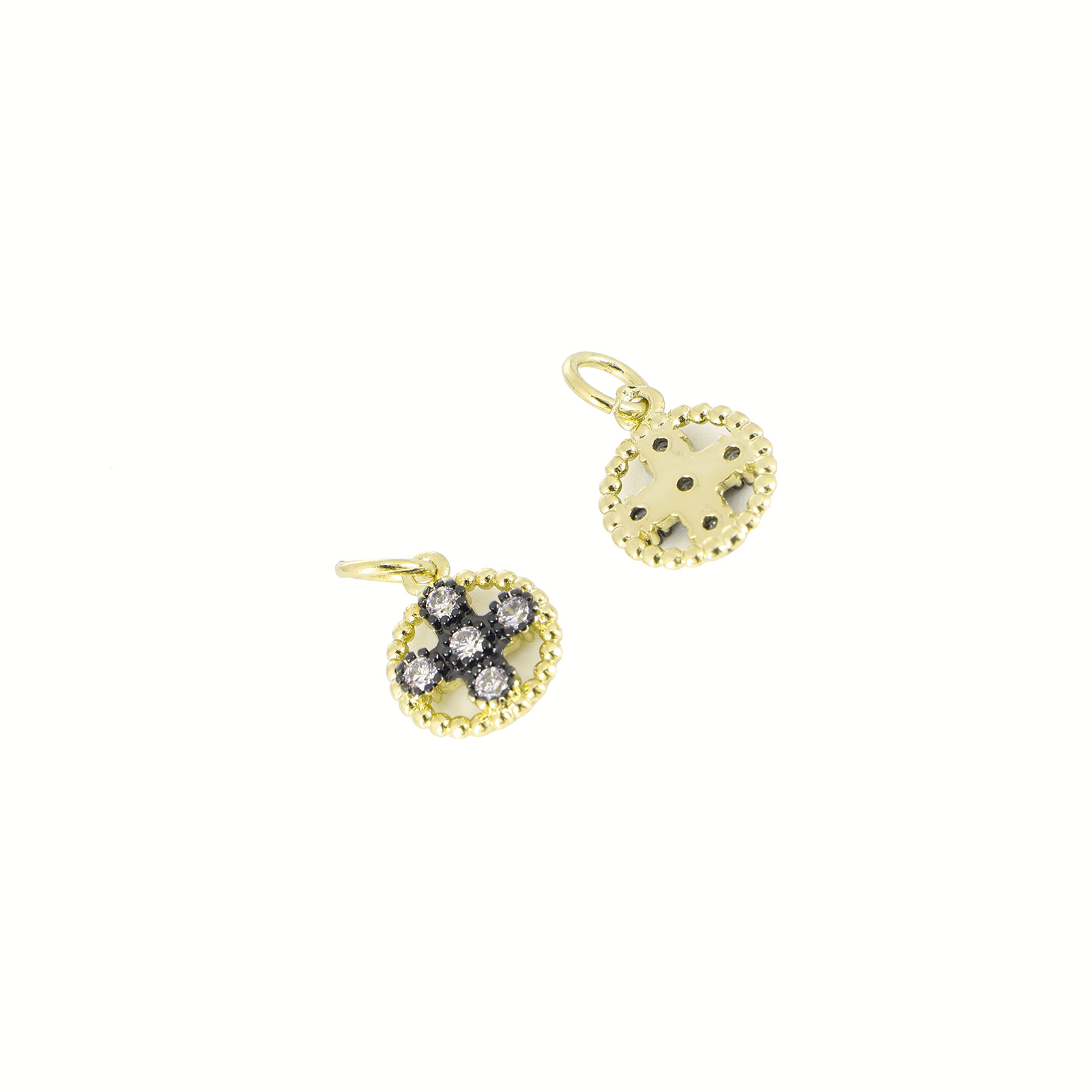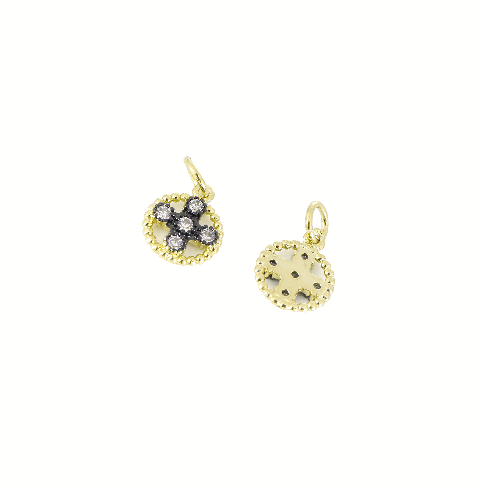 Cubic Zirconia Micro Pave Brass Pendant, Flat Round, gold color plated