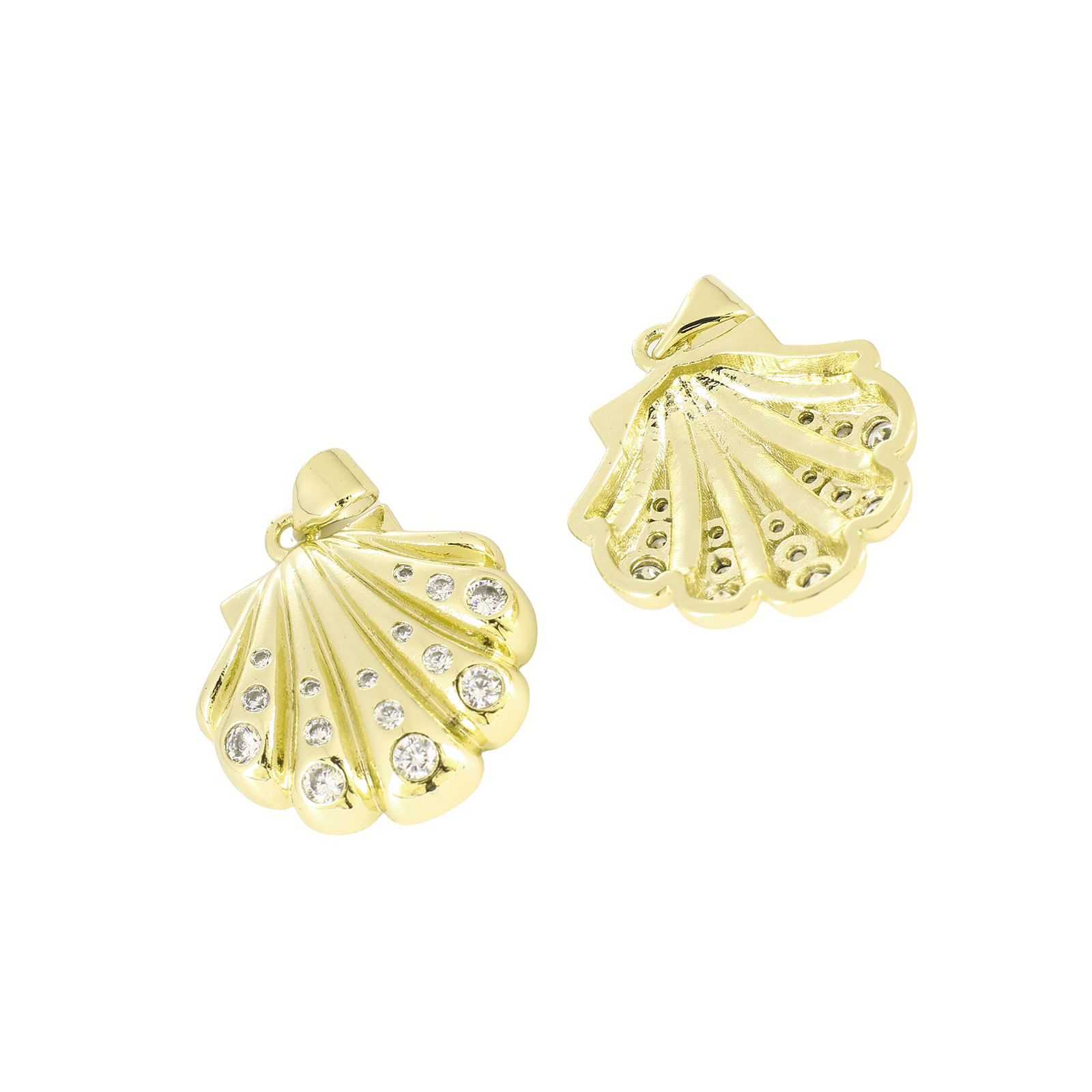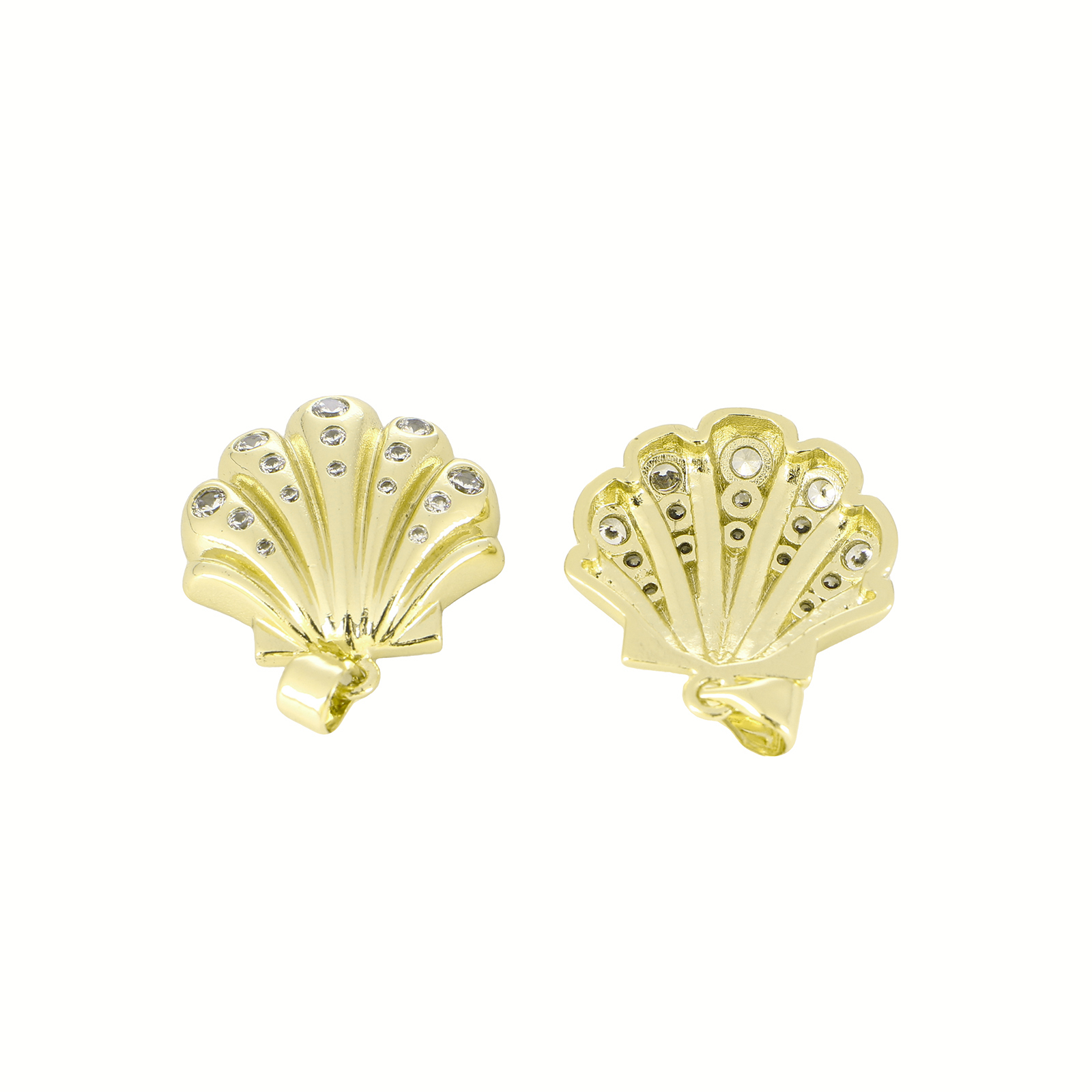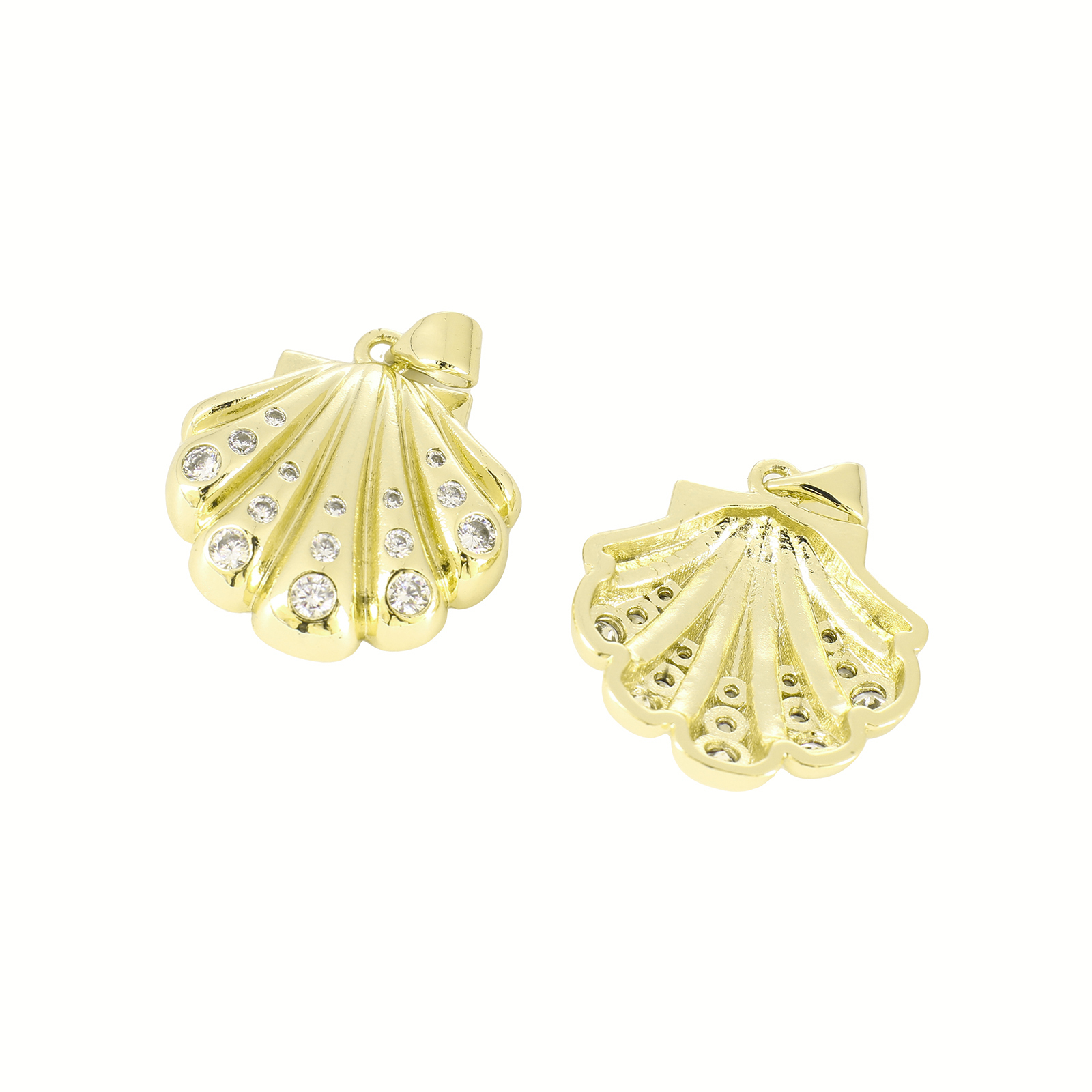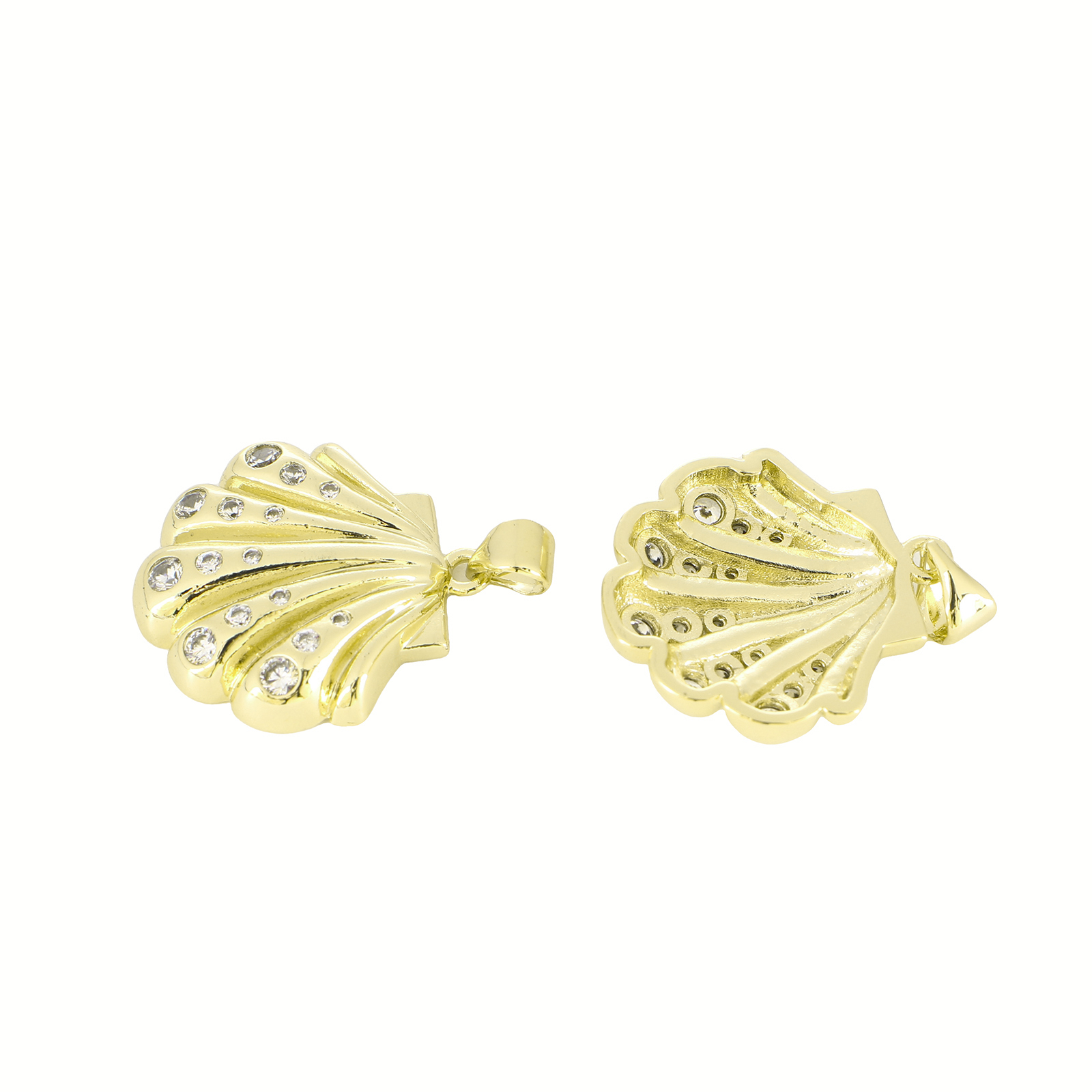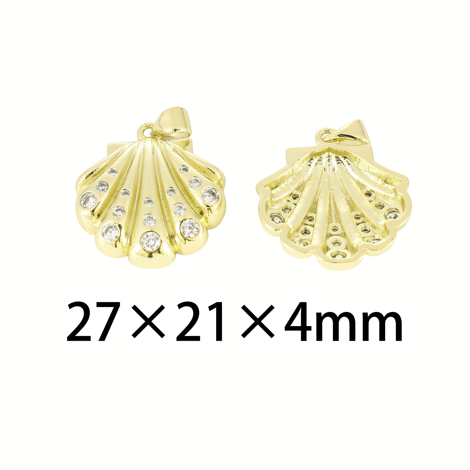 Cubic Zirconia Micro Pave Brass Pendant, Shell, gold color plated, DIY & micro pave cubic zirconia, 27x21x4mm, Sold By PC
