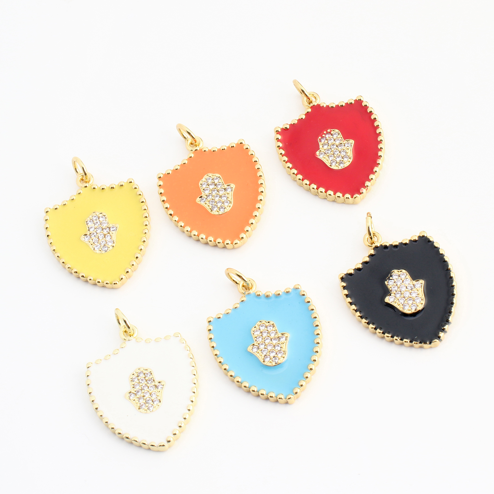 Cubic Zirconia Micro Pave Brass Pendant, gold color plated, DIY & micro pave cubic zirconia & enamel, more colors for choice, 23x18x2mm, Sold By PC