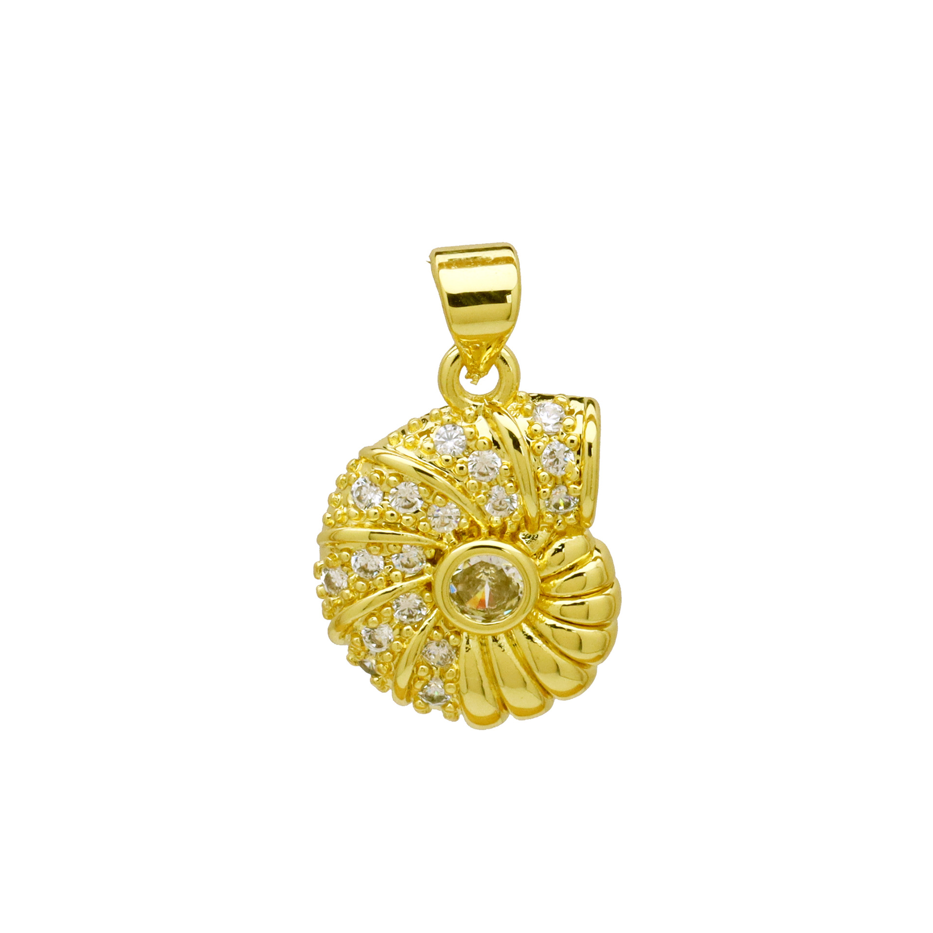 Cubic Zirconia Micro Pave Brass Pendant, Round, gold color plated