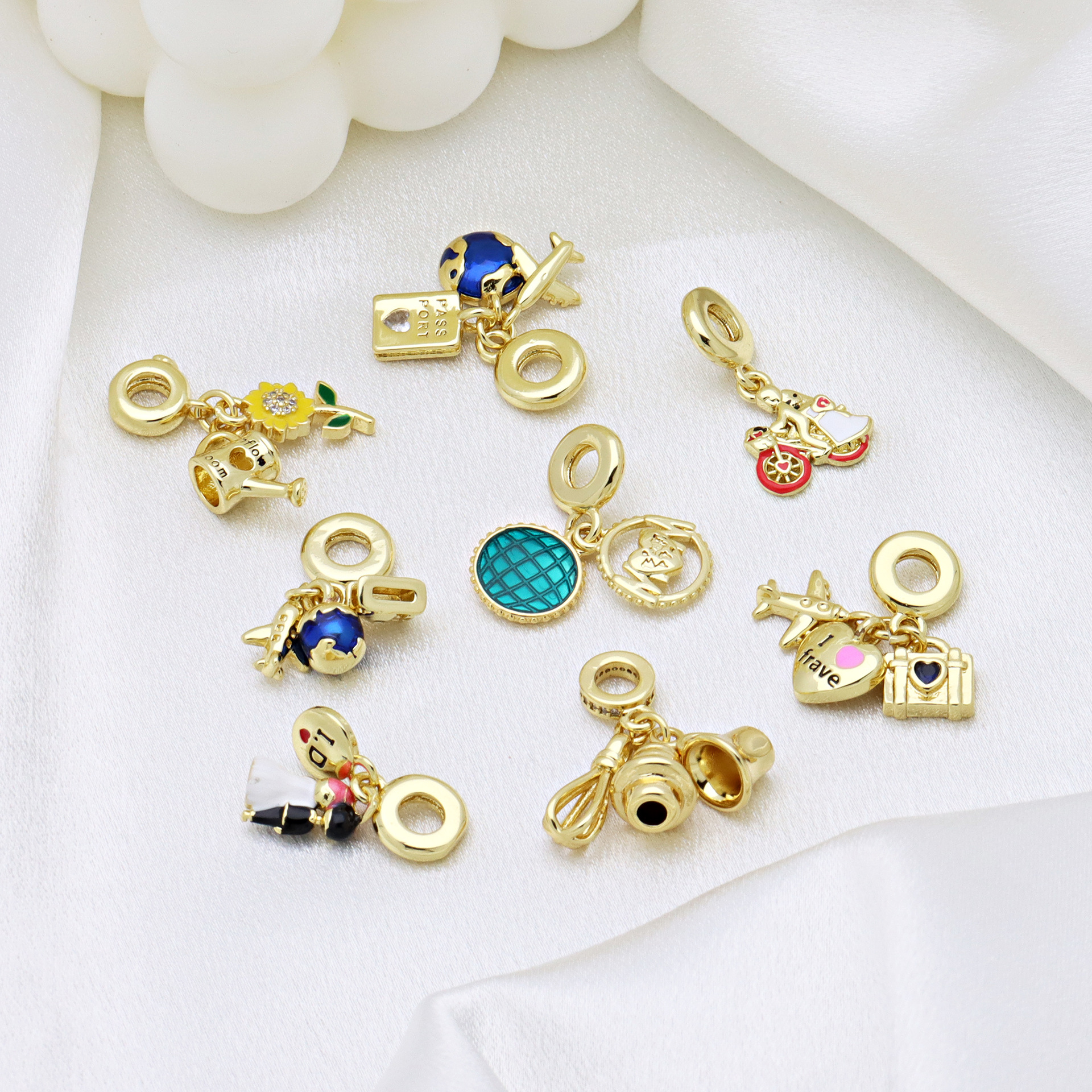 Cubic Zirconia Micro Pave Brass Pendant, gold color plated, DIY & different styles for choice & micro pave cubic zirconia & enamel, more colors for choice, Sold By PC