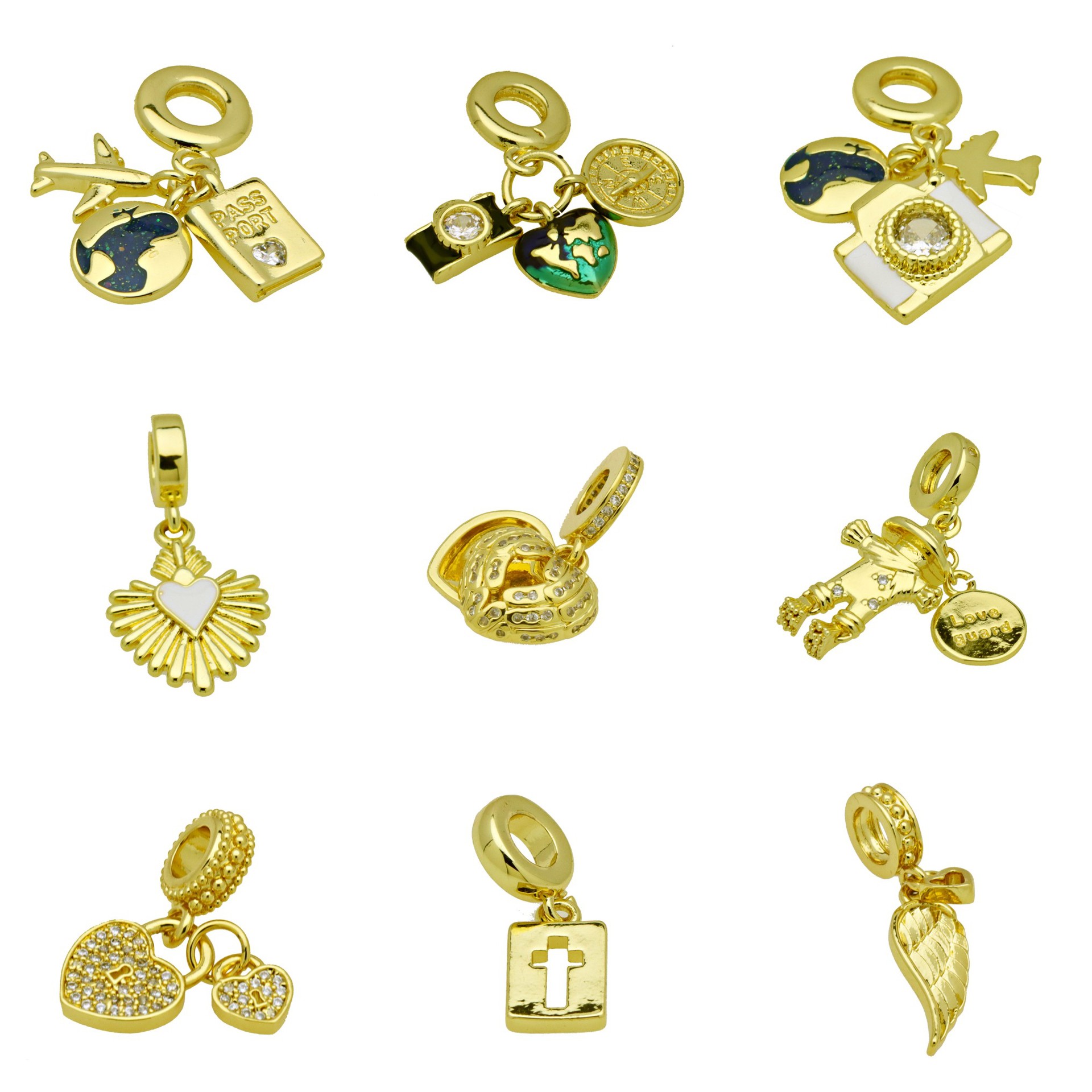 Cubic Zirconia Micro Pave Brass Pendant, gold color plated, DIY & different styles for choice & micro pave cubic zirconia & enamel, more colors for choice, Sold By PC