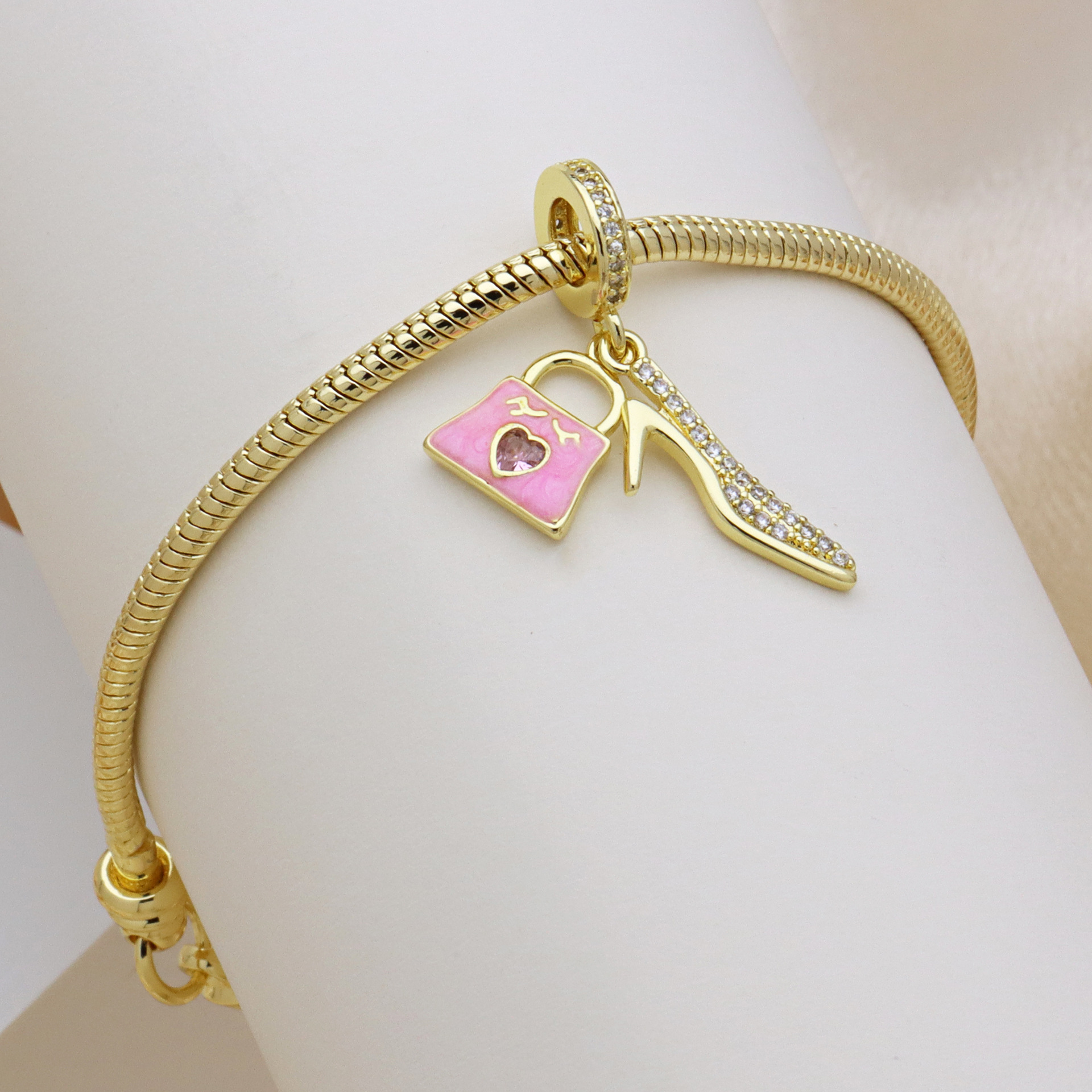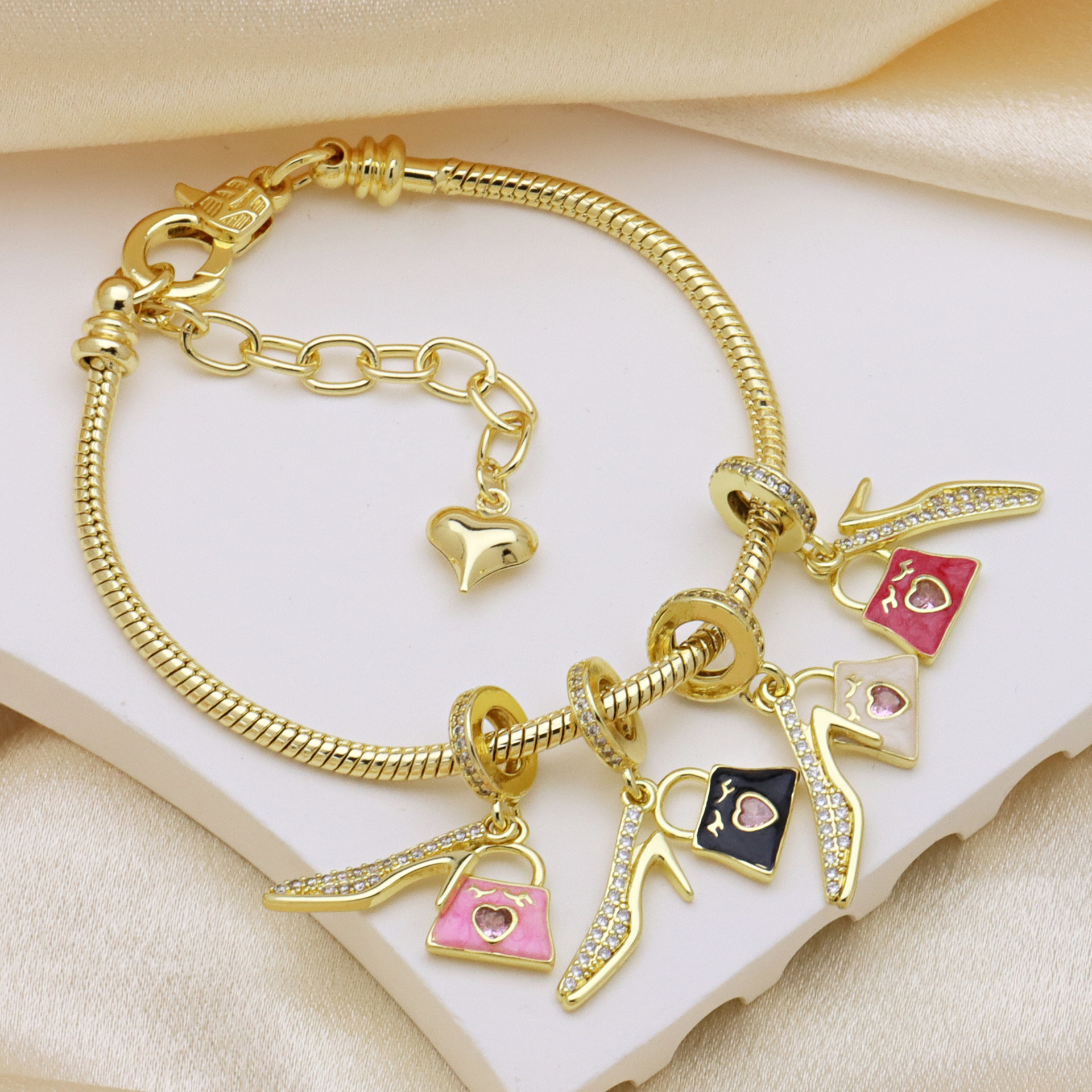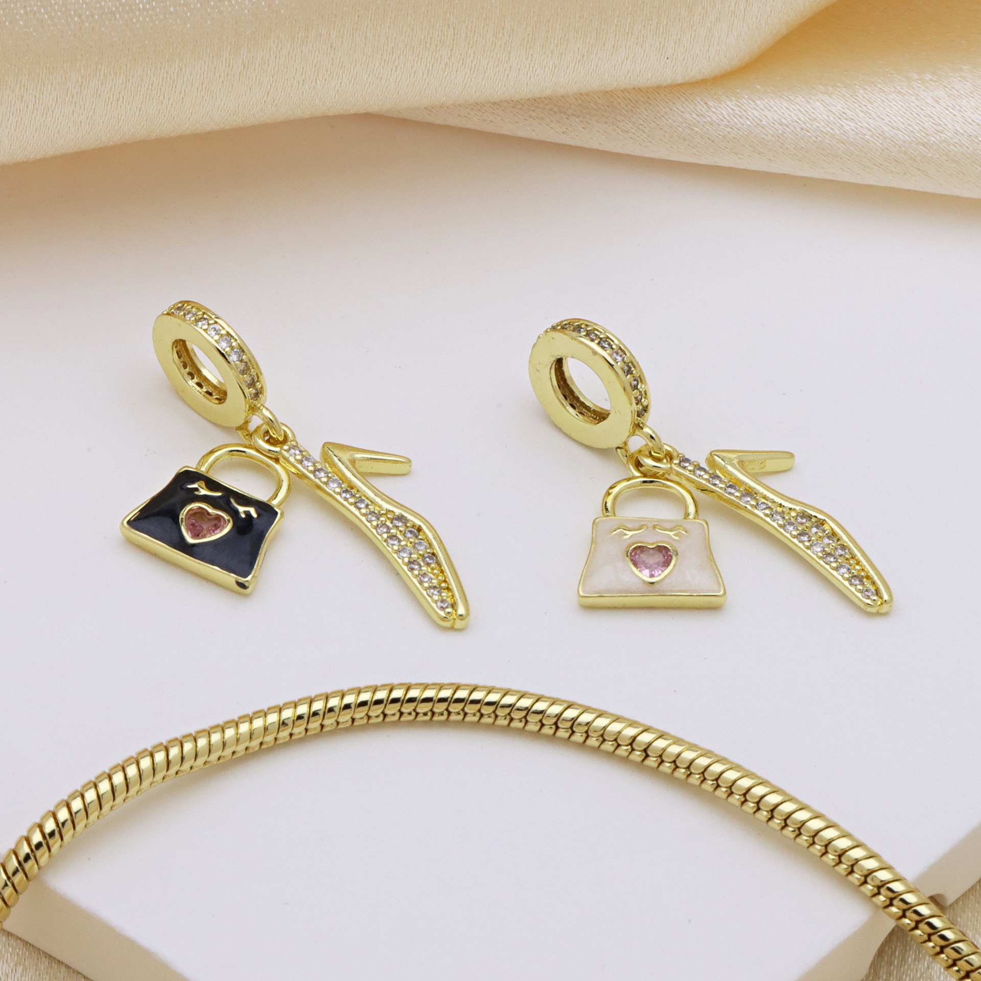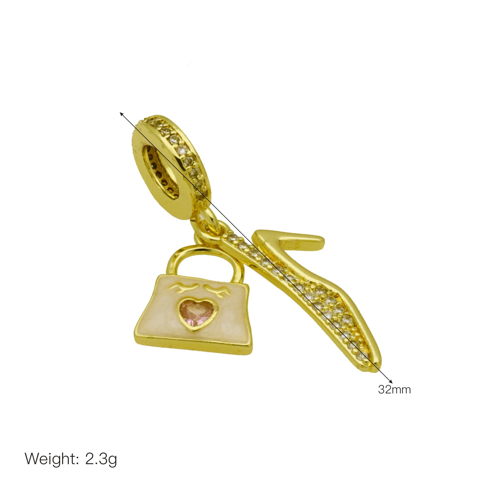Cubic Zirconia Micro Pave Brass Pendant, Handbag, gold color plated, DIY & micro pave cubic zirconia & enamel, more colors for choice, 32mm, Sold By PC