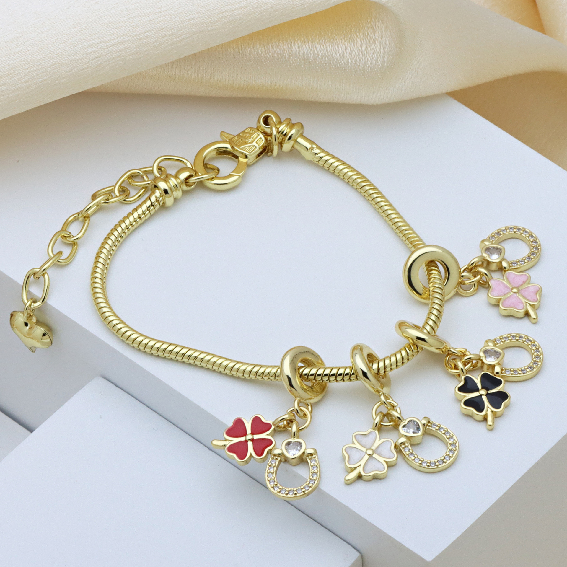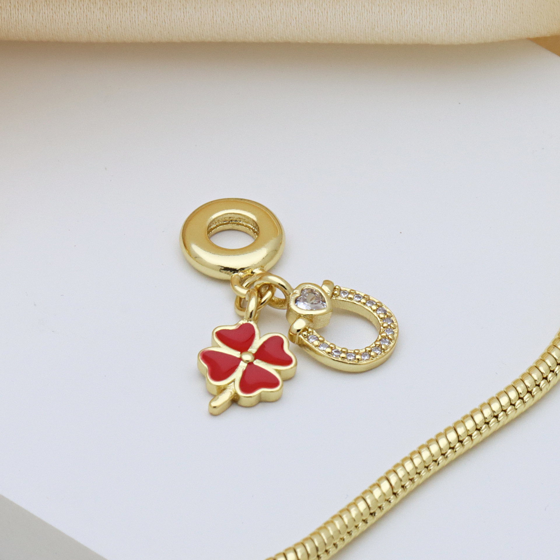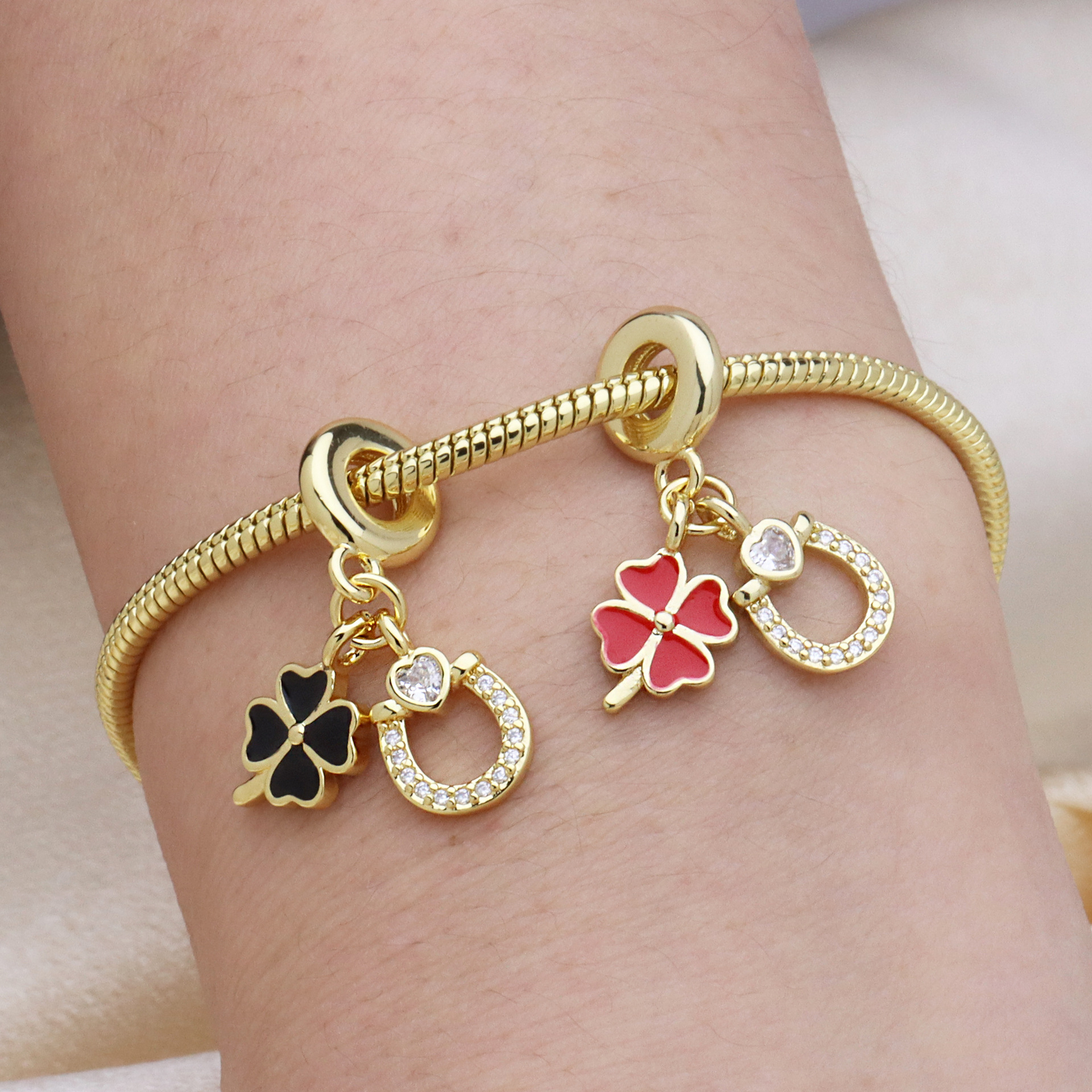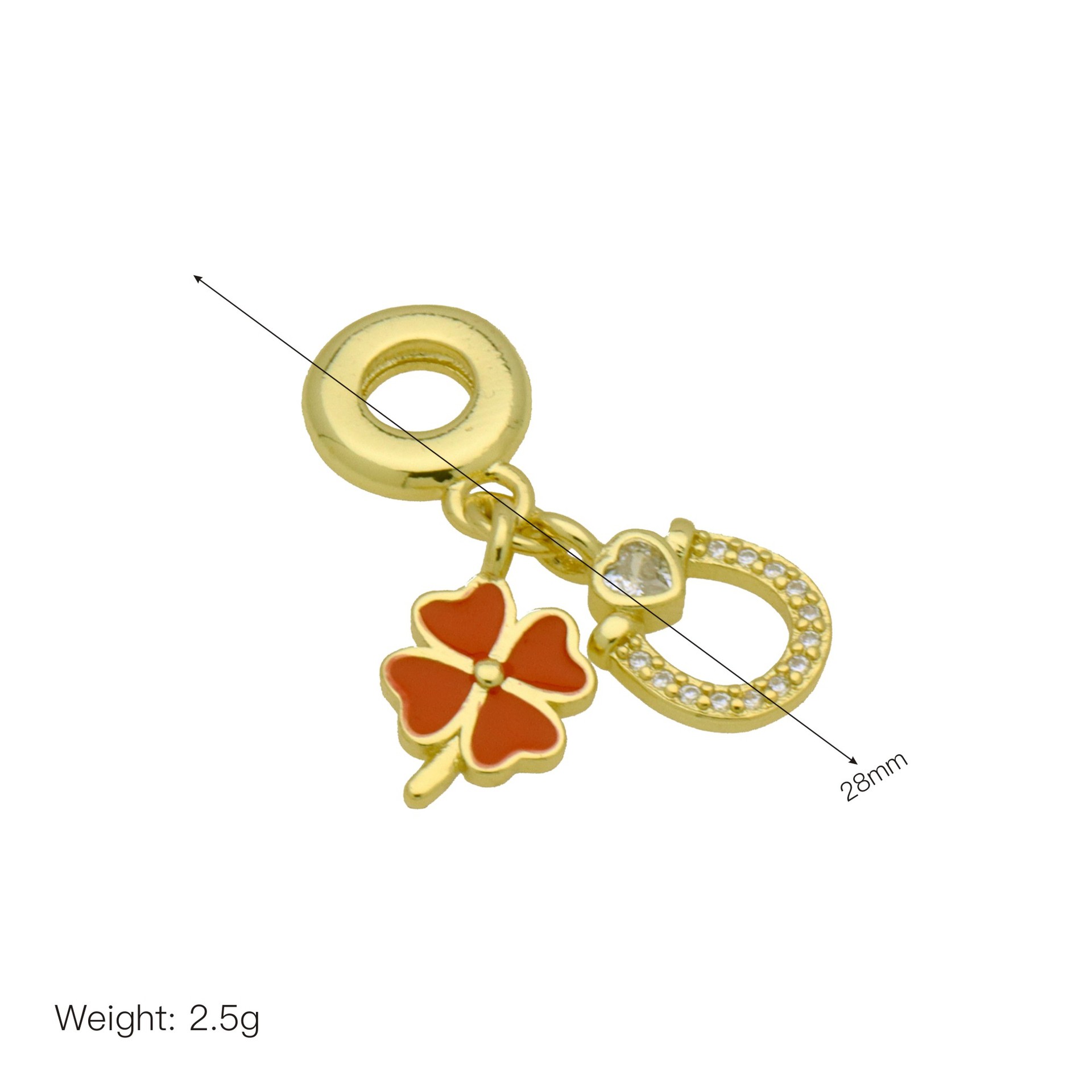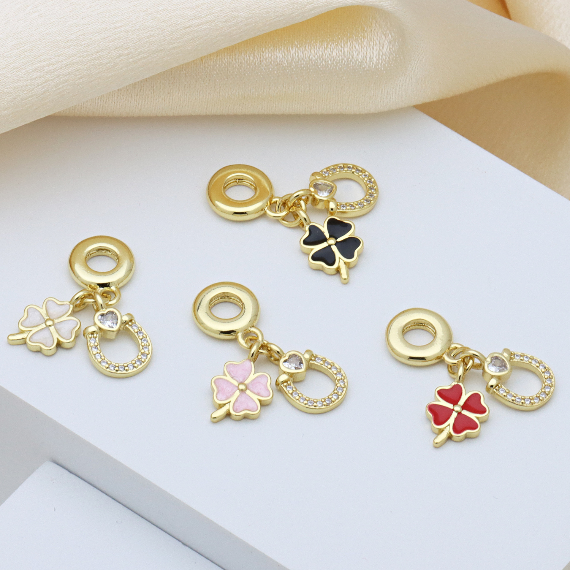 Cubic Zirconia Micro Pave Brass Pendant, Four Leaf Clover, gold color plated, DIY & micro pave cubic zirconia & enamel, more colors for choice, 28mm, Sold By PC