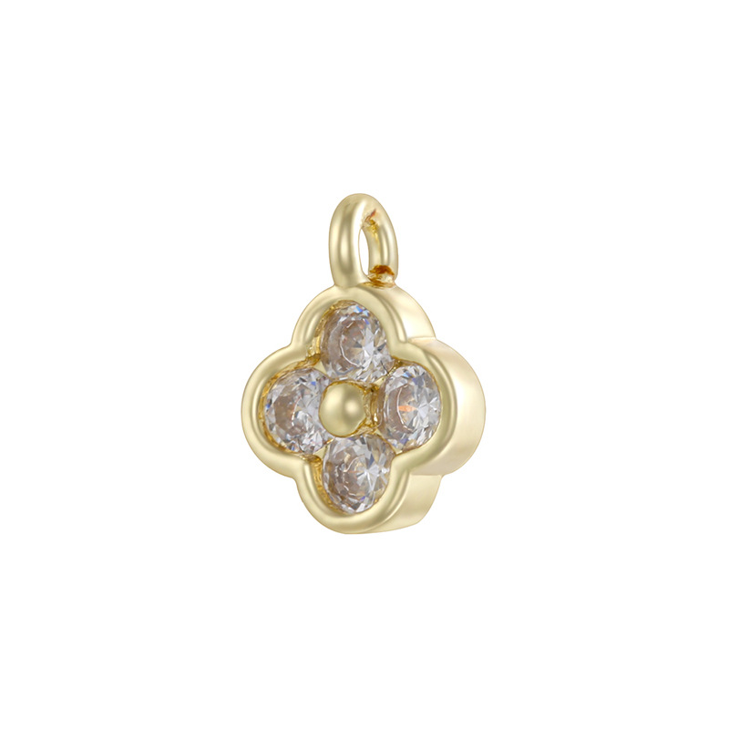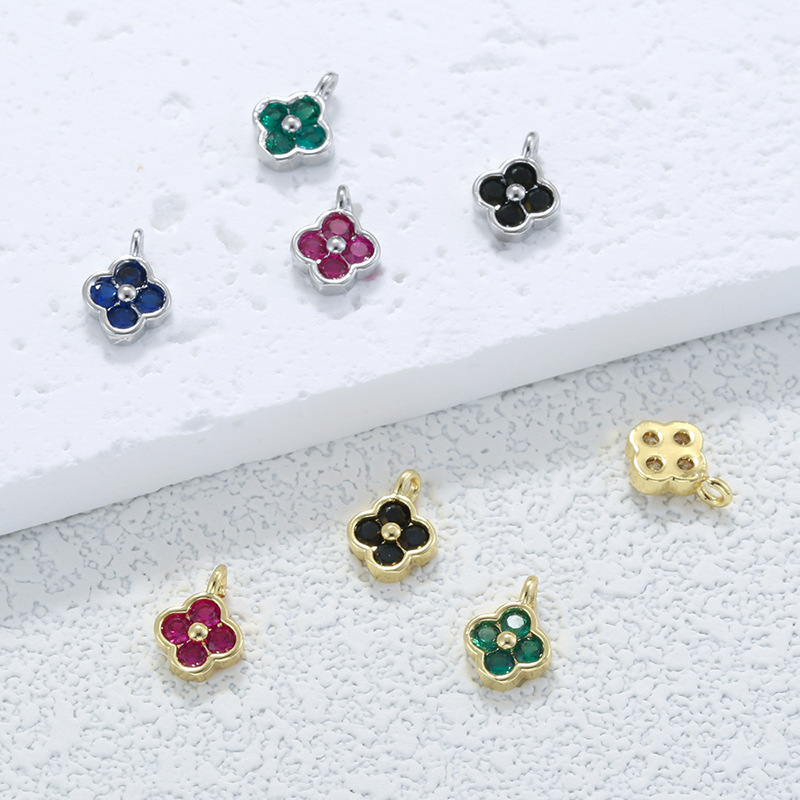 Cubic Zirconia Micro Pave Brass Pendant, Four Leaf Clover, plated, DIY & micro pave cubic zirconia, more colors for choice, 6x8mm, Sold By PC