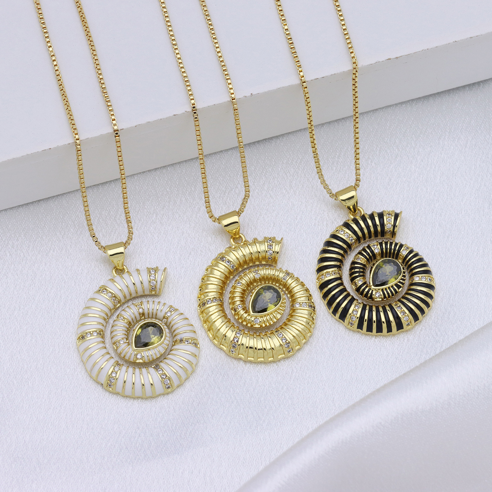 Cubic Zirconia Micro Pave Brass Pendant, Conch, gold color plated, DIY & different styles for choice & micro pave cubic zirconia & enamel, more colors for choice, 35x25mm, Sold By PC