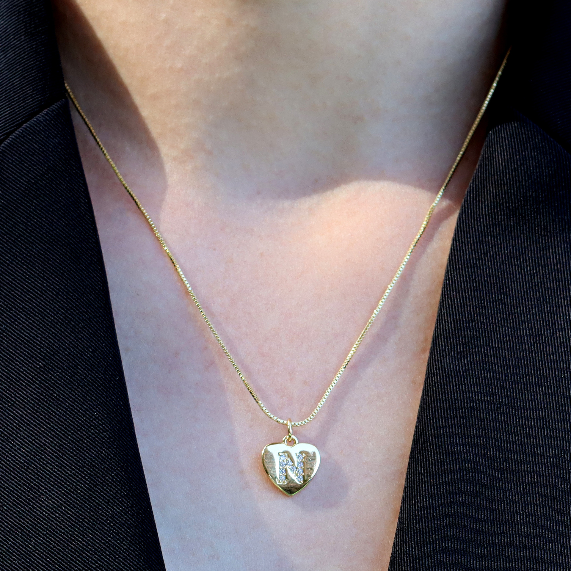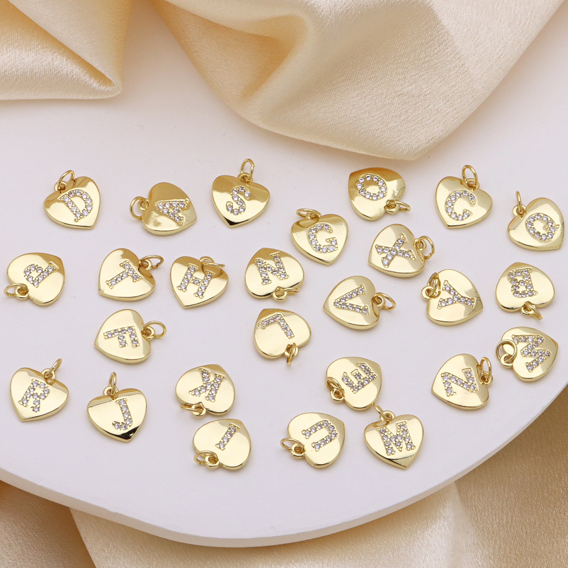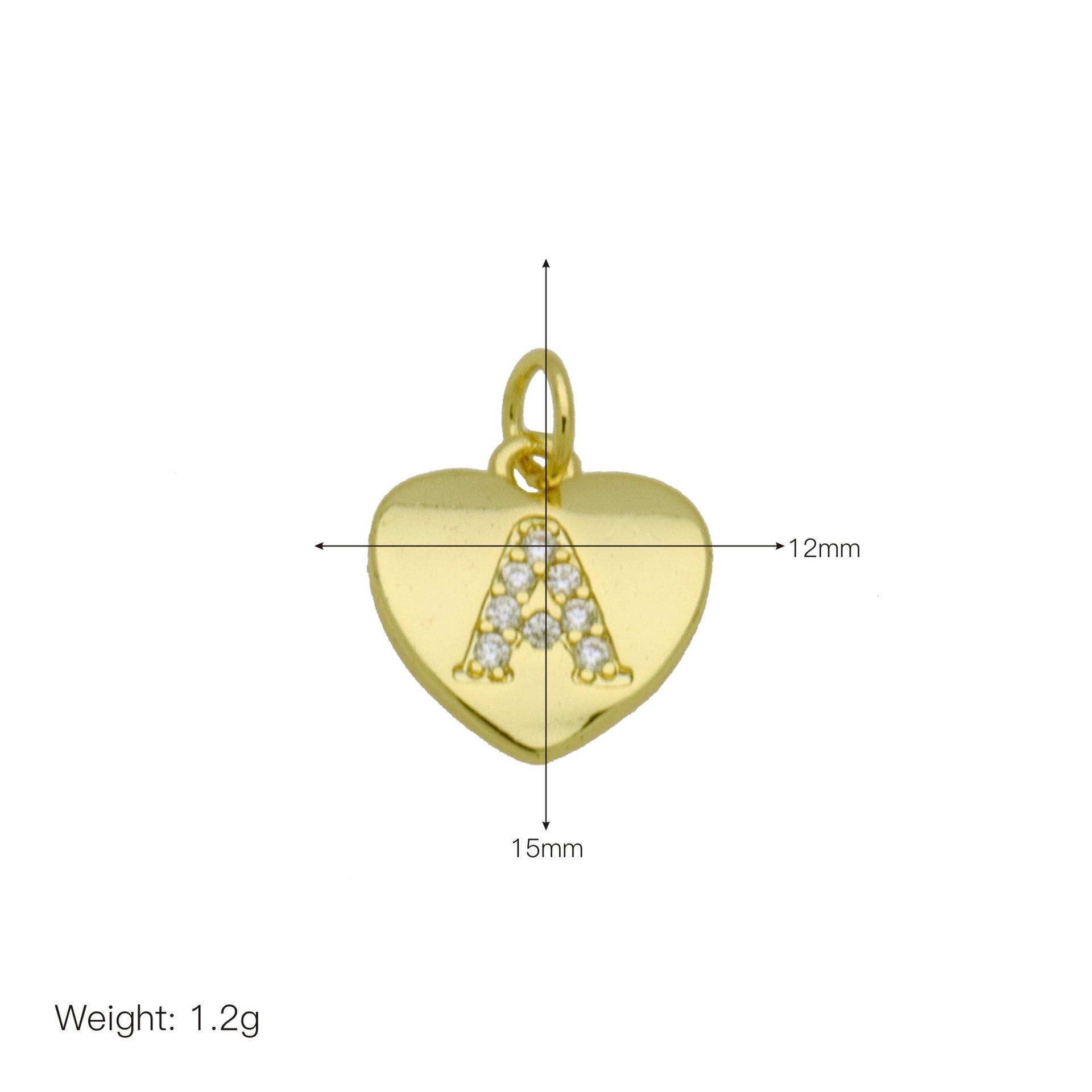 Cubic Zirconia Micro Pave Brass Pendant, Heart, gold color plated, letters are from A to Z & DIY & different styles for choice & micro pave cubic zirconia, more colors for choice, 12x15mm, Sold By PC